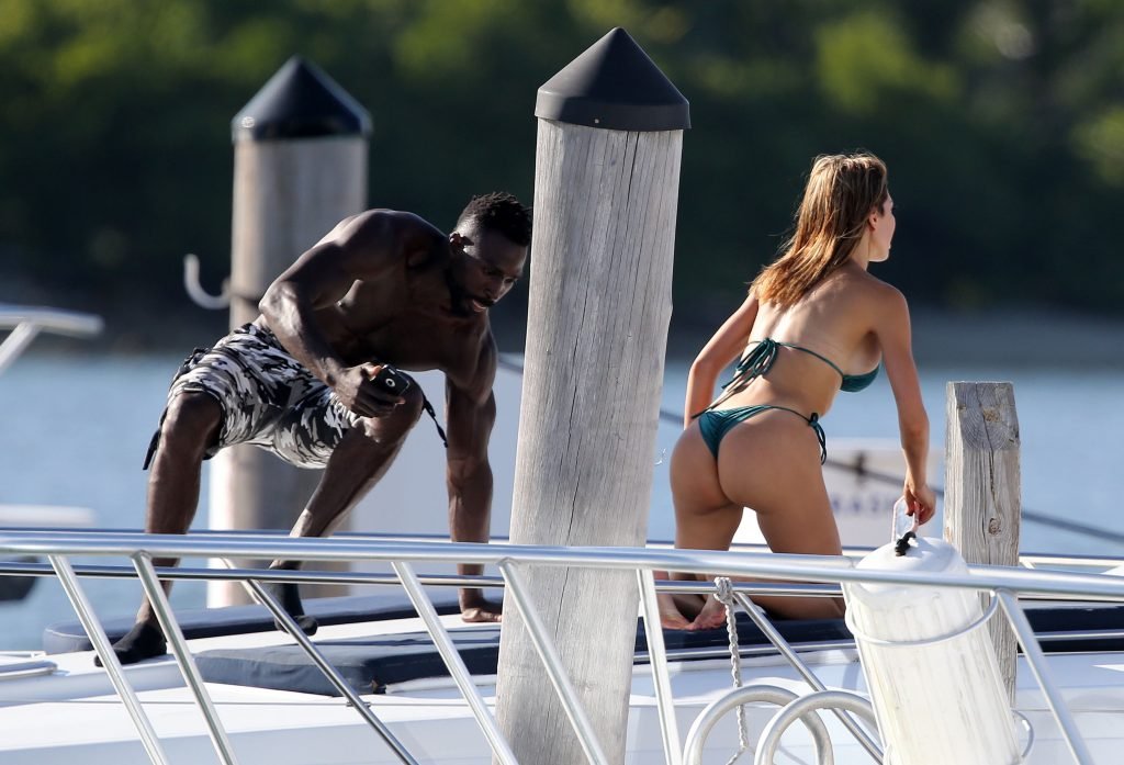 “Estrella de “Teen Mom” Farrah Abraham (27) muestra sus curvas con un bikini de terciopelo verde mientras coquetea con un entrenador personal en un yate en Miami, 24/10/2018.