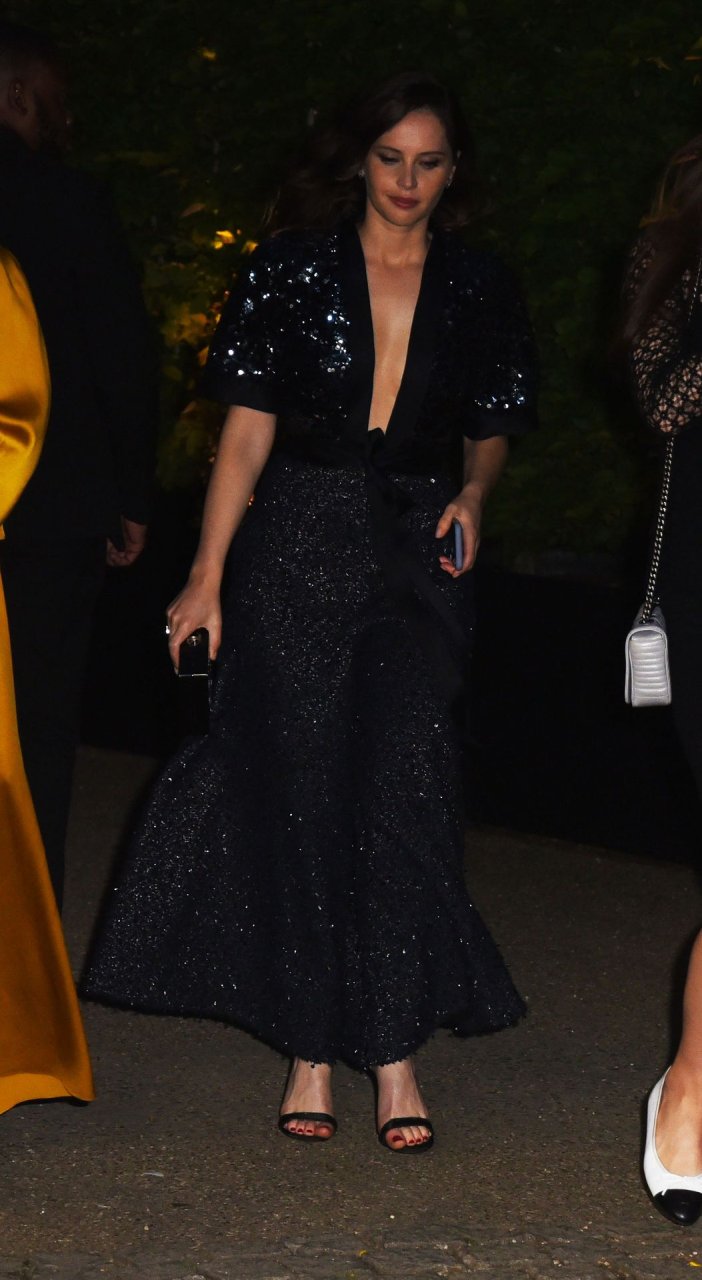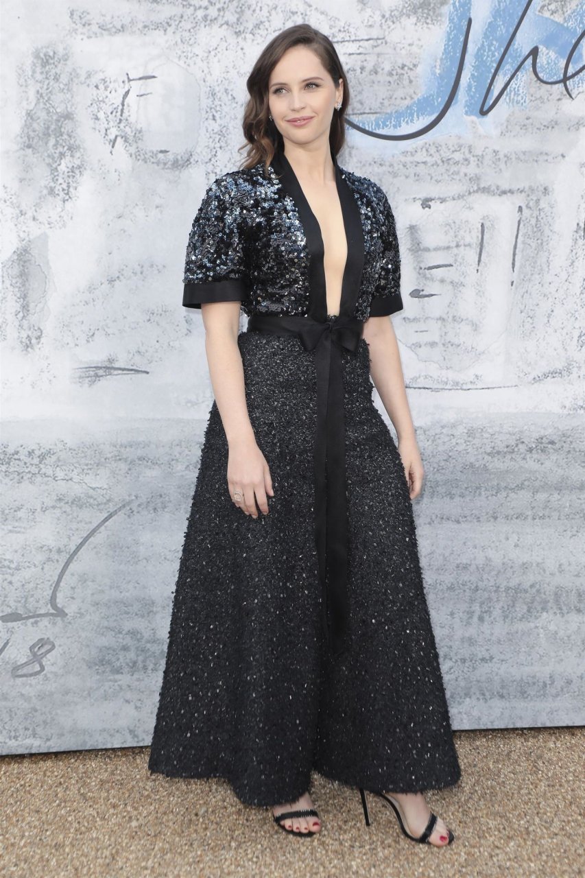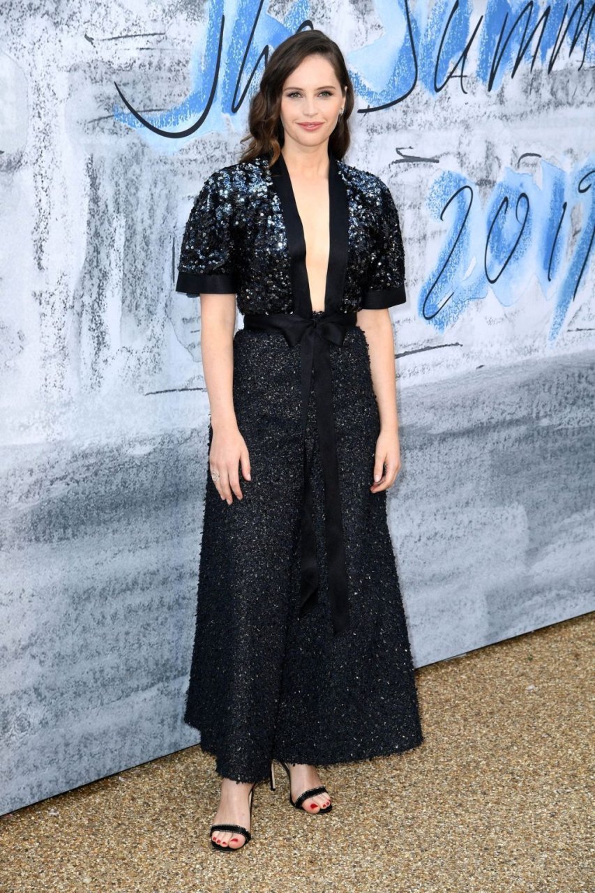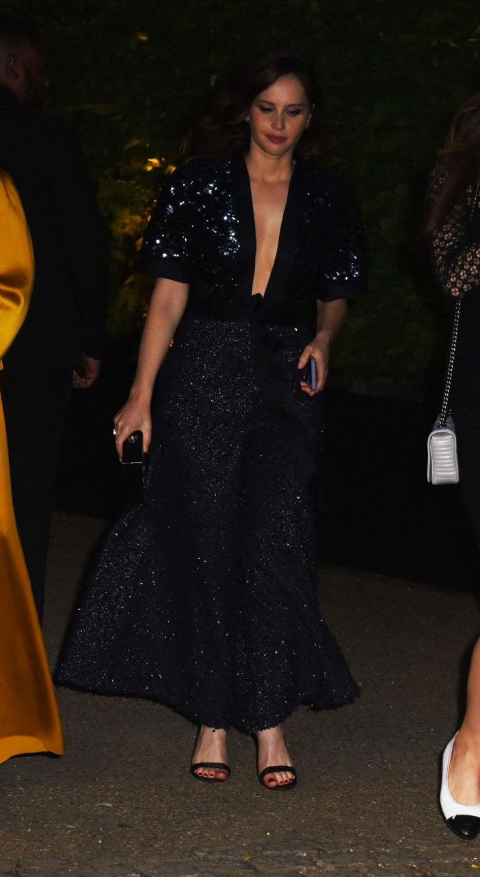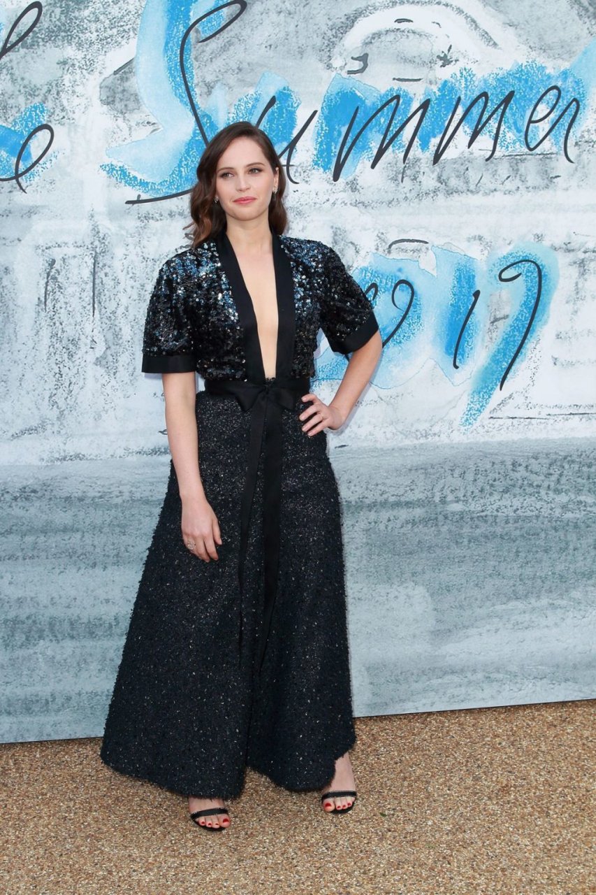 Felicity Jones fue vista en la Fiesta de Verano 2019 presentada por Serpentine Galleries & Chanel en las Serpentine Galleries en Londres, luciendo un hermoso vestido con un escote profundo que mostraba sus pequeños pechos, 25/06/2019. ¡Los fotógrafos hicieron muchas buenas fotos de su sideboob!