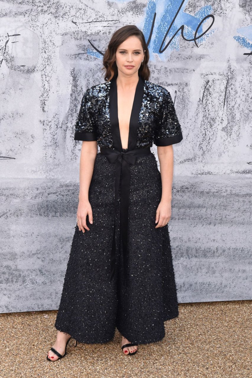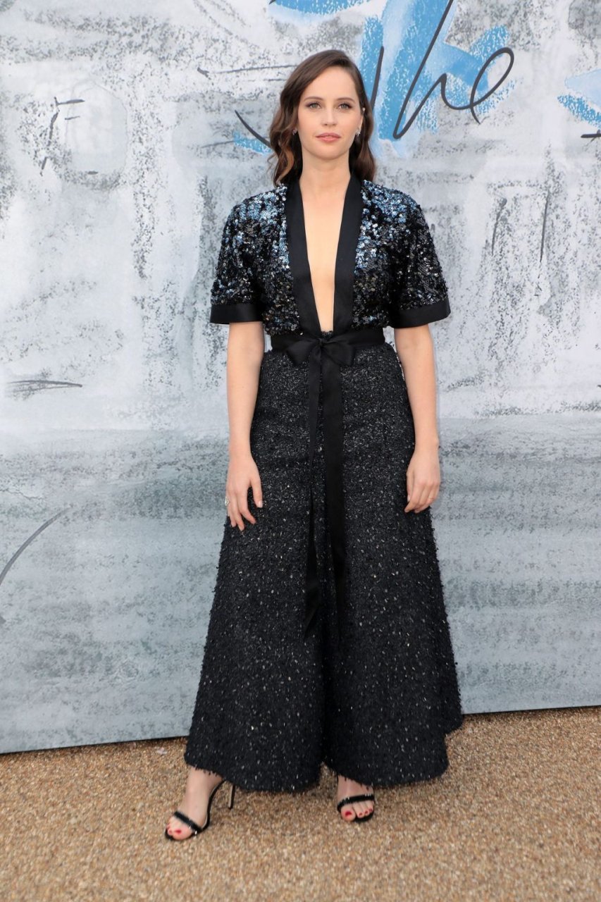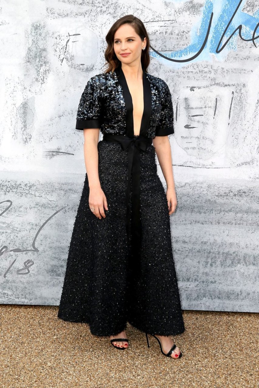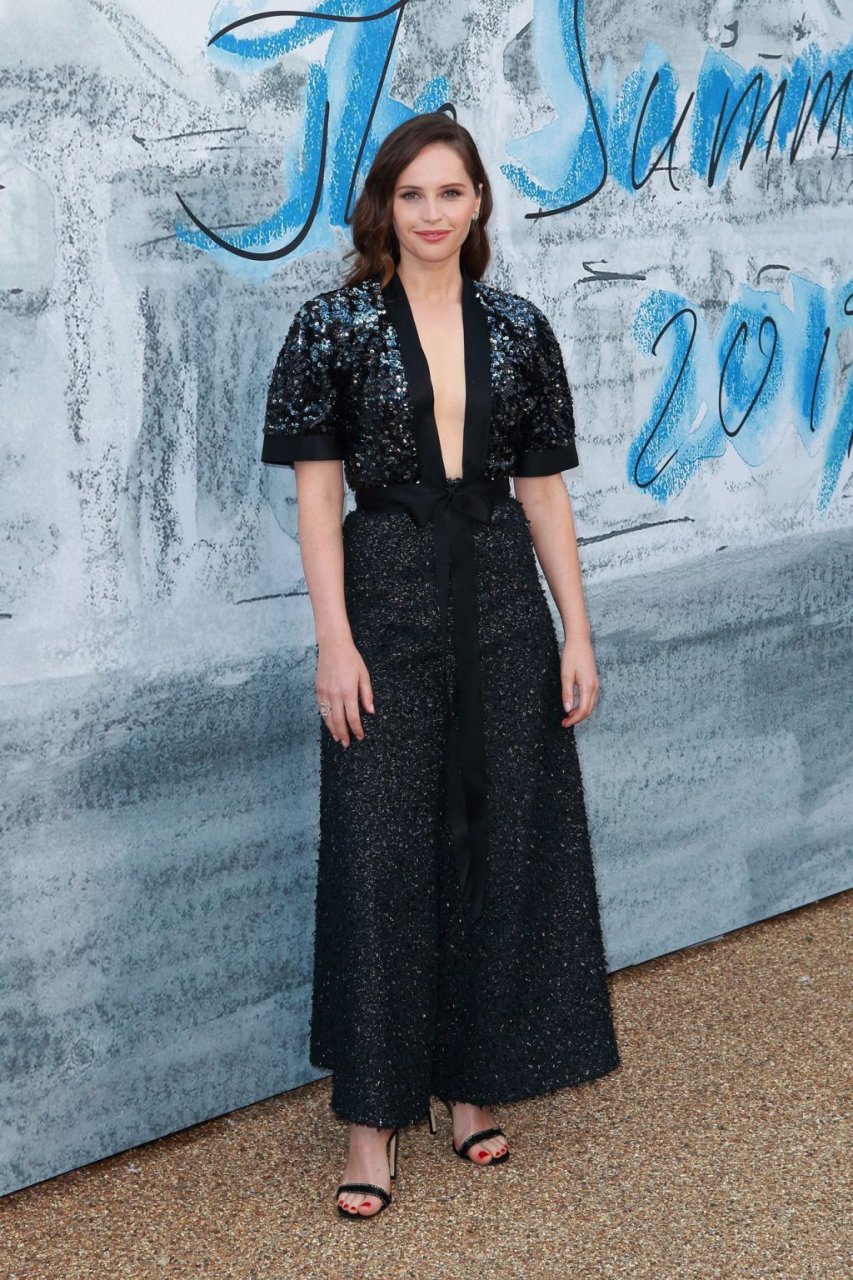 Felicity Jones fue vista en la Fiesta de Verano 2019 presentada por Serpentine Galleries & Chanel en las Serpentine Galleries en Londres, luciendo un hermoso vestido con un escote profundo que mostraba sus pequeños pechos, 25/06/2019. ¡Los fotógrafos hicieron muchas buenas fotos de su sideboob!