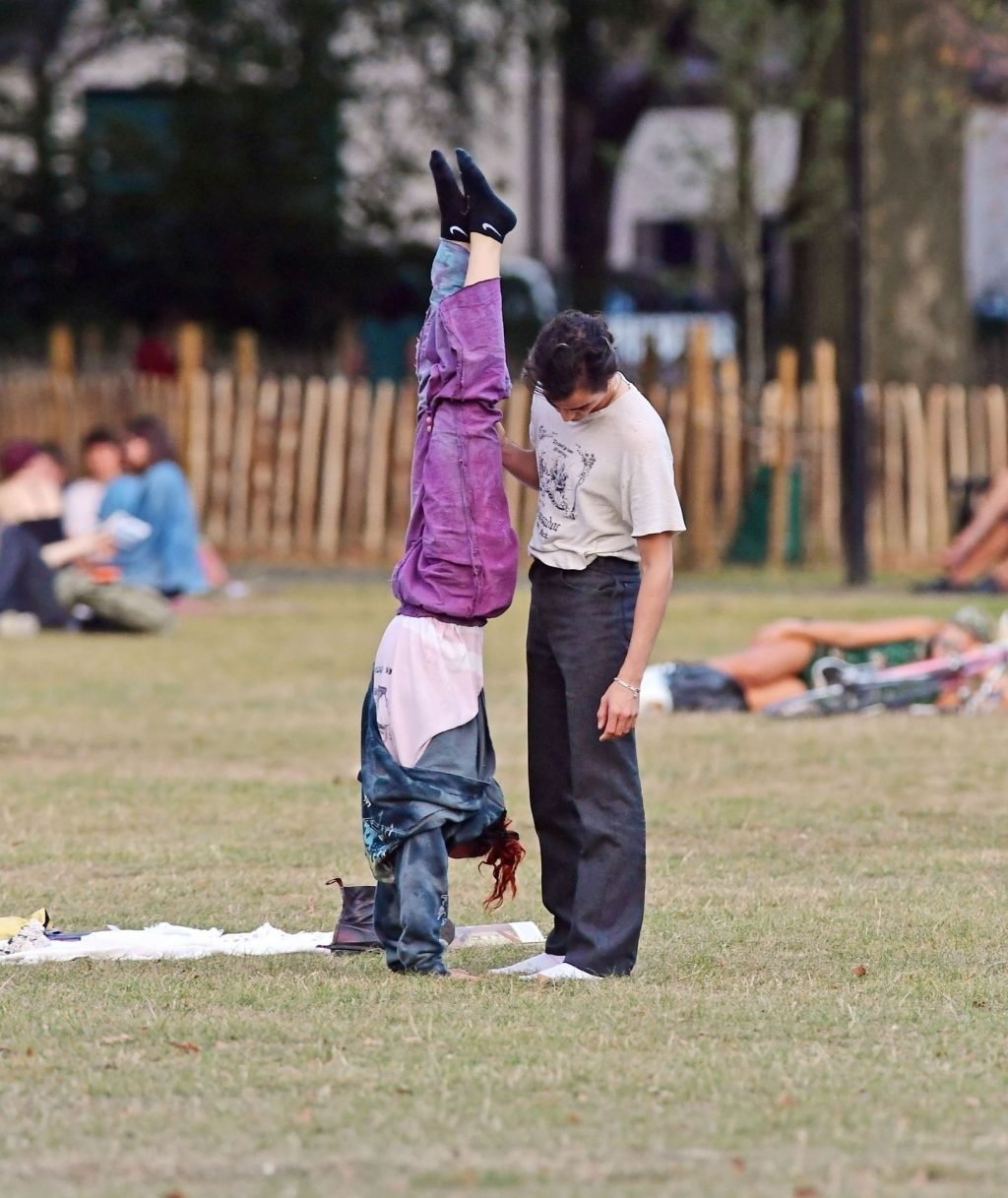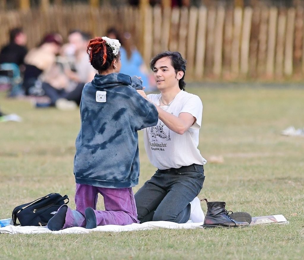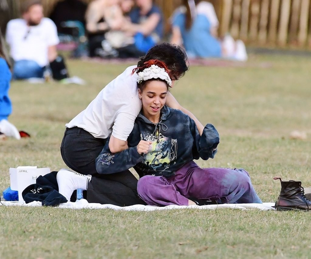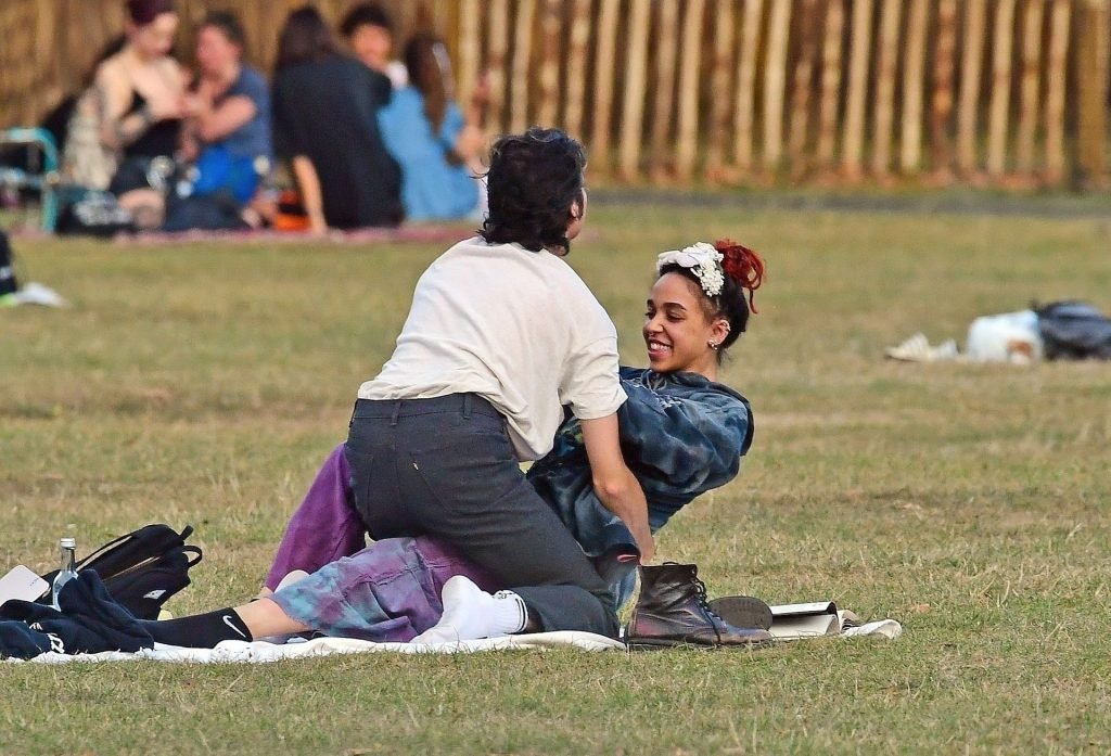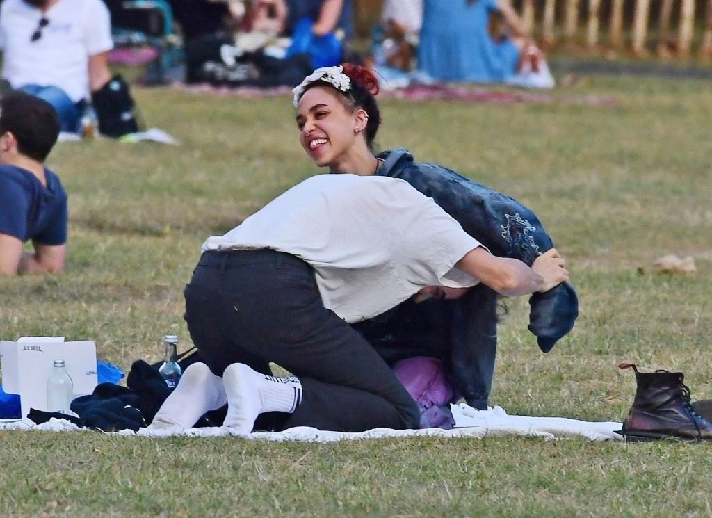 FKA Twigs en el parque completamente enamorada con su nuevo novio Reuben Esser, el editor junior de moda en la revista “Another Man”, 15/09/2019. FKA, cuyas relaciones pasadas incluyeron a los actores Robert Pattinson y Shia Labeouf, parecía muy enamorada y no tuvo miedo de mostrar muchas muestras públicas de afecto mientras pasaba la mayor parte del día en un soleado parque de Londres con su nuevo amor, su química era increíble y disfrutaban mucho de la compañía mutua, con FKA literalmente cayendo rendida por Reuben al hacer unas cuantas volteretas.