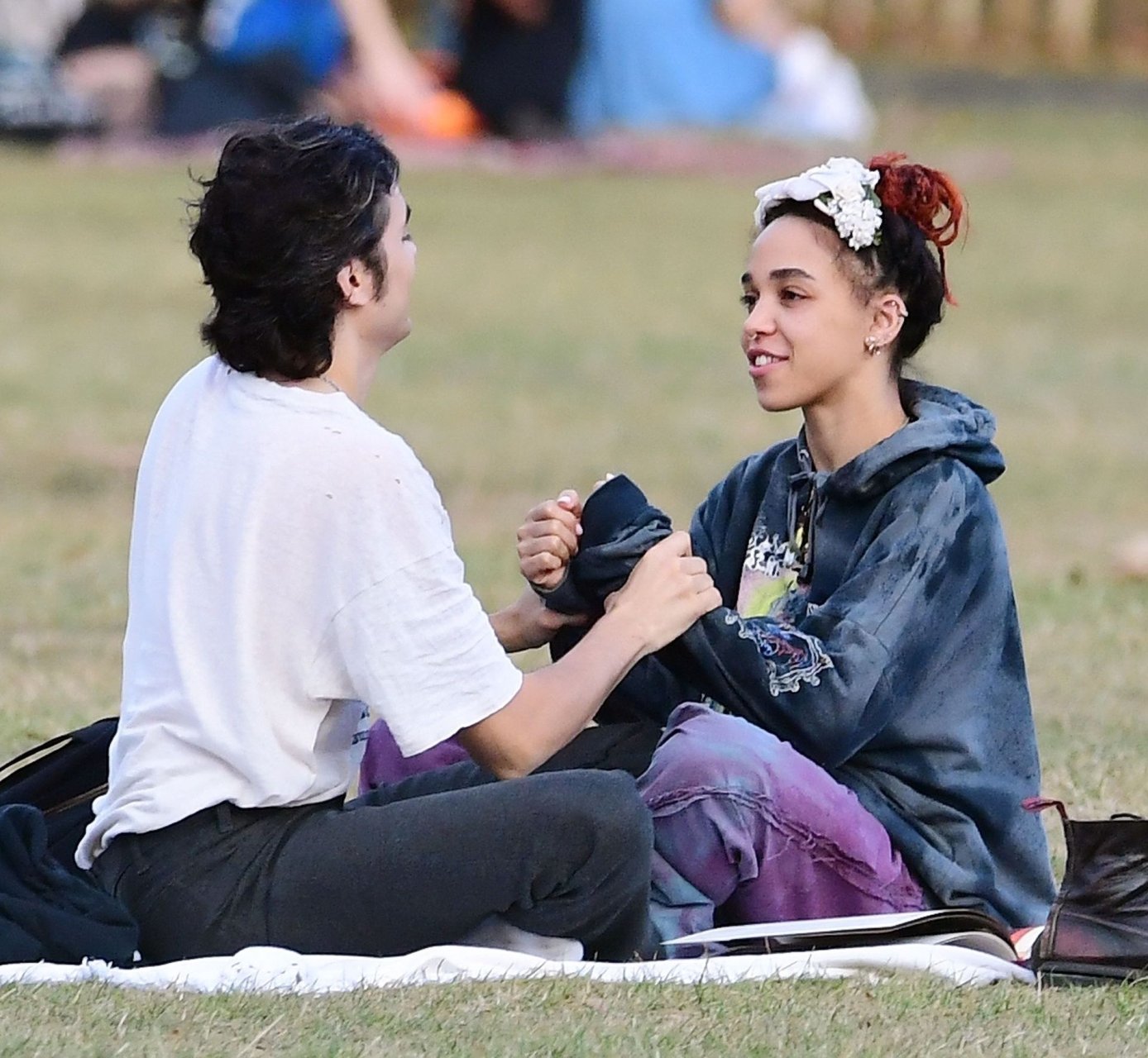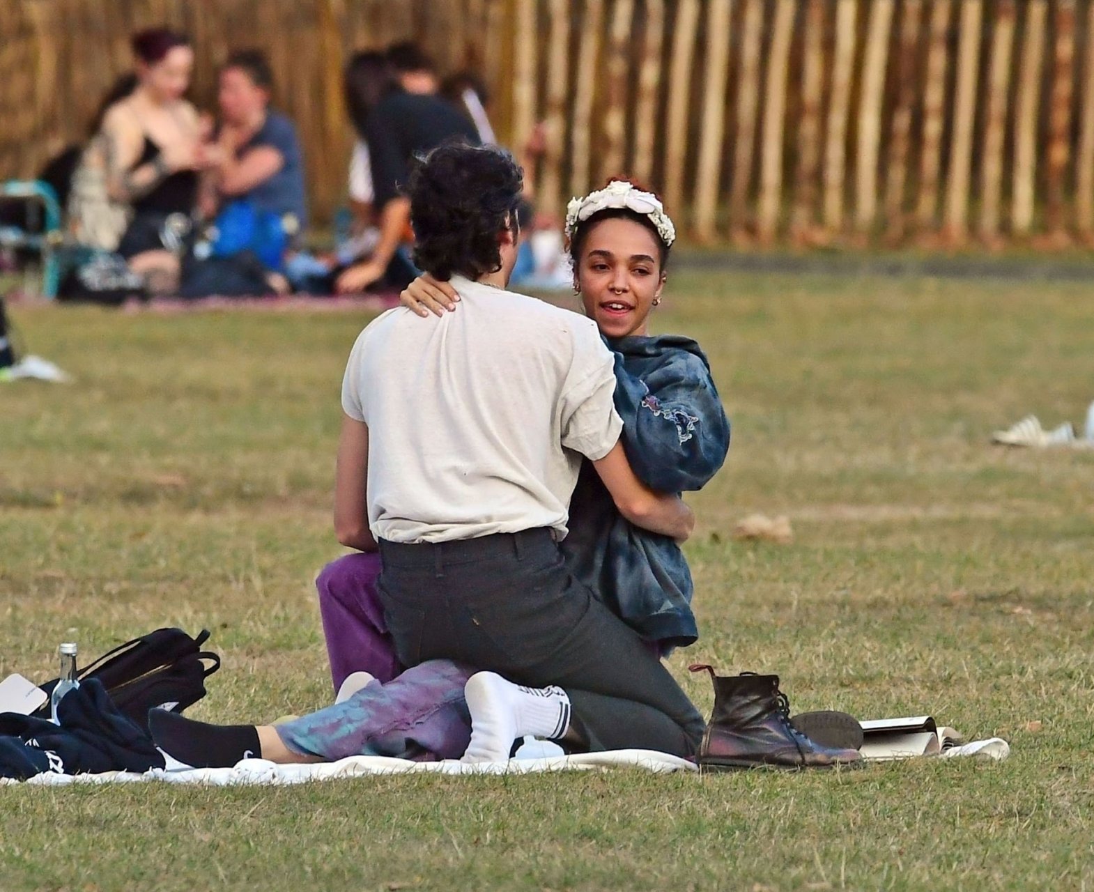 FKA Twigs en el parque completamente enamorada con su nuevo novio Reuben Esser, el editor junior de moda en la revista “Another Man”, 15/09/2019. FKA, cuyas relaciones pasadas incluyeron a los actores Robert Pattinson y Shia Labeouf, parecía muy enamorada y no tuvo miedo de mostrar muchas muestras públicas de afecto mientras pasaba la mayor parte del día en un soleado parque de Londres con su nuevo amor, su química era increíble y disfrutaban mucho de la compañía mutua, con FKA literalmente cayendo rendida por Reuben al hacer unas cuantas volteretas.
