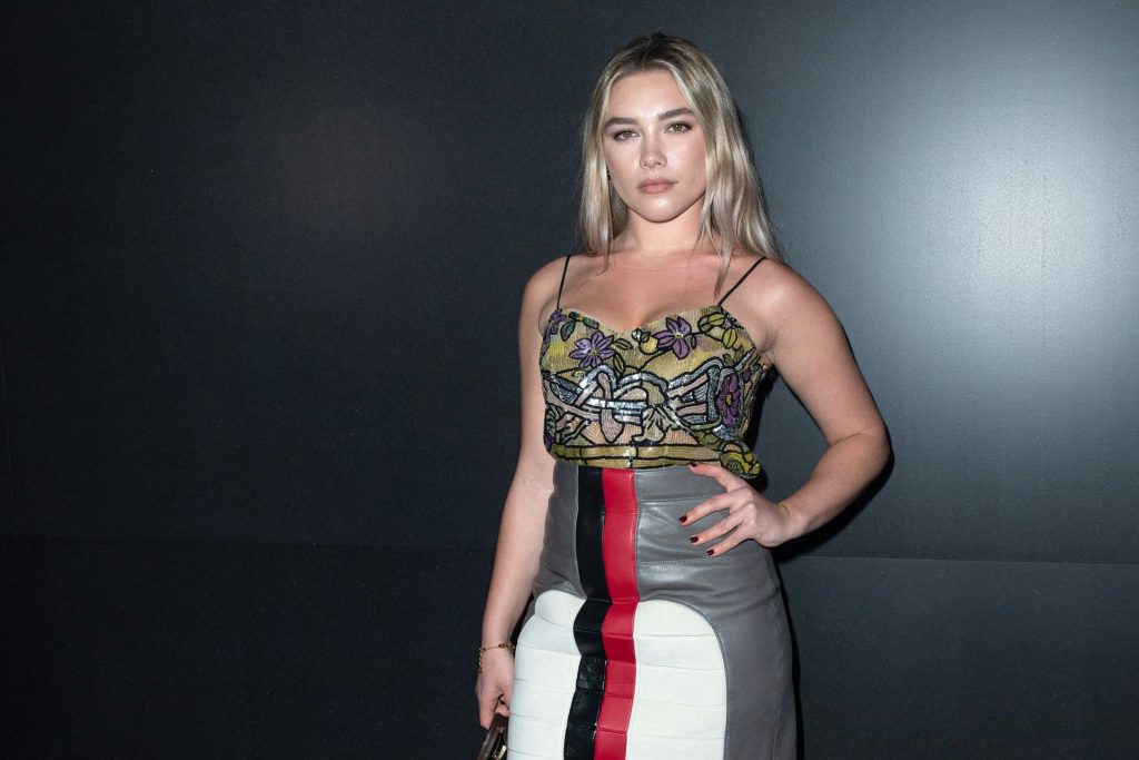 La actriz británica Florence Pugh fue fotografiada en el Louis Vuitton Front Row Womenswear Otoño/Invierno 2020/2021 durante la Semana de la Moda de París, 03/03/2020. Sorprendió con sus piernas sexys, escote y ropa interior.