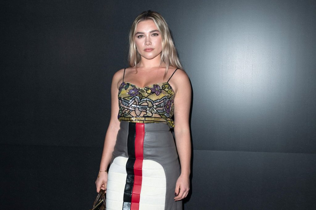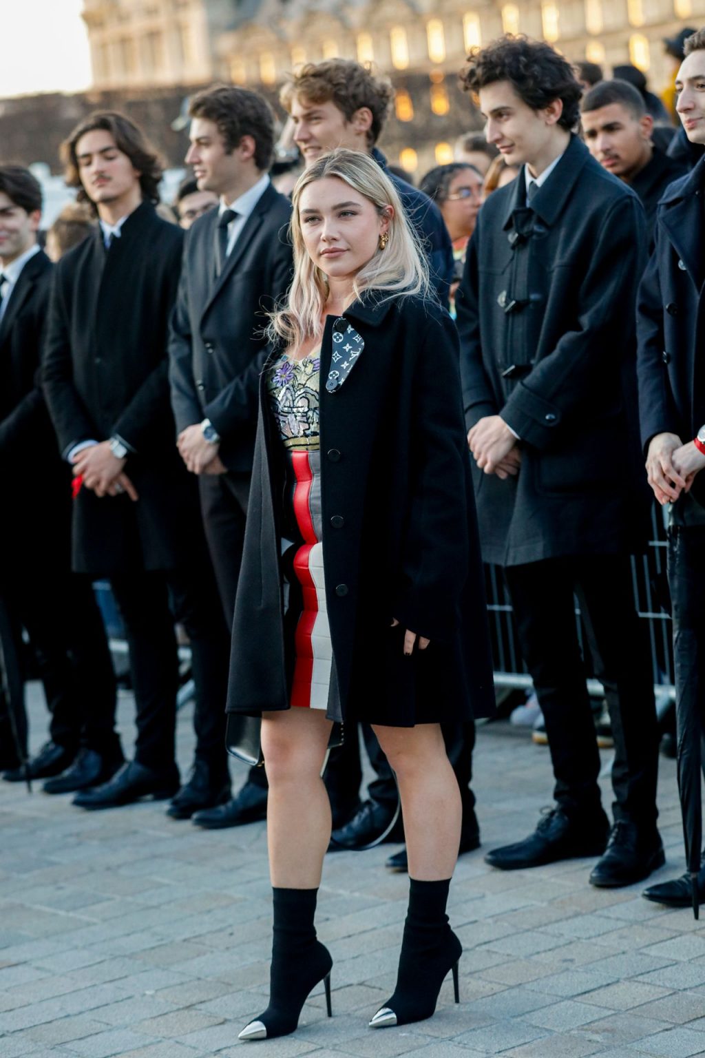 Florence Pugh Muestra Su Escote y Ropa Interior en el Desfile de Moda de Louis Vuitton (56 Fotos)