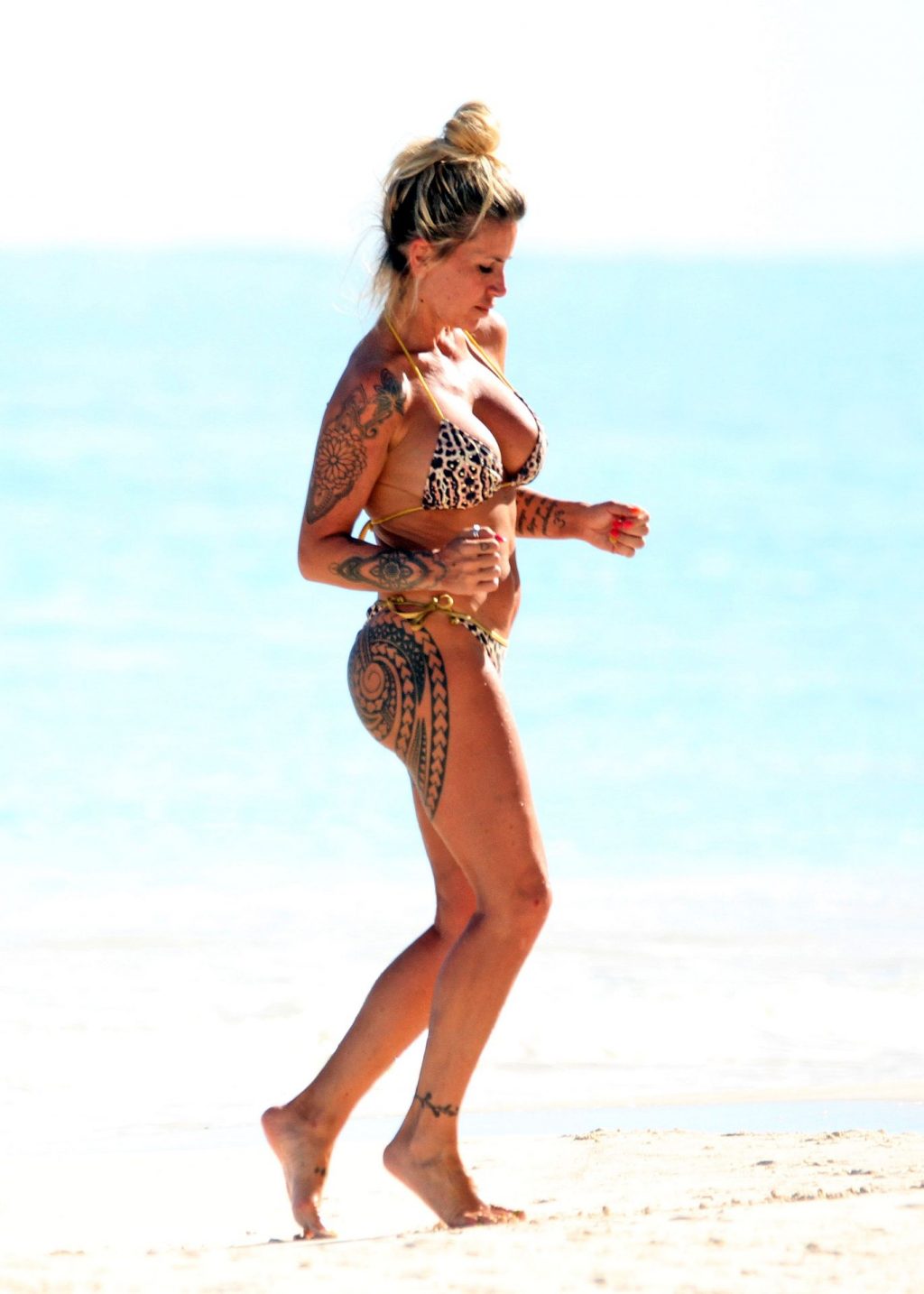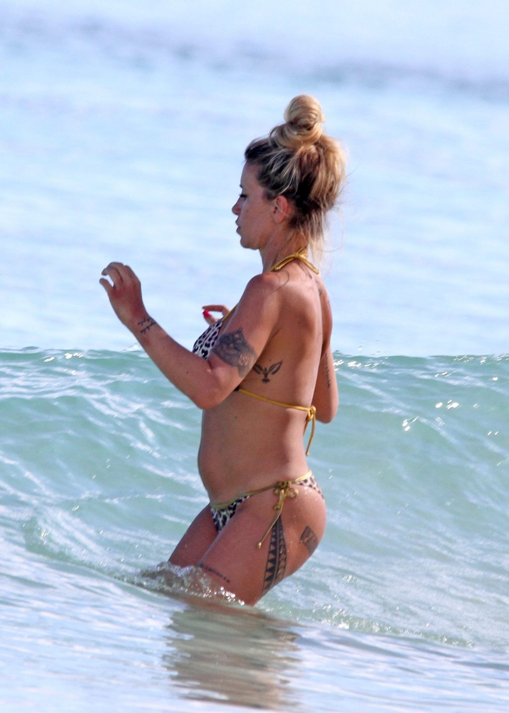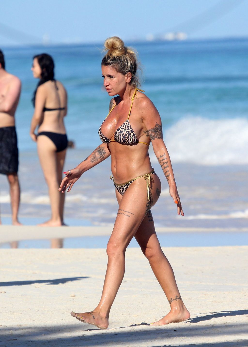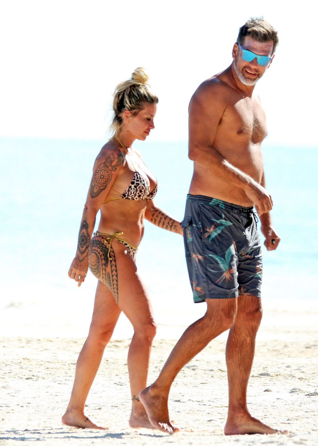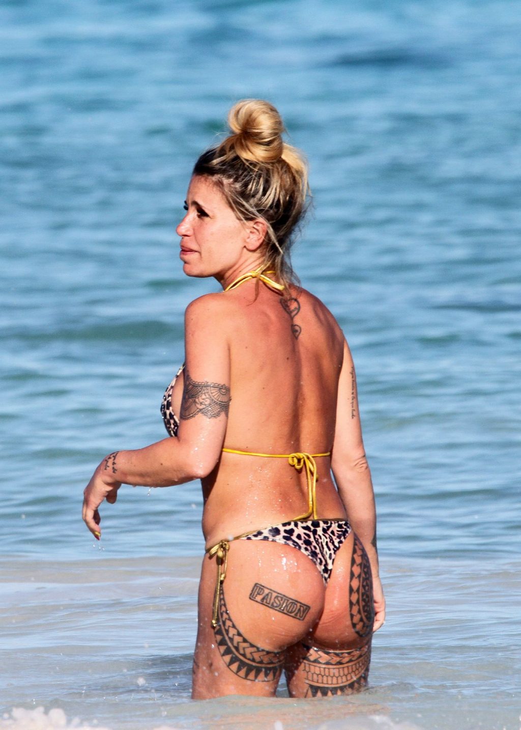 La actriz argentina Florencia Peña lleva un bikini con estampado de leopardo mientras se la ve disfrutando de la playa durante sus vacaciones en México, 31/12/2019.