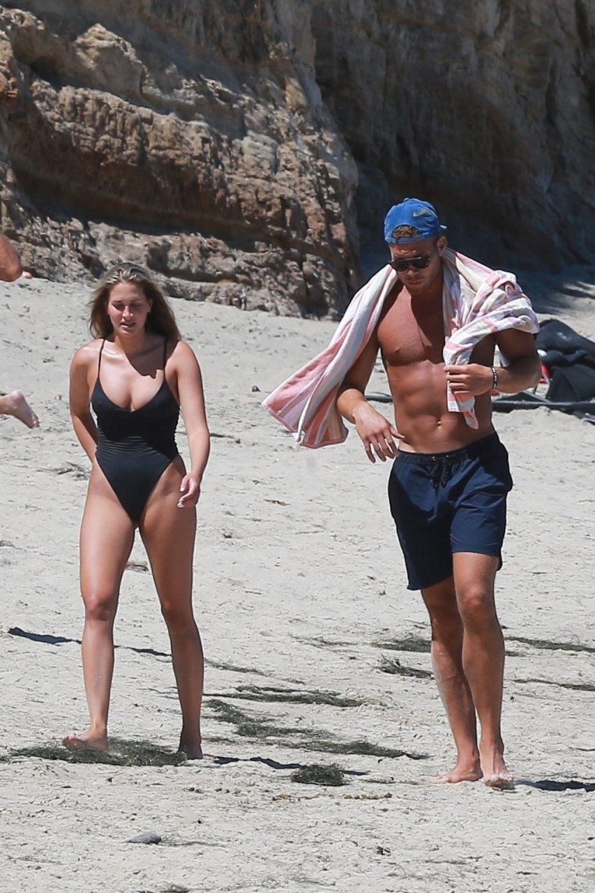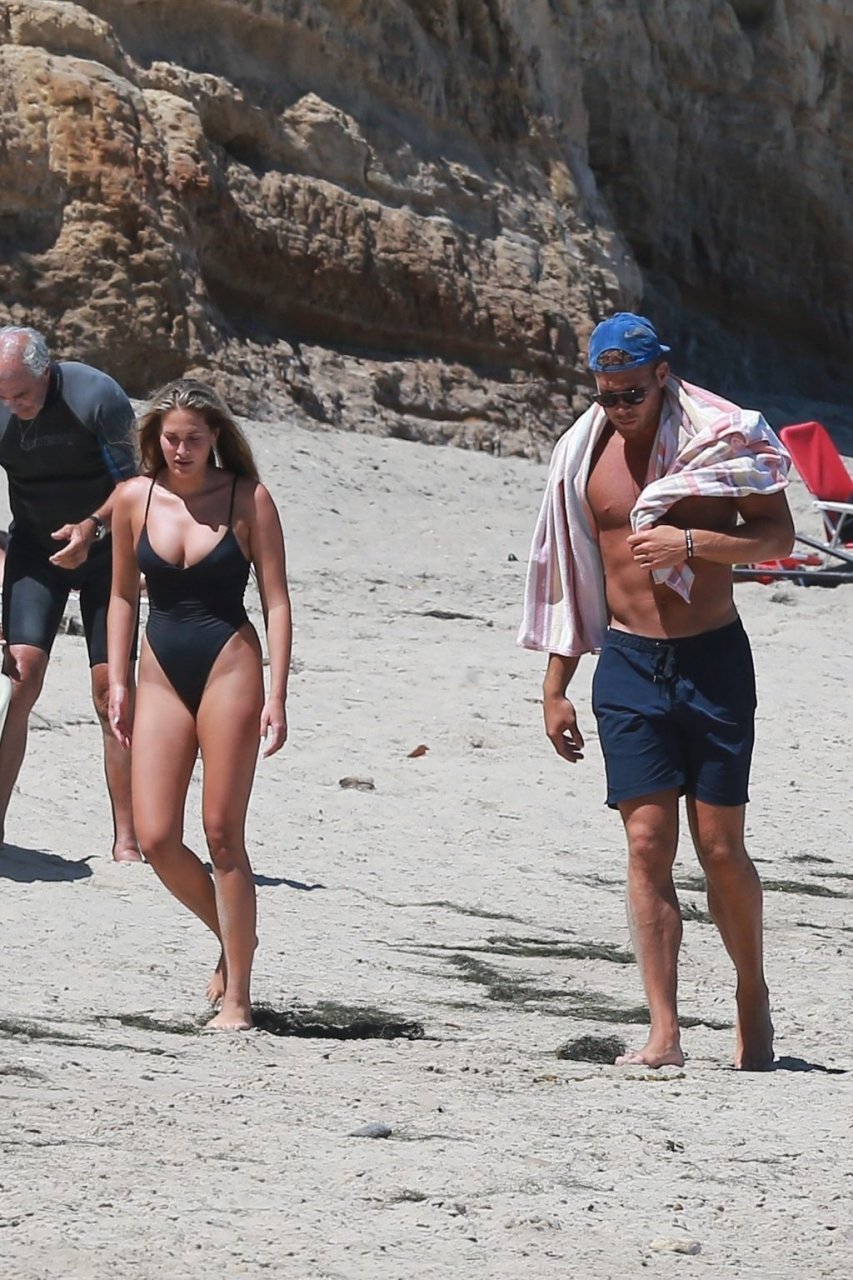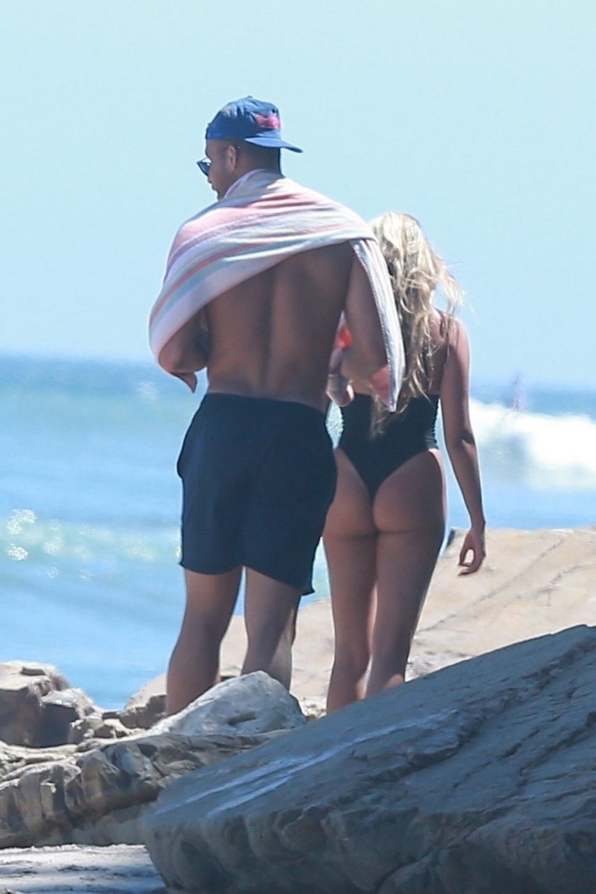 Blake Griffin y su sensual novia, Francesca Aiello (23), son vistos mientras pasean por la orilla en Malibu, 22/07/2018. El jugador de baloncesto muestra su físico en forma mientras la bonita rubia exhibe sus curvas. La pareja disfruta de un cálido día de verano para cerrar el fin de semana.
