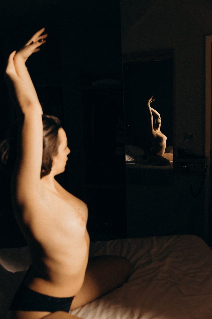 La modelo/actriz/cantante/bailarina inglesa con tatuajes y curvas Francesca “Rose” Milano (24) fue fotografiada por Nirish Shakya desnuda en la cama (2018). ¡Quizás está esperando a un hombre en su vida!