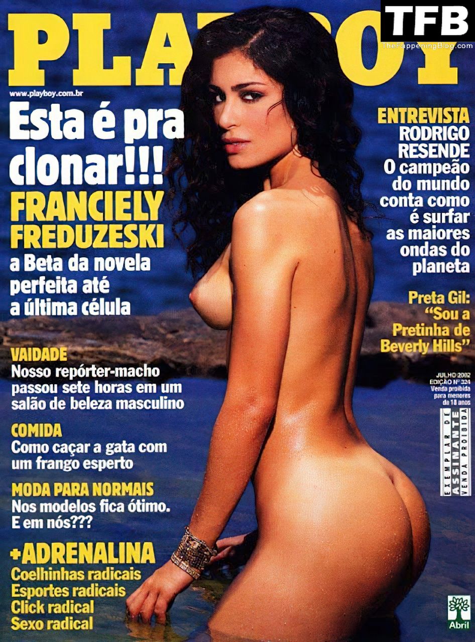La morena ardiente Franciely Freduzeski muestra sus tetas desnudas, su coño y su trasero durante una sesión al aire libre para Playboy.