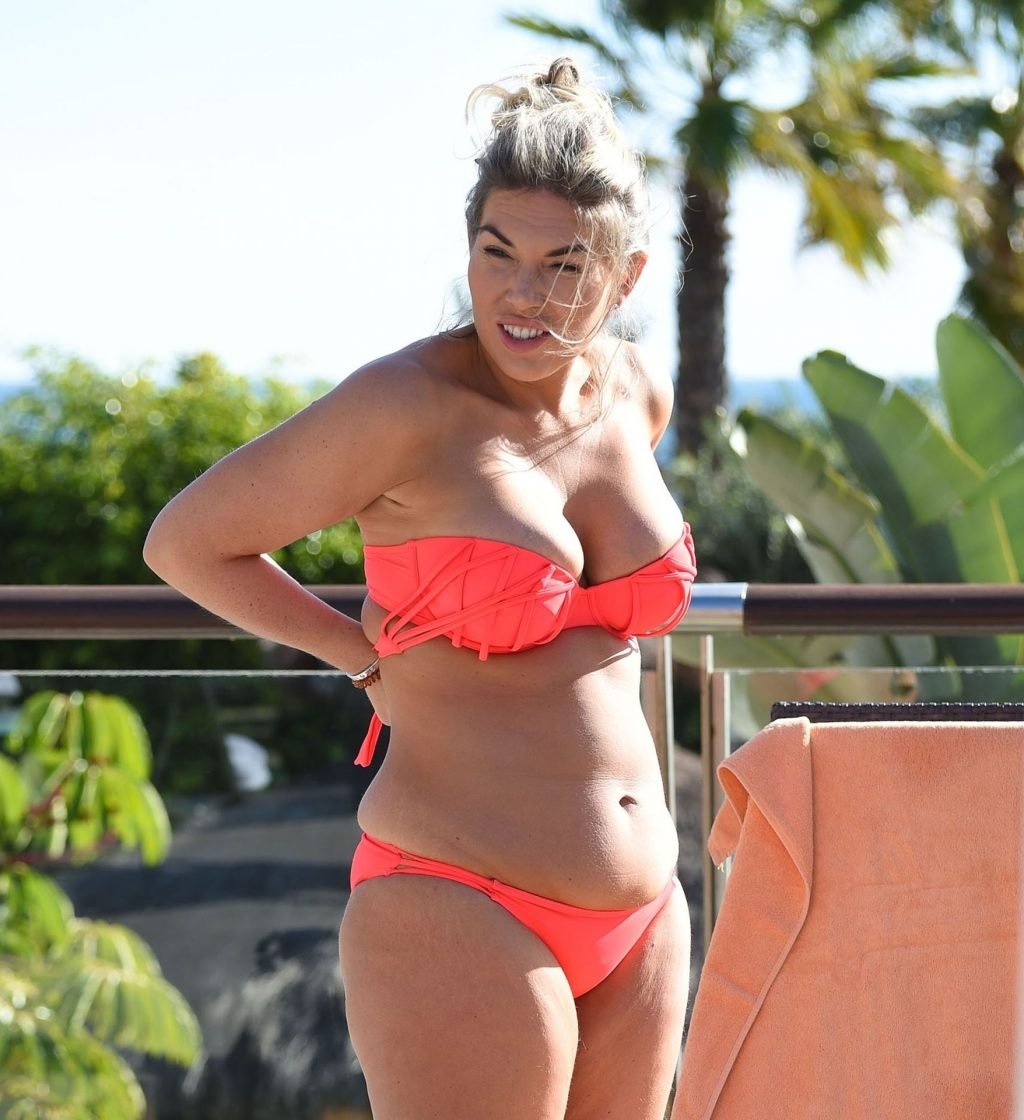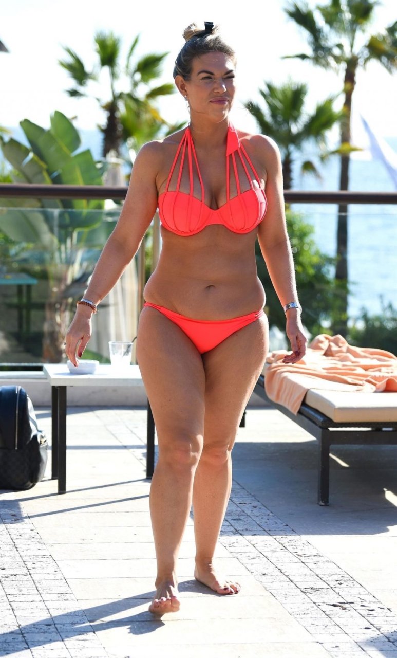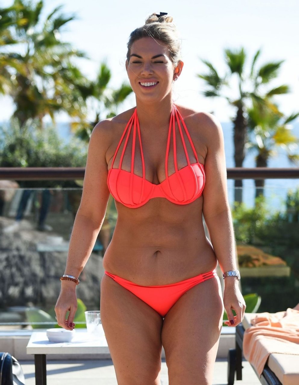 Frankie Essex continúa sus vacaciones en Tenerife después de admitir que tiene miedo de ir al gimnasio, 01/09/2019. La estrella de TOWIE de 31 años muestra su figura talla 14 con un bikini naranja.