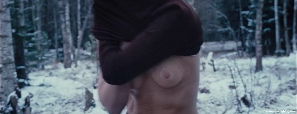 Franziska Petri se está desnudando en el bosque nevado, quitándose primero la camisa para quedarse sin camiseta, y luego mostrando el trasero y el vello púbico mientras está completamente desnuda después de quitarse los pantalones. Luego se cambia a otro par de pantalones y camisa.