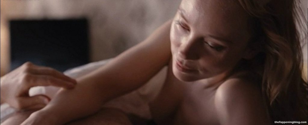 Franziska Petri muestra sus pechos desnudos en una escena de sexo con un hombre en la que primero la vemos en su regazo y luego rodando sobre su espalda.