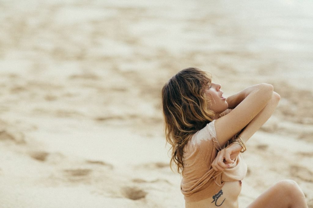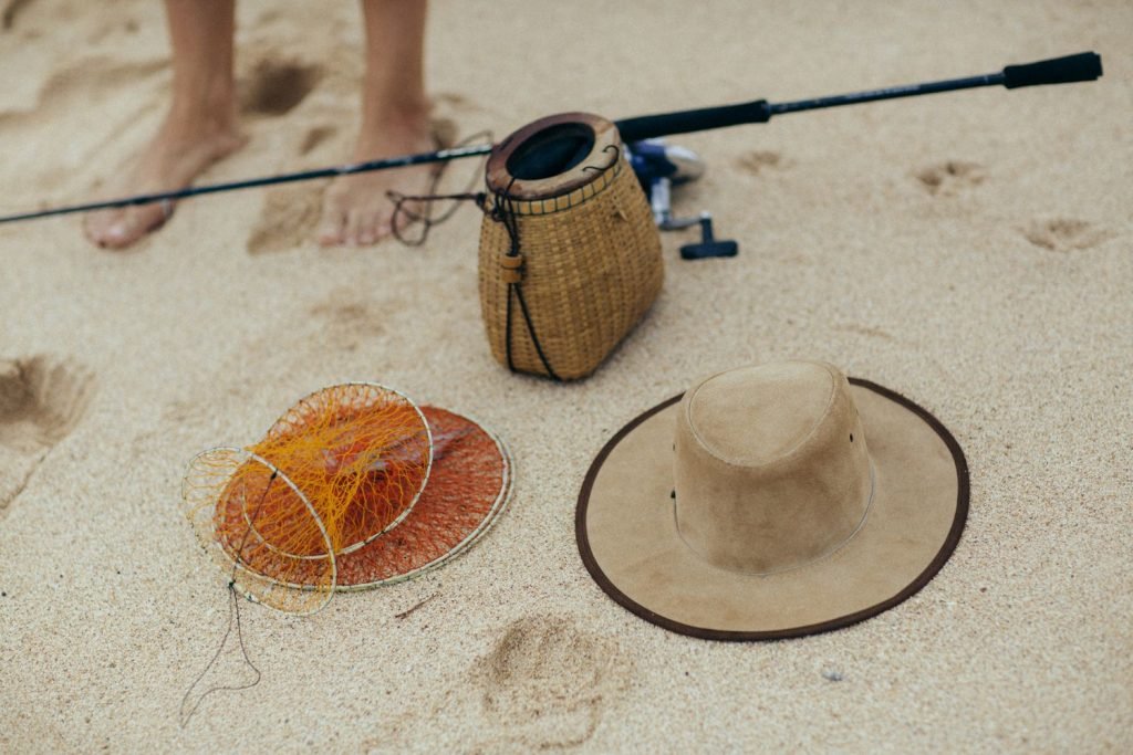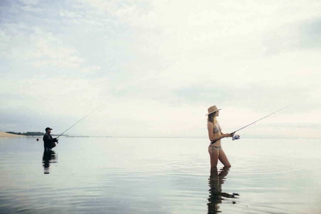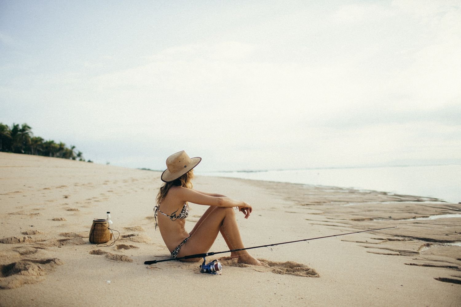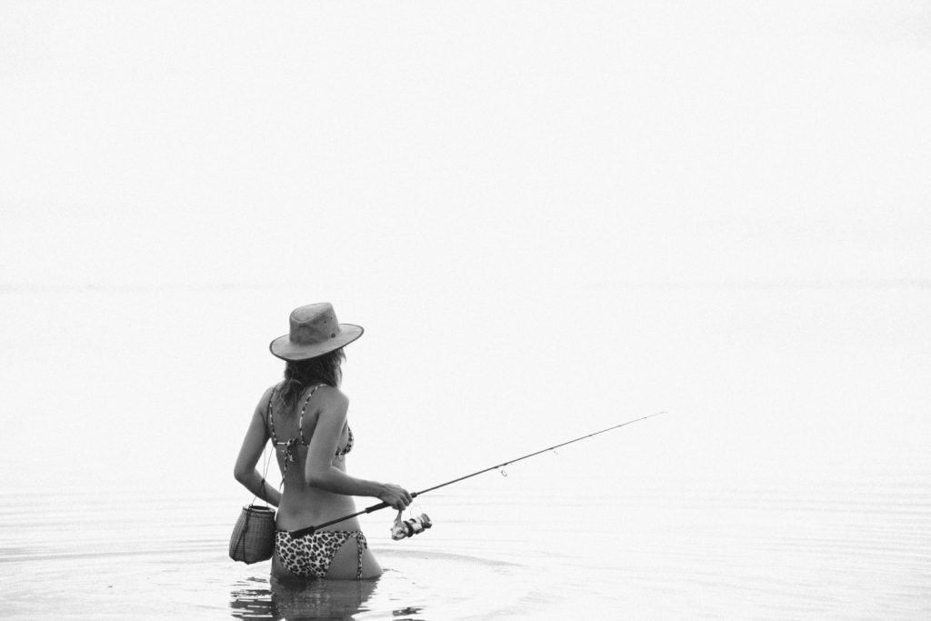 La modelo alemana Franziska von Tschurtschenthaler (Cisco) posa topless y en bikini mientras pesca en una sesión fotográfica de Carly Brown (2019).