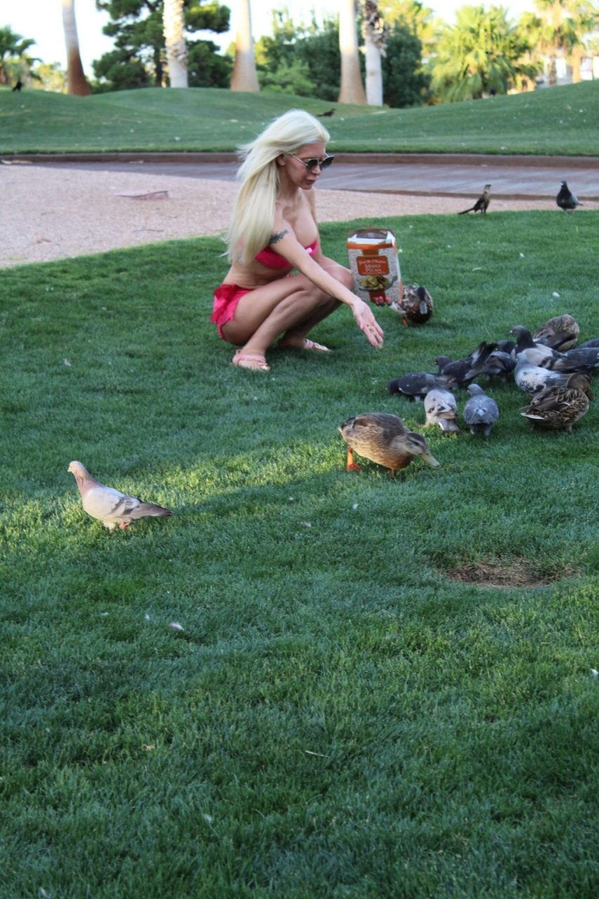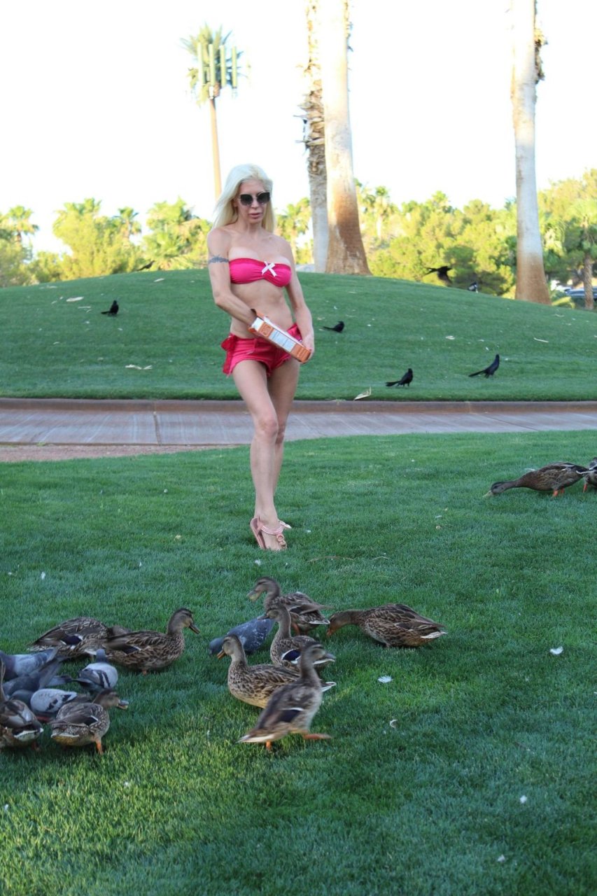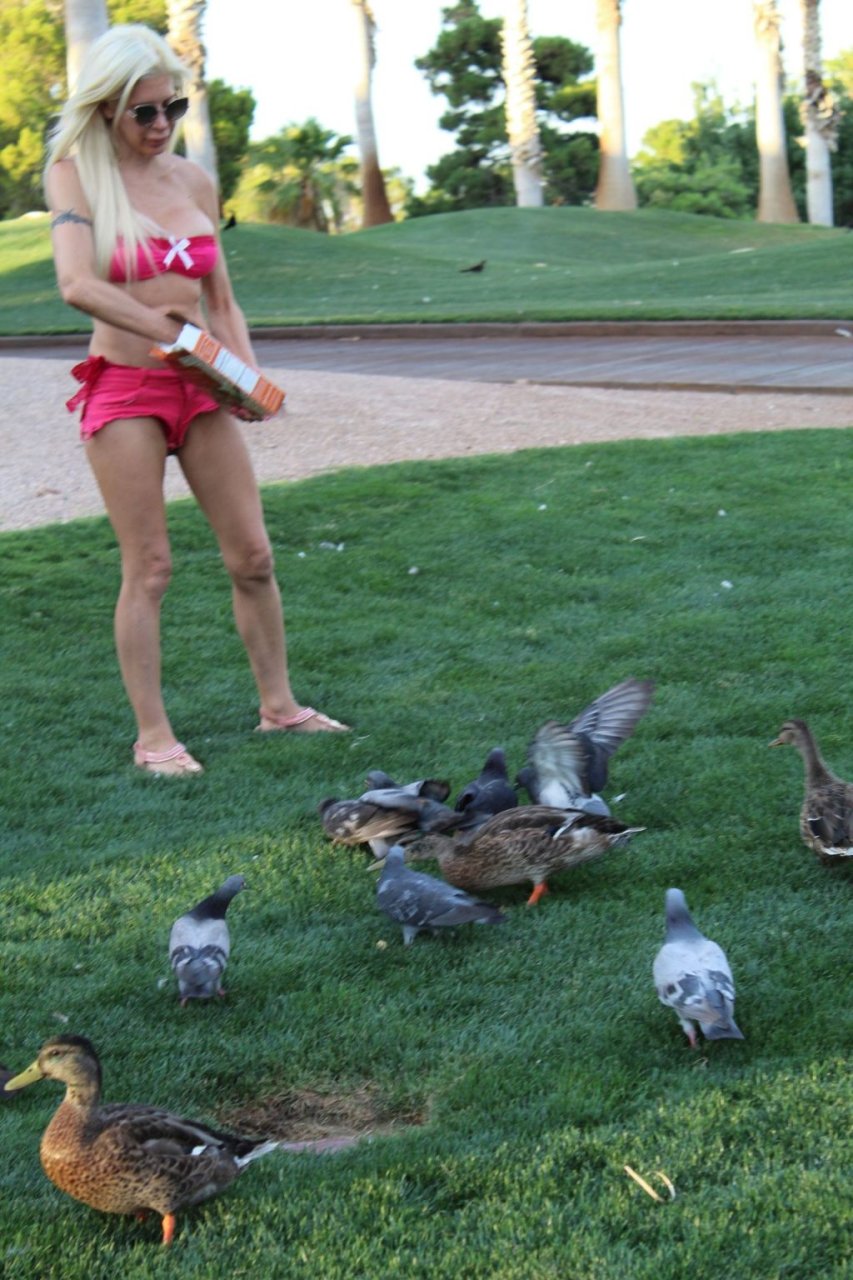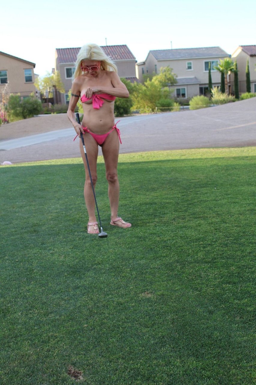 Reality Starlet Angelique “Frenchy” Morgan aparece jugando golf en un campo de golf de Las Vegas con un bikini rosa muy escaso y tiene un deslizamiento accidental de pezón en Las Vegas, 12/07/2019. Finalmente, Frenchy nota el deslizamiento, arregla el fallo de vestuario y continúa su juego de golf.