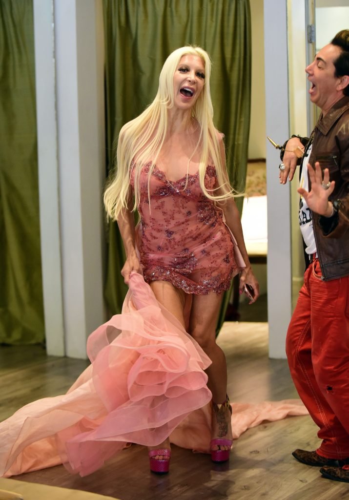 La abuela Frenchy Morgan se quita la ropa en una boutique de Beverly Hills, 17/05/2017. Angelique Frenchy Morgan es una personalidad francesa de la televisión reality (Celebrity Big Brother), actriz, bailarina, modelo. Edad – 41.