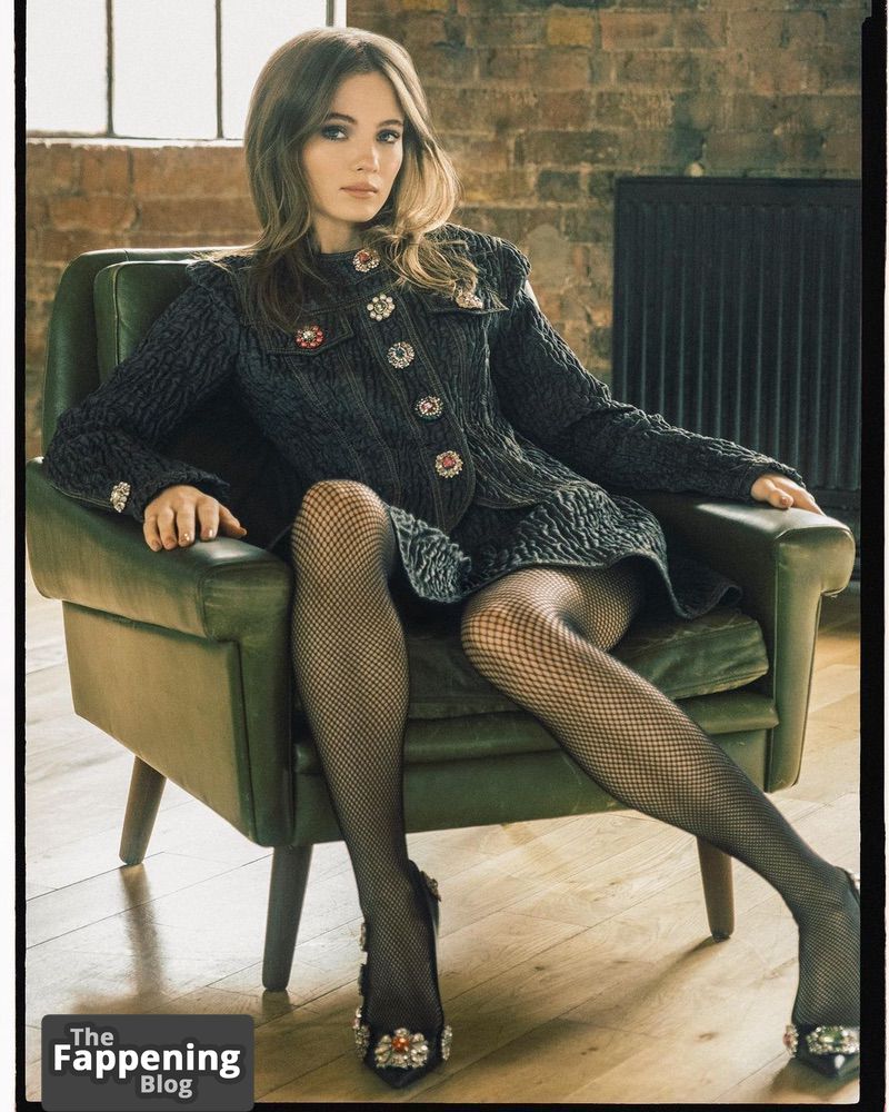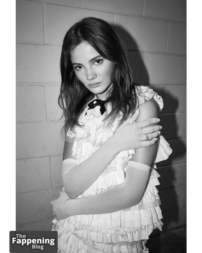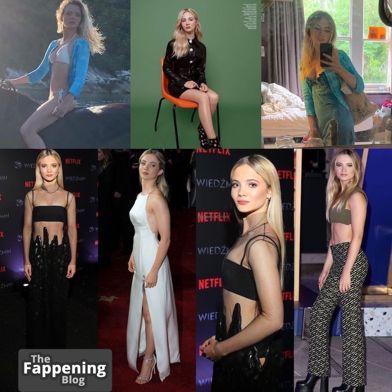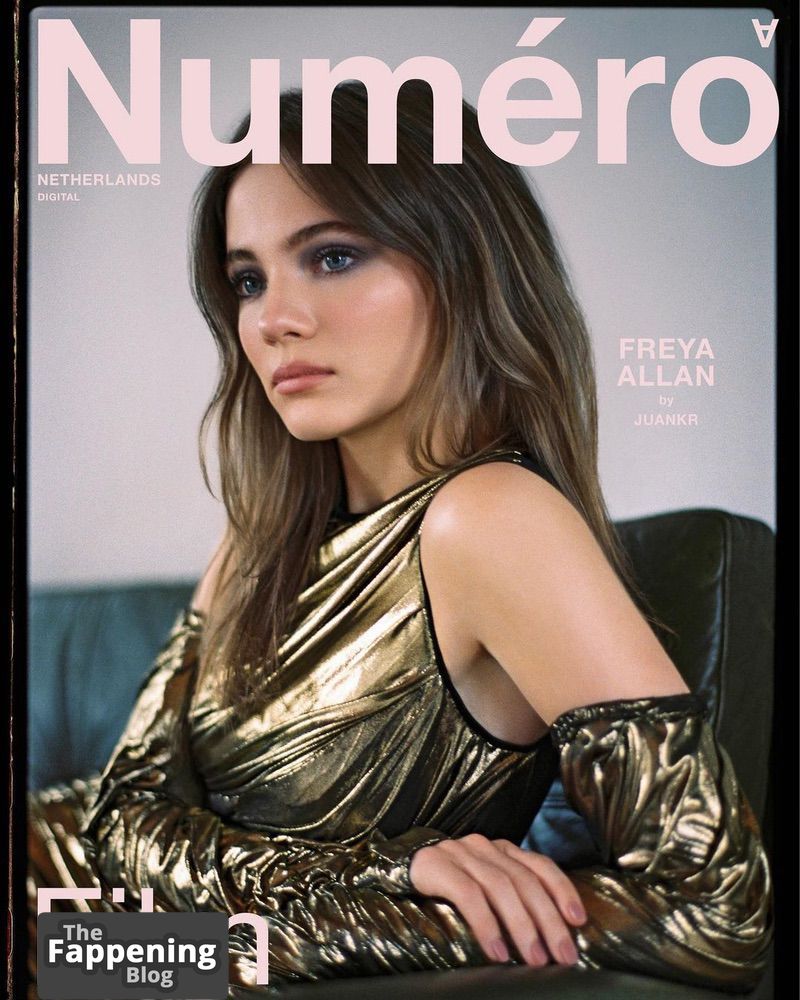 La colección de fotos de Freya Allan presenta contenido ligeramente desnudo y provocativo, destacando sus pechos sin sostén con un bonito escote, glúteos expuestos, piernas atractivas, casos de fallos de vestuario al levantar la falda y otras imágenes provocativas.