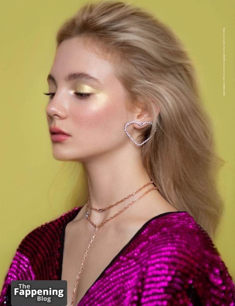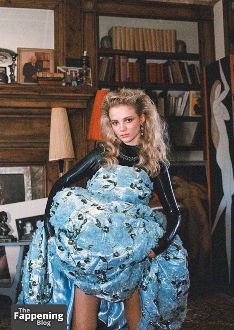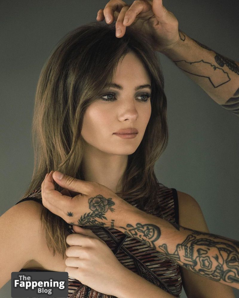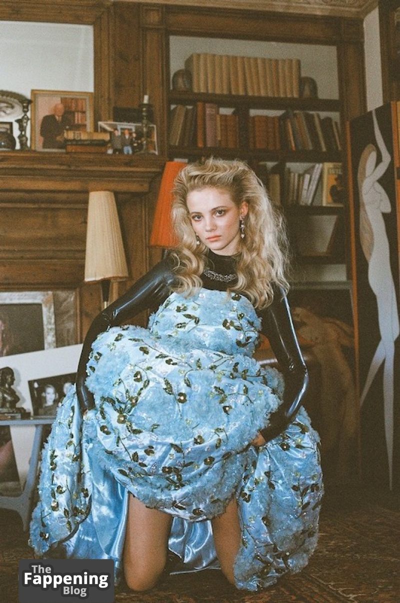 La colección de fotos de Freya Allan presenta contenido ligeramente desnudo y provocativo, destacando sus pechos sin sostén con un bonito escote, glúteos expuestos, piernas atractivas, casos de fallos de vestuario al levantar la falda y otras imágenes provocativas.