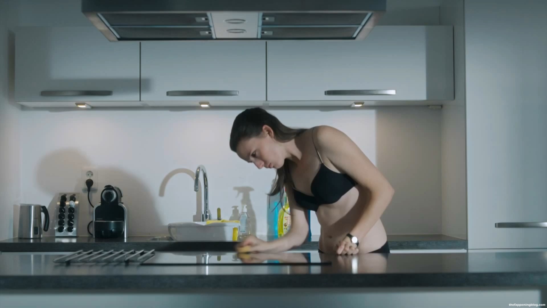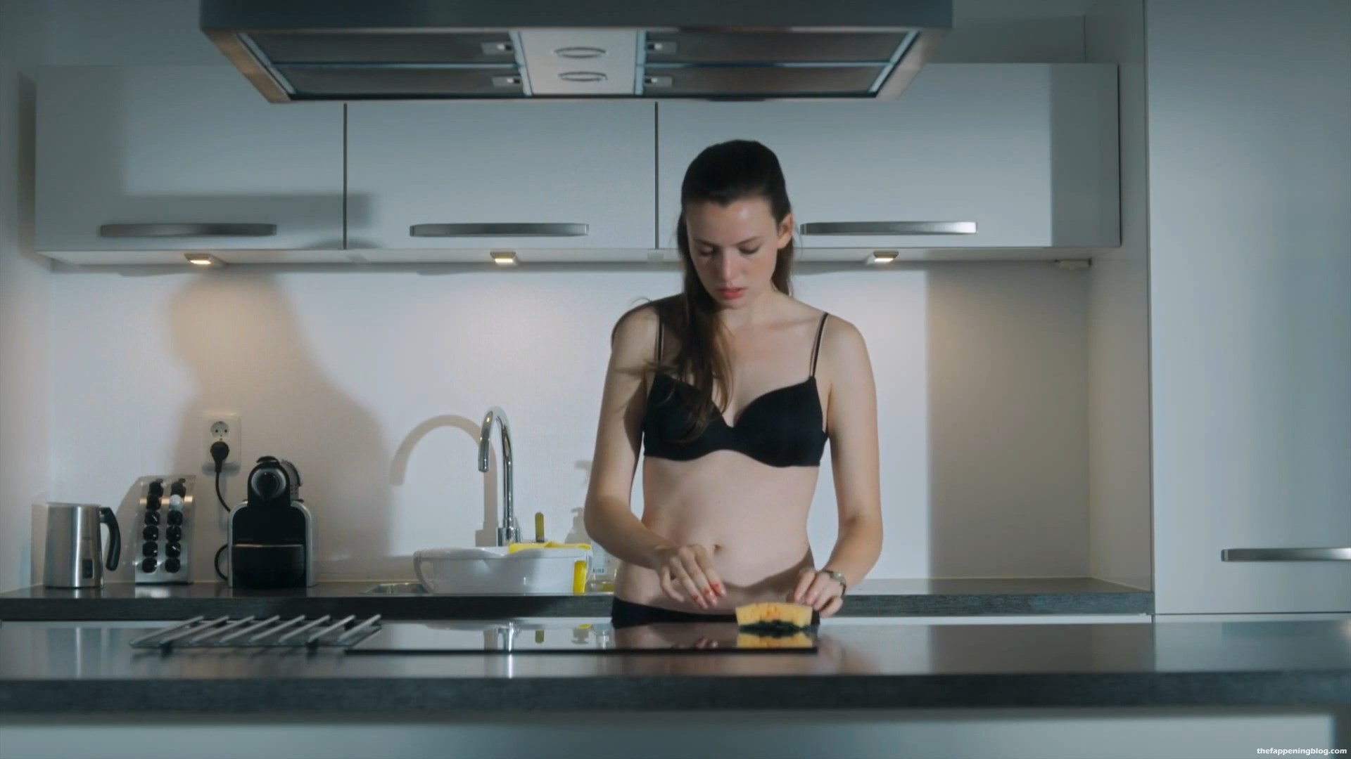 Mira las escenas ligeramente desnudas y sexys de Gaite Jansen en “De 12 Van Oldenheim” (2018) s01e02-03, donde puedes ver su cuerpo esbelto con lencería negra y sin ella en casa.