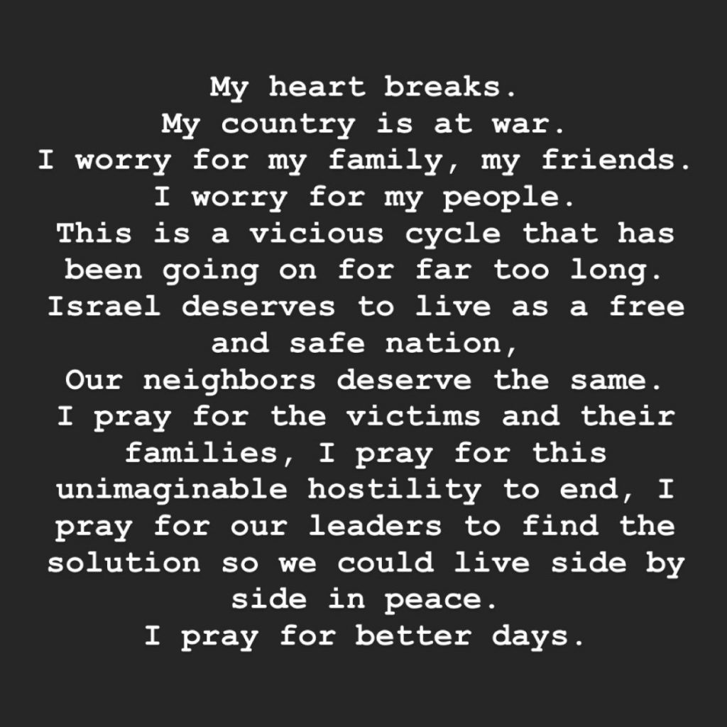 La actriz israelí Gal Gadot publica sobre salvar vidas debido a los crímenes de guerra perpetrados por el pueblo palestino en la guerra con Israel. Todo el mundo está observando la confrontación. ¡Quizás su belleza ayude a reconciliar a todos!