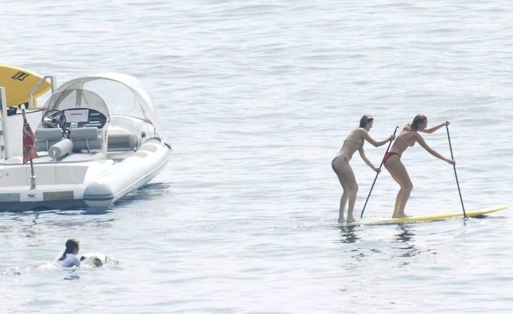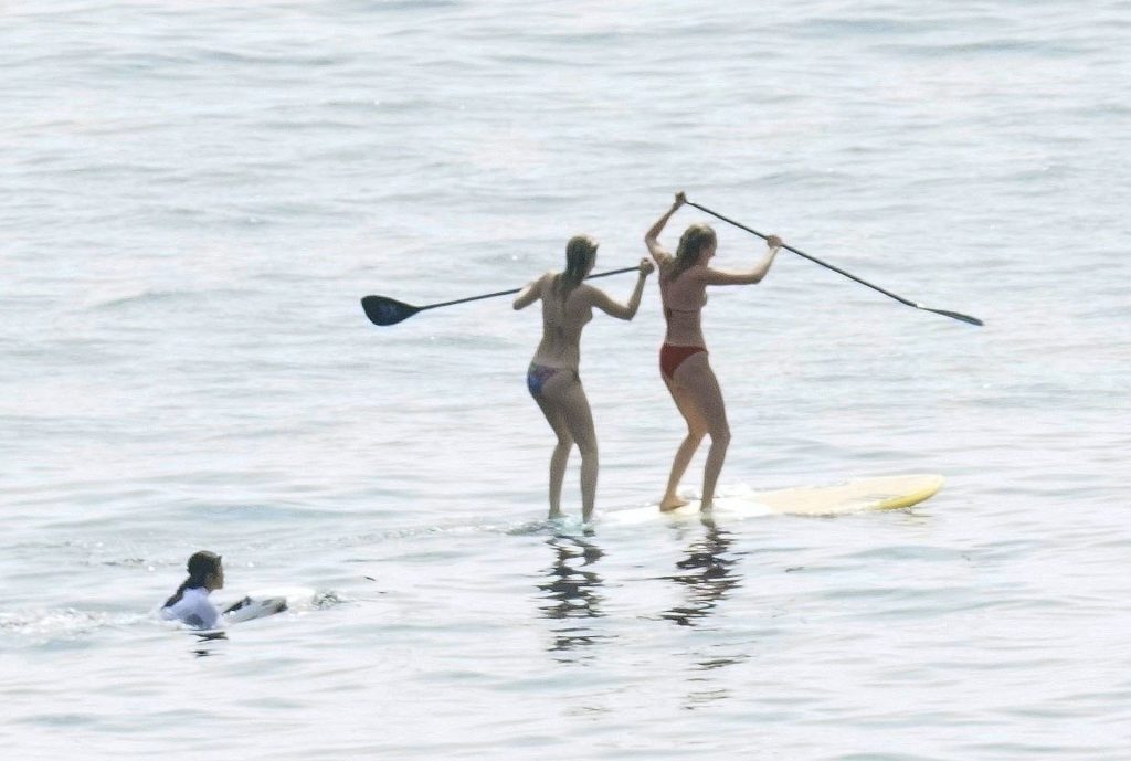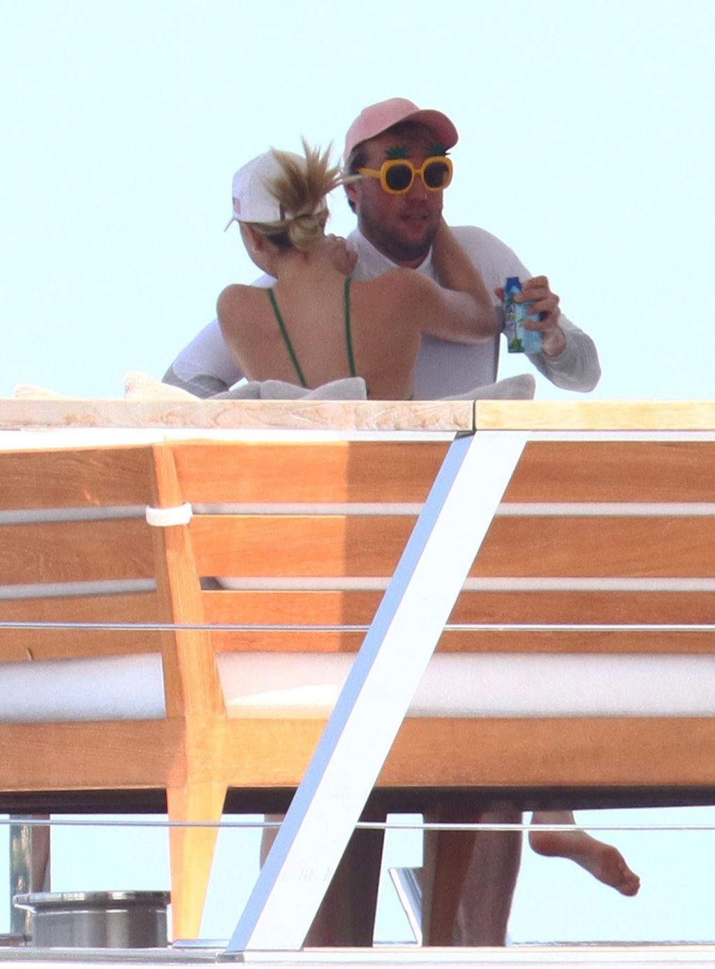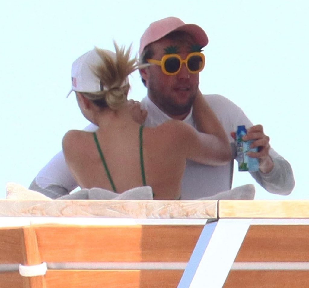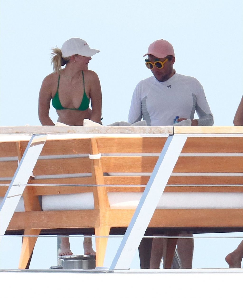 Eve, con poca ropa, luciendo su pequeño bikini verde, disfruta de un emocionante paseo en moto acuática y lleva una gorra que dice “Fuck It”, con la bandera de EE.UU. en el costado.