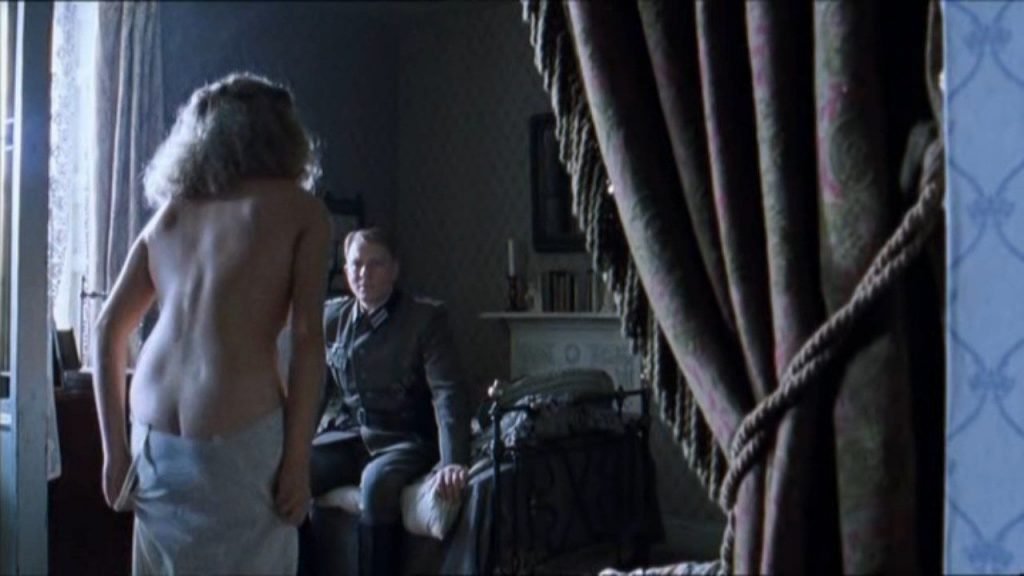 Mira la breve escena desnuda de Louisa Clein de la serie de televisión “Island at War” (2004) Temporada 1 Episodio 5 (s01e05), donde ella está frente a un oficial y se quita la ropa para quedarse desnuda. Al principio, vemos el trasero desnudo de Louisa desde un costado y sus pechos mientras el alemán observa su cuerpo desnudo. No vimos la escena de sexo al final.
