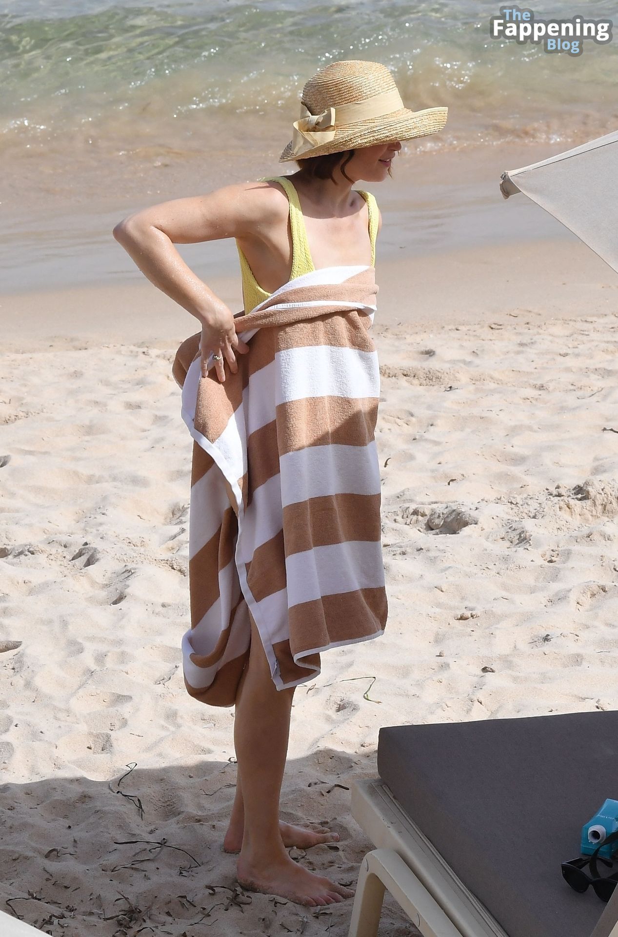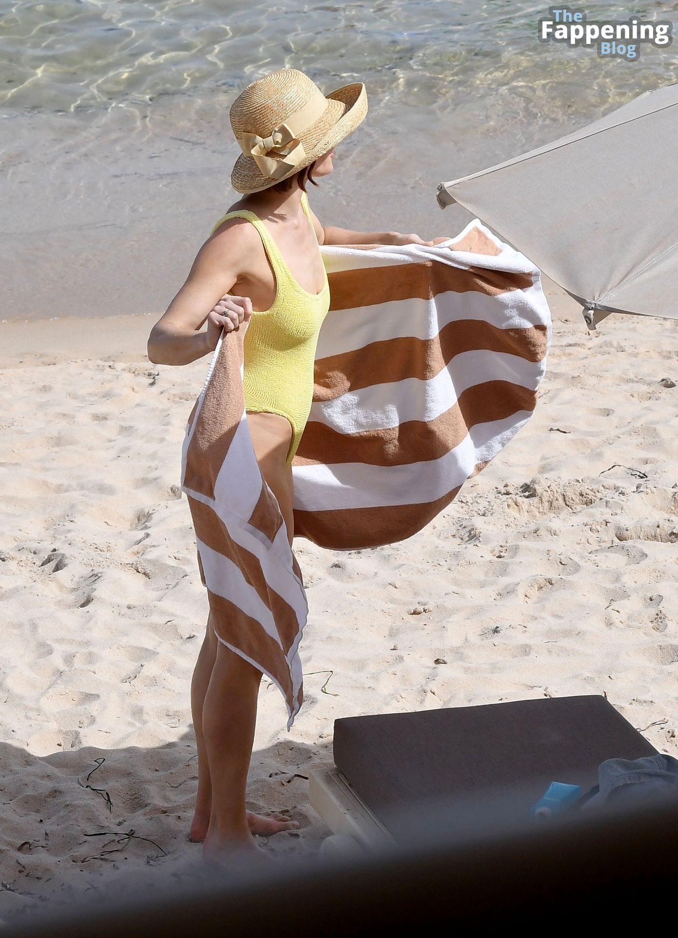 Gemma Arterton, la chica Bond, aparece en un bañador amarillo mientras se relaja en unas vacaciones en la playa en Italia. Recientemente, en febrero, reveló que ella y su esposo Rory Keenan tuvieron a su primer pequeñín en diciembre.