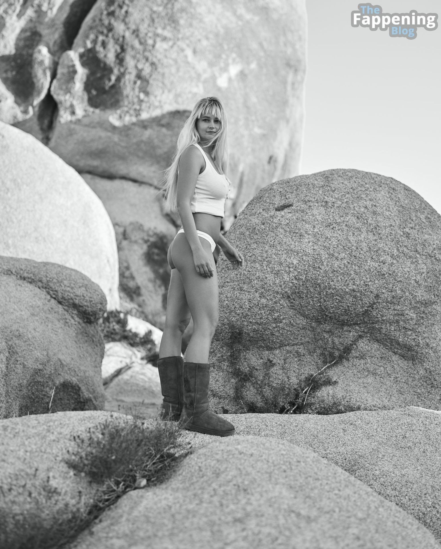 Prepárate para experimentar la sesión de fotos alucinante y sensual de Genevieve Morton, donde se entrega por completo y aparece totalmente desnuda y sin sostén, mostrando con orgullo sus increíbles pechos y su seductora trasero.