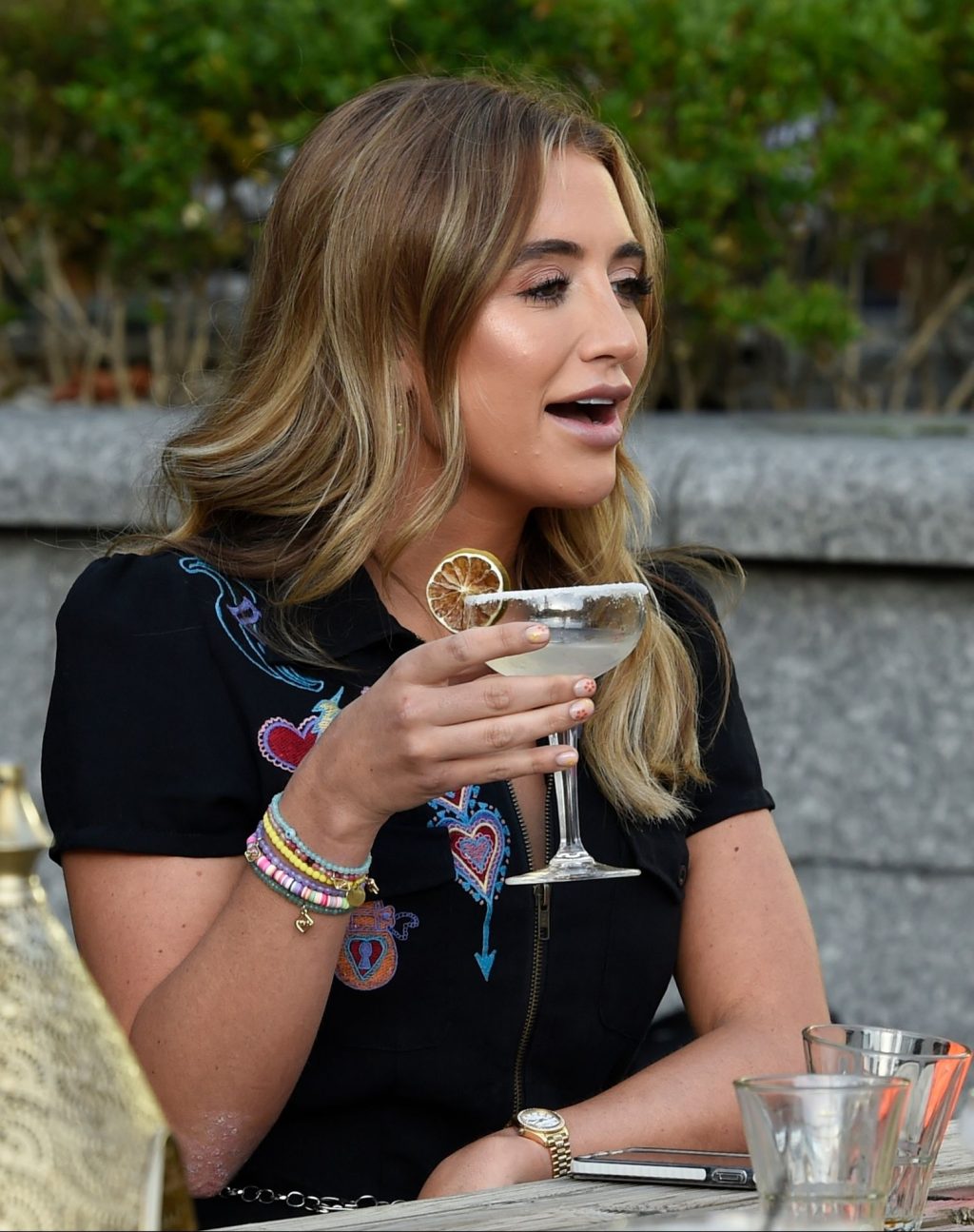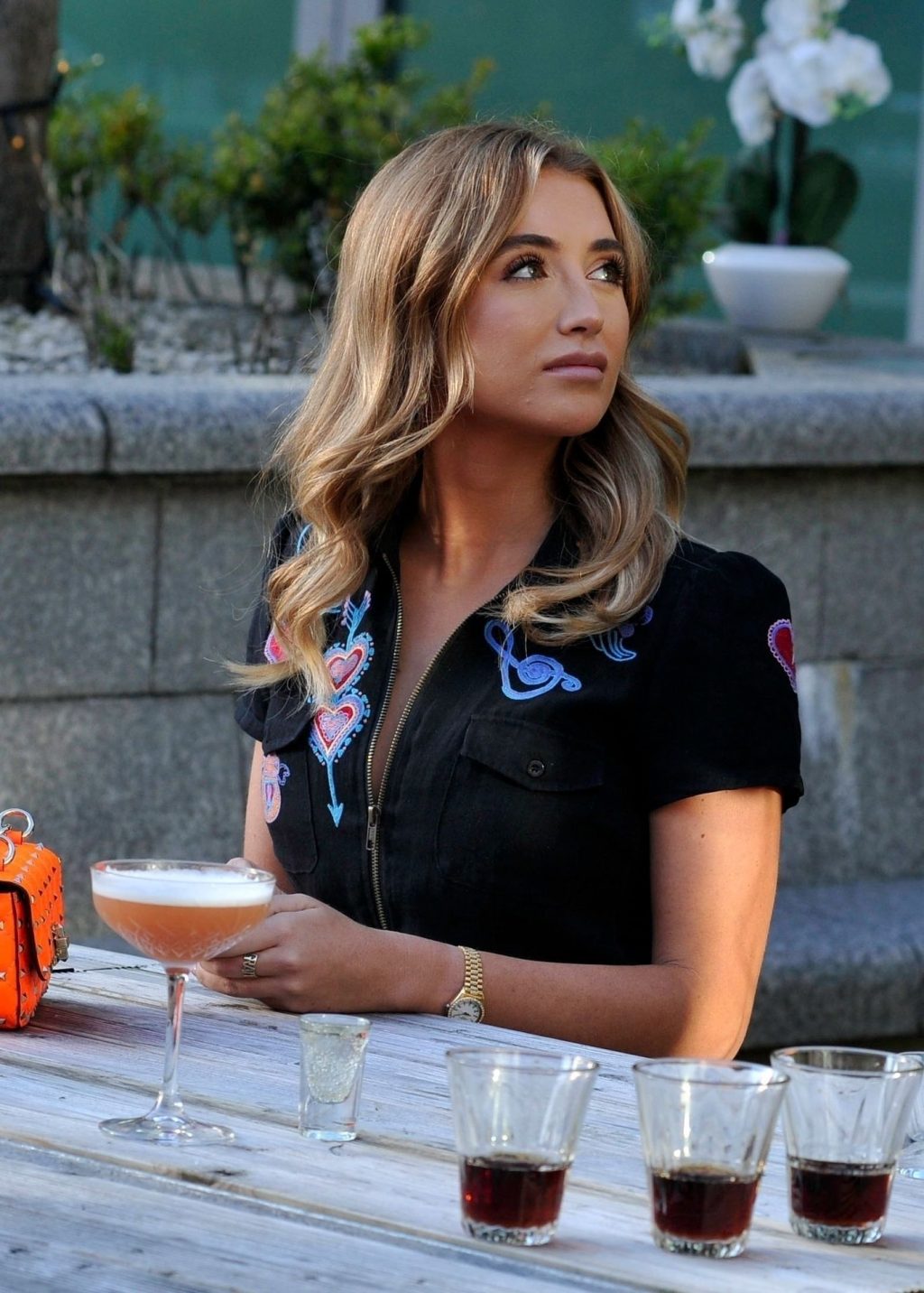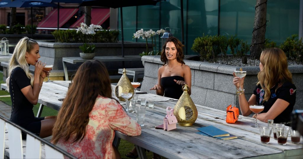 Love Island y la estrella de TOWIE Georgia Harrison presume de sus nuevos pechos 32C de $8K mientras filma Olivia Meets her Match con Nicole Bass y Fran Parman en Manchester en Impossible Bar, 09/02/2020.