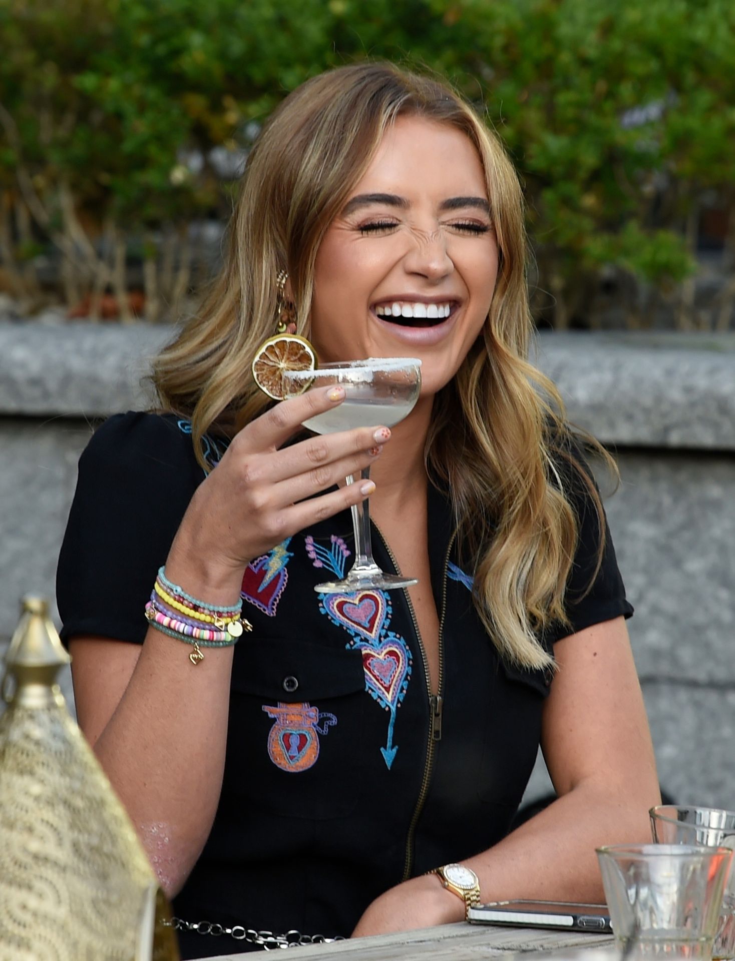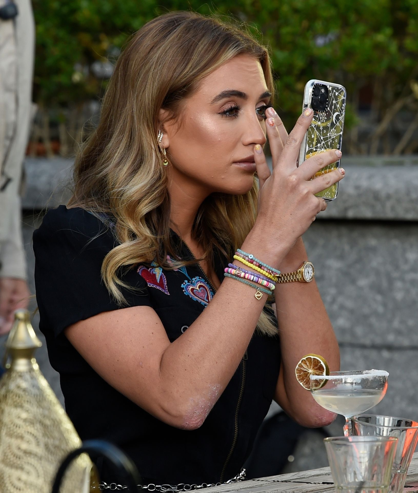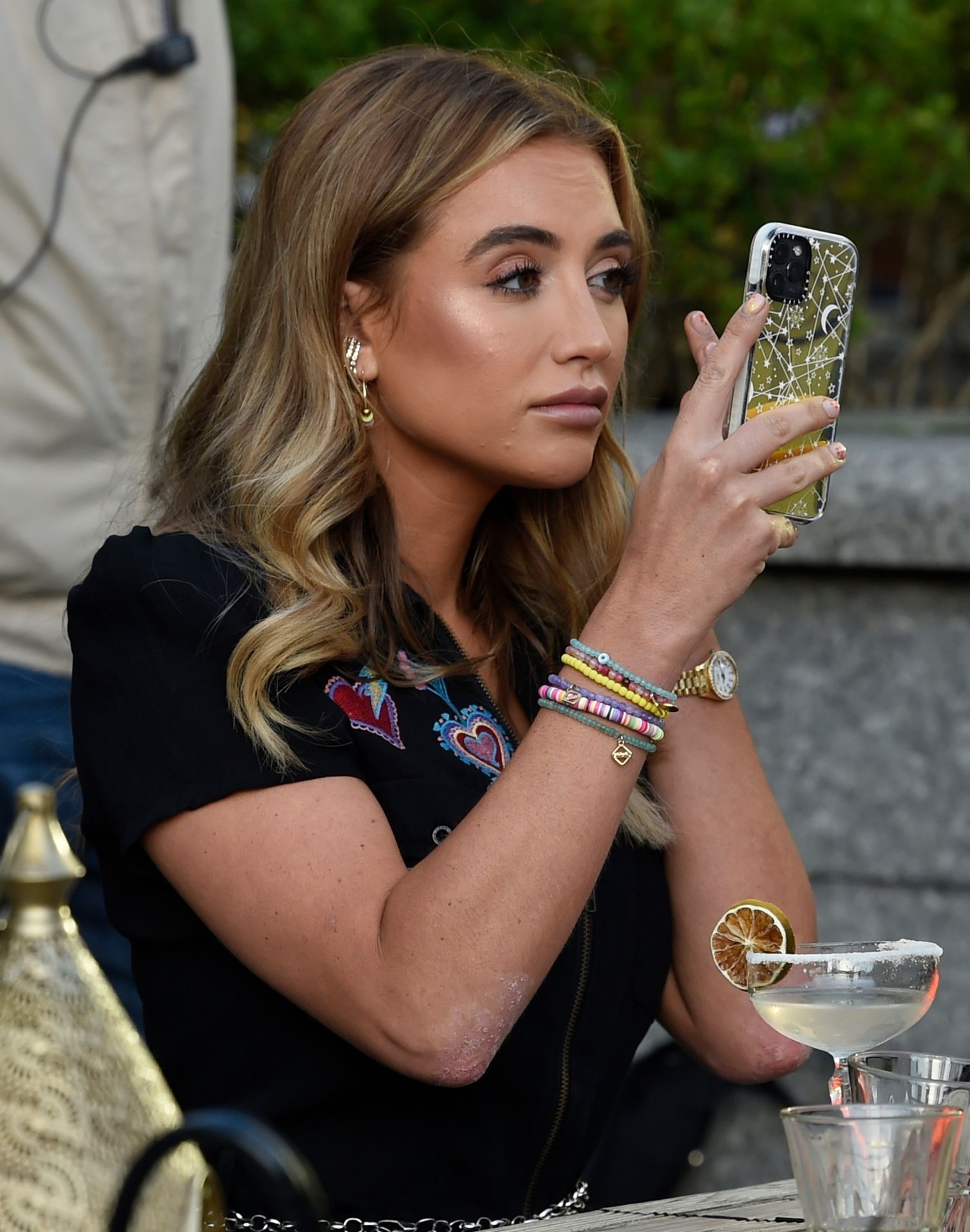 Love Island y la estrella de TOWIE Georgia Harrison presume de sus nuevos pechos 32C de $8K mientras filma Olivia Meets her Match con Nicole Bass y Fran Parman en Manchester en Impossible Bar, 09/02/2020.