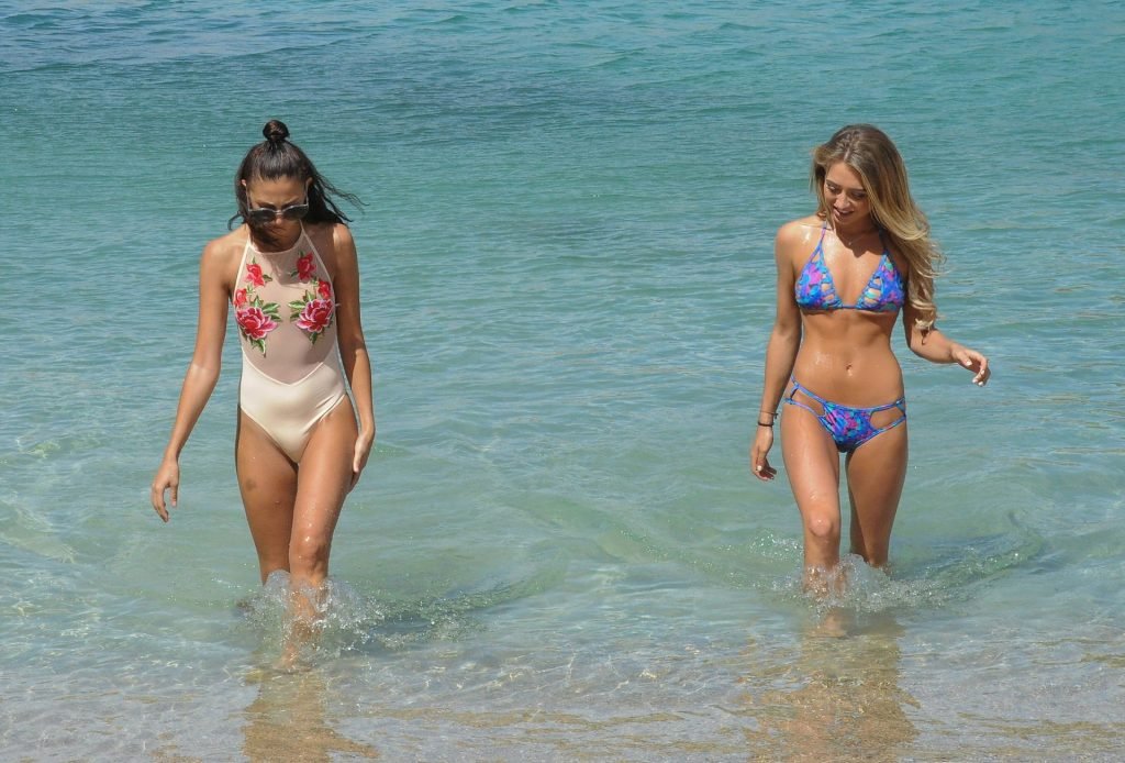 “Love Island” y la estrella de TOWIE Georgia (George) Harrison fue vista con una amiga en la playa de Tenerife, 28/11/2018.
