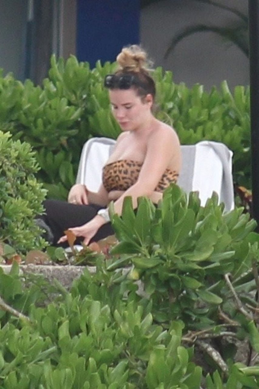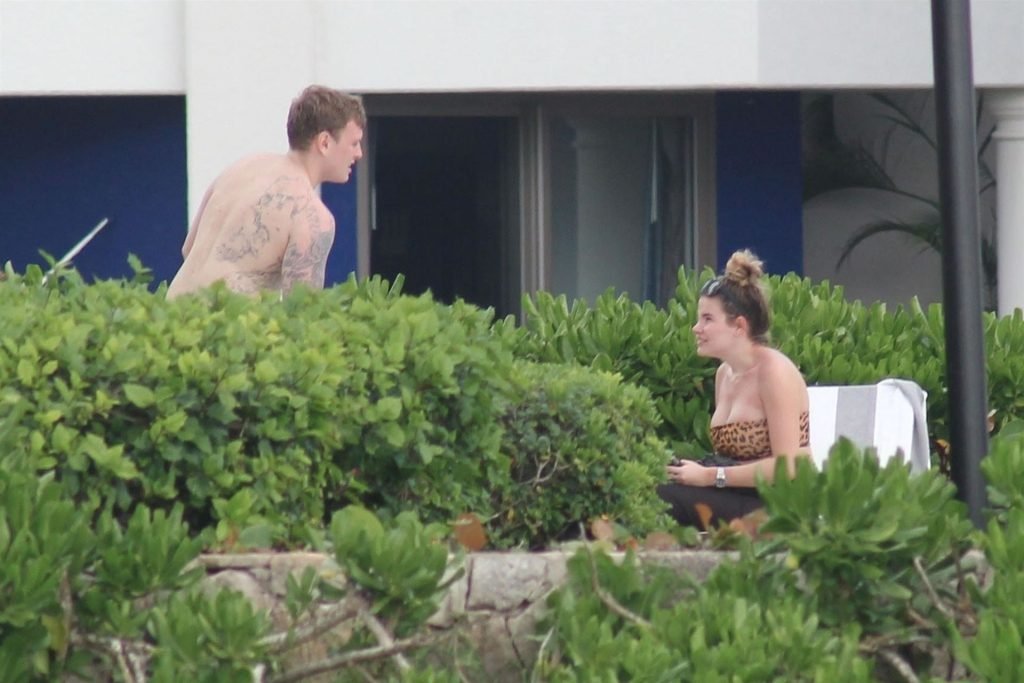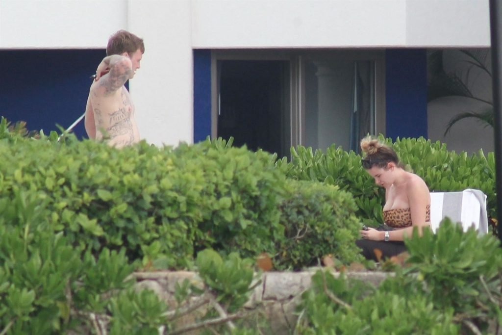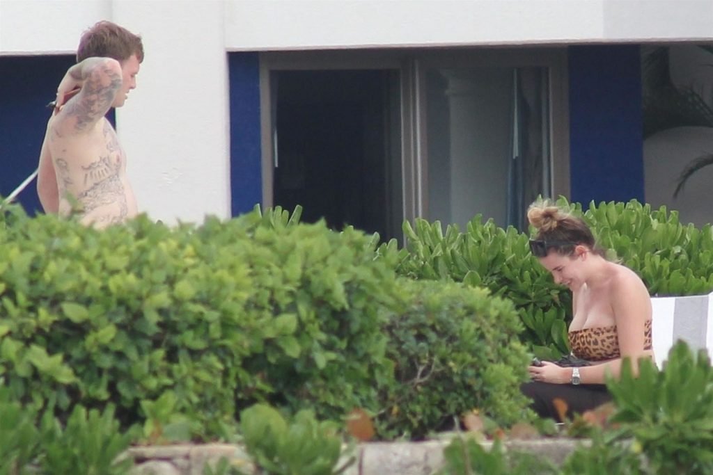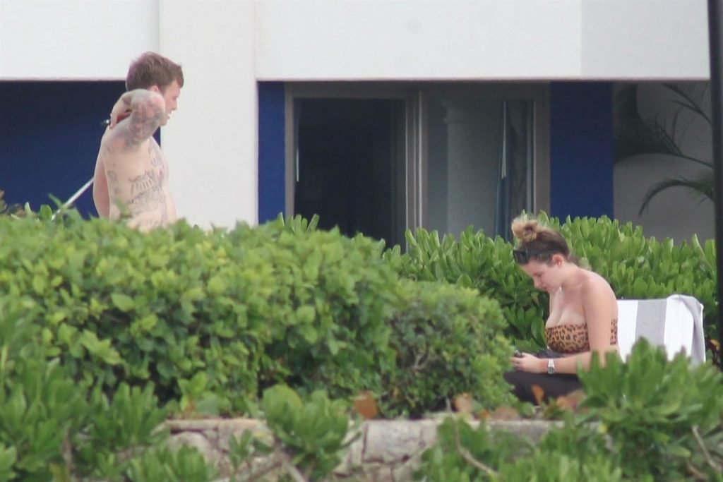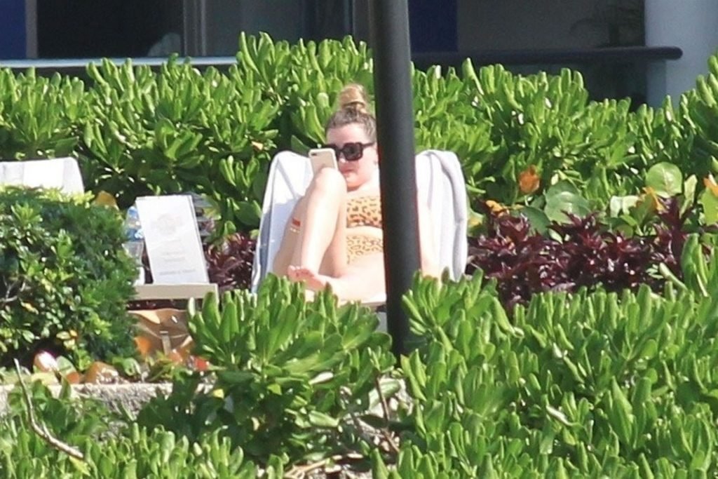 La estrella de TOWIE Georgia Kousoulou y su novio Tommy Mallet pasan el día tomando el sol en su hotel en Riviera Maya, México, 02/05/2019. Georgia lucía un bikini de estampado de leopardo mientras descansaba junto a la piscina.