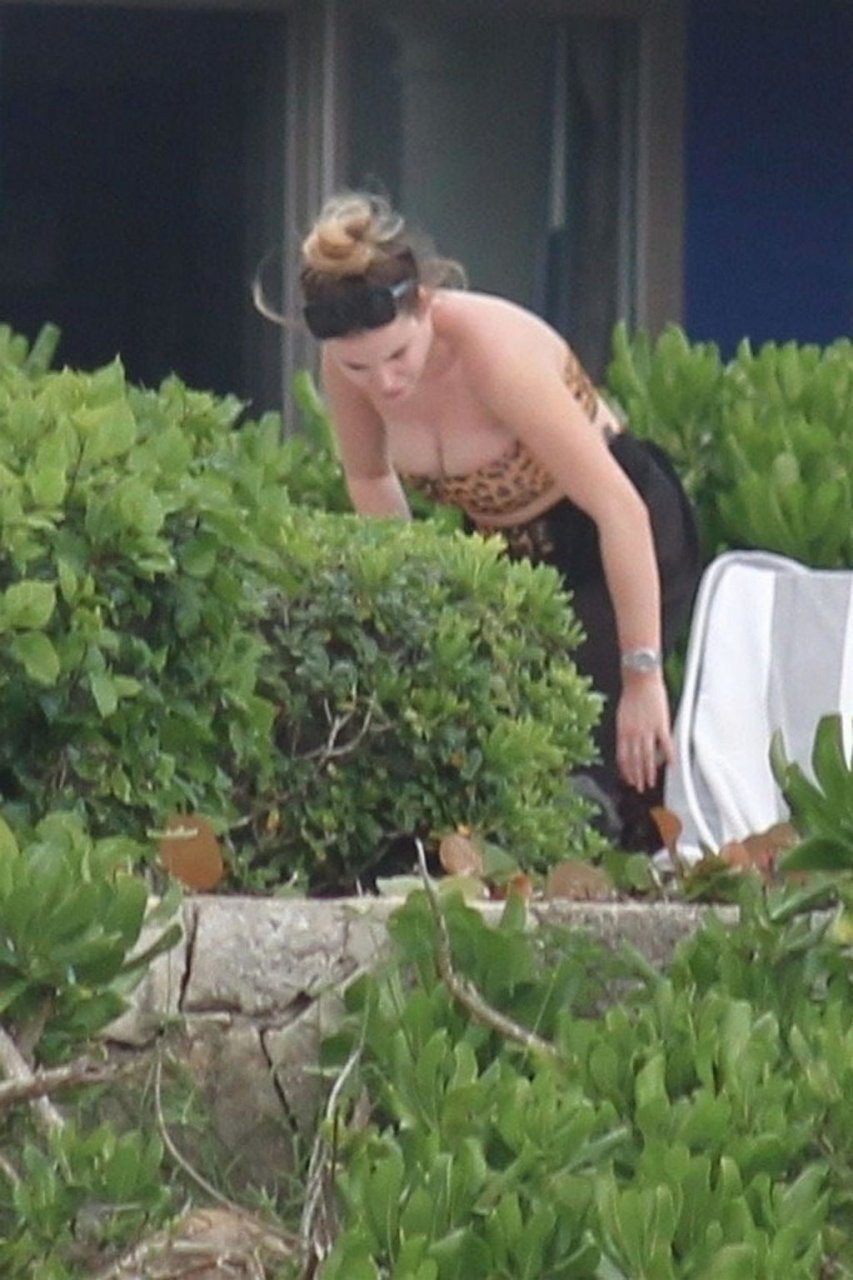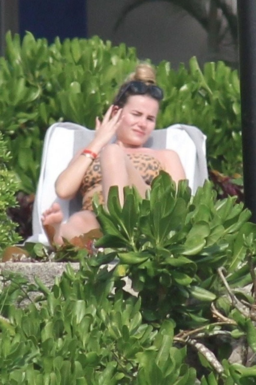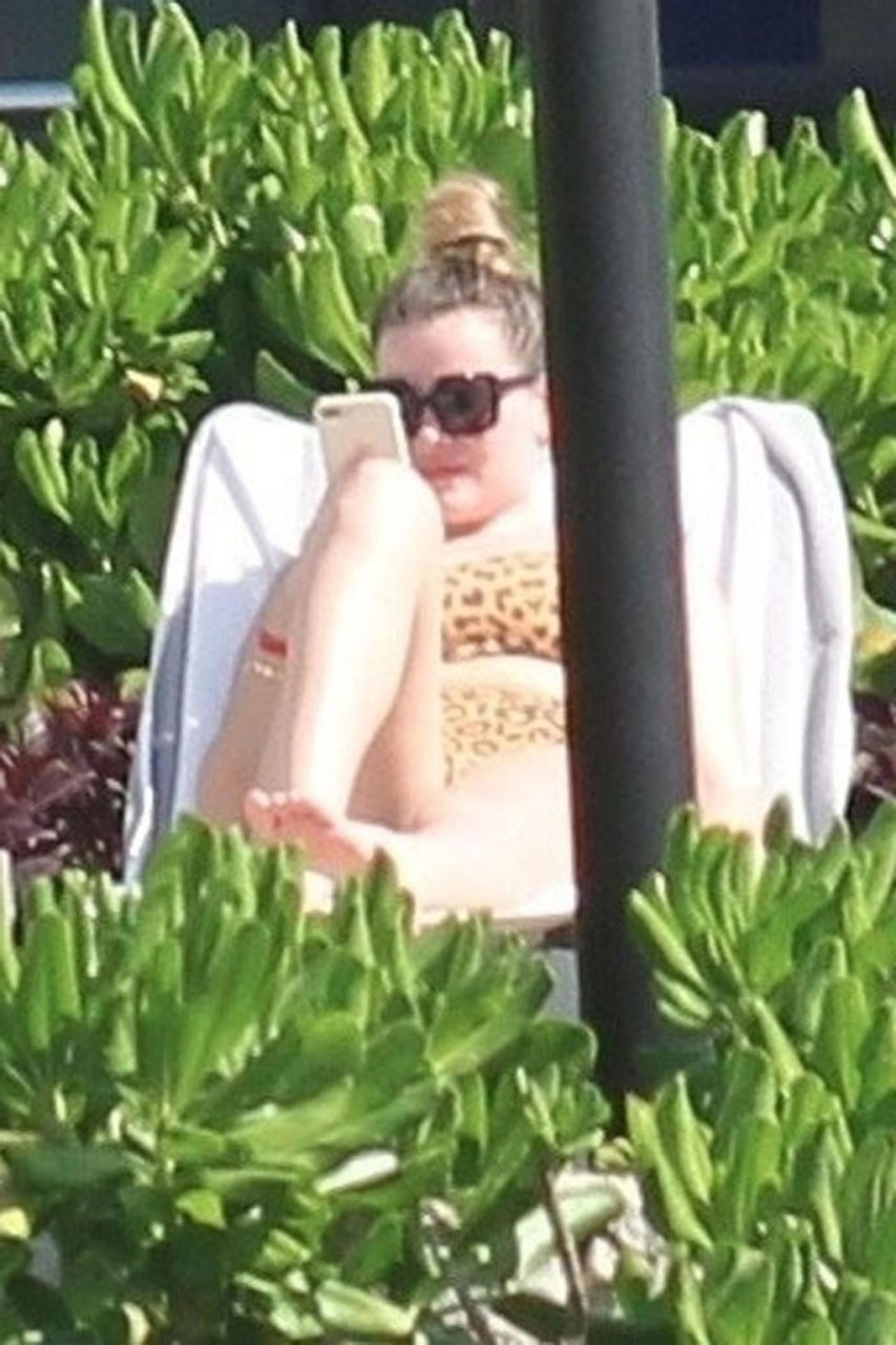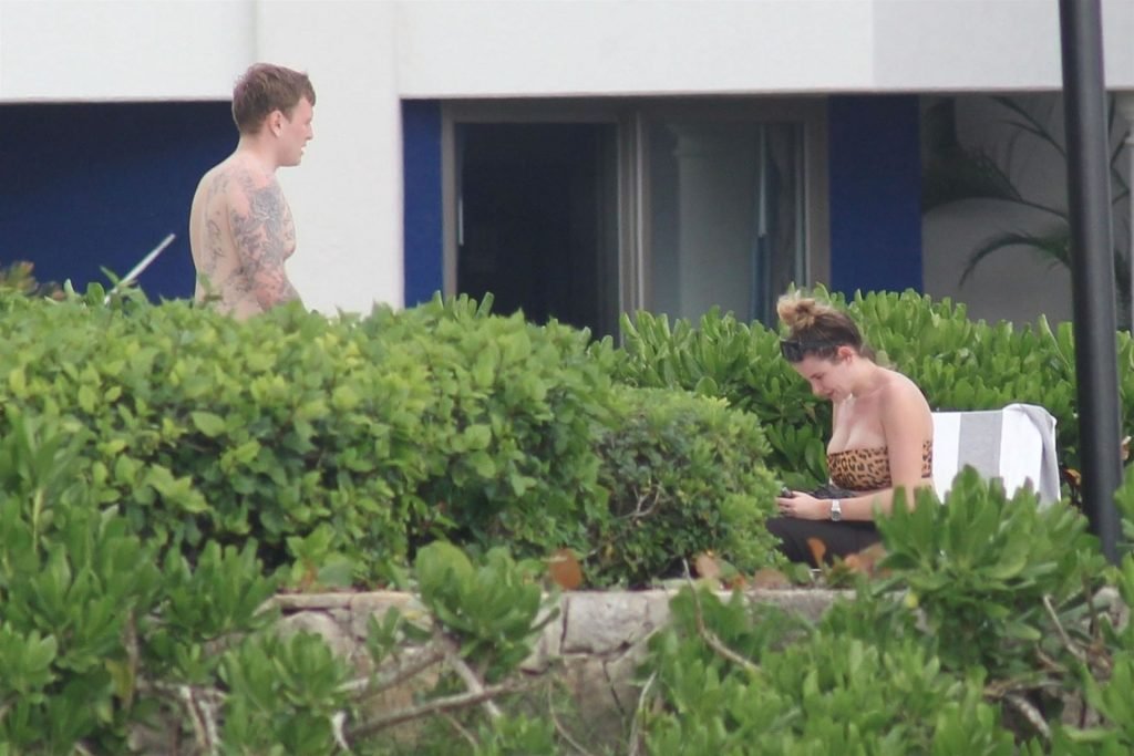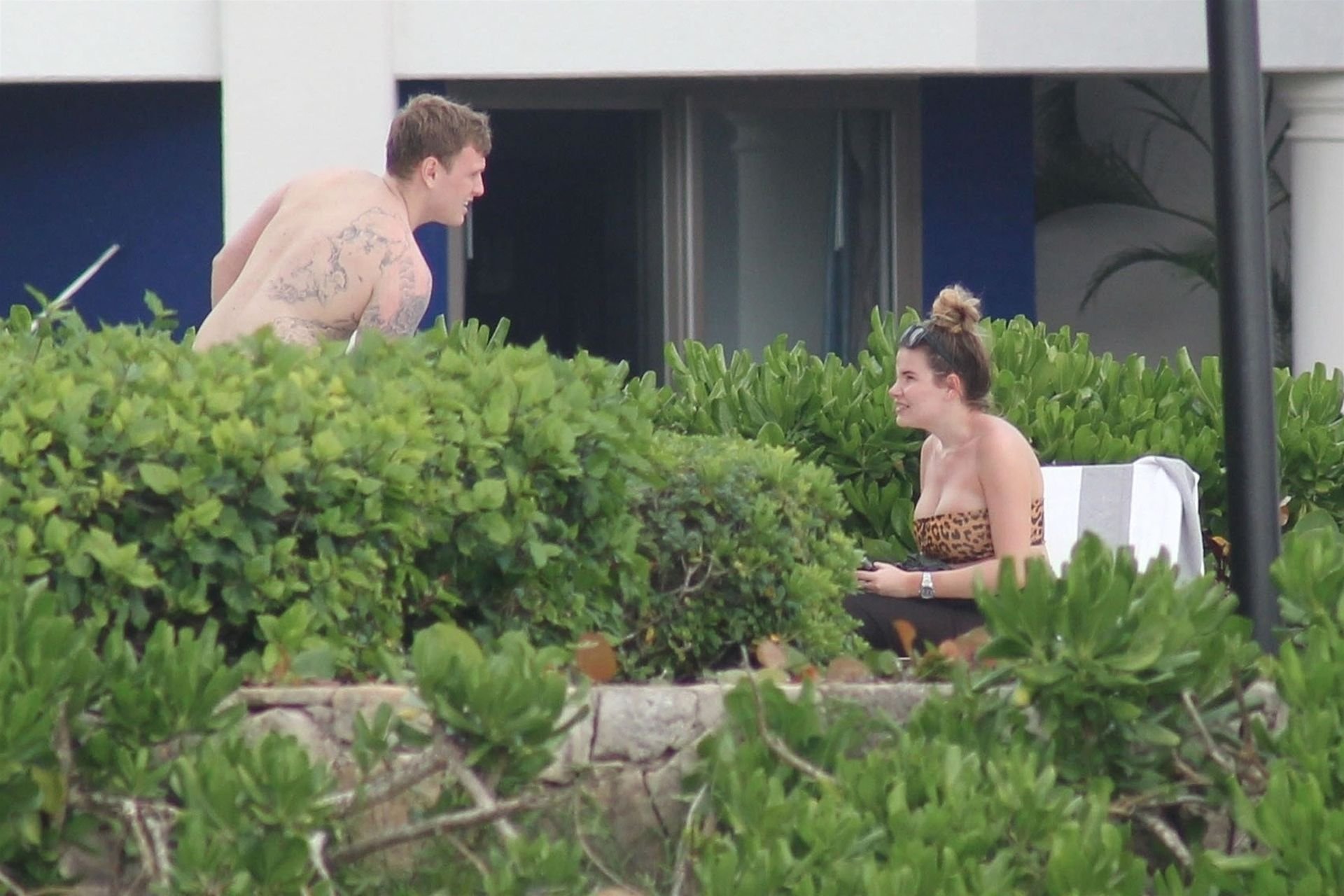 La estrella de TOWIE Georgia Kousoulou y su novio Tommy Mallet pasan el día tomando el sol en su hotel en Riviera Maya, México, 02/05/2019. Georgia lucía un bikini de estampado de leopardo mientras descansaba junto a la piscina.