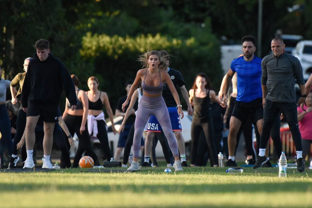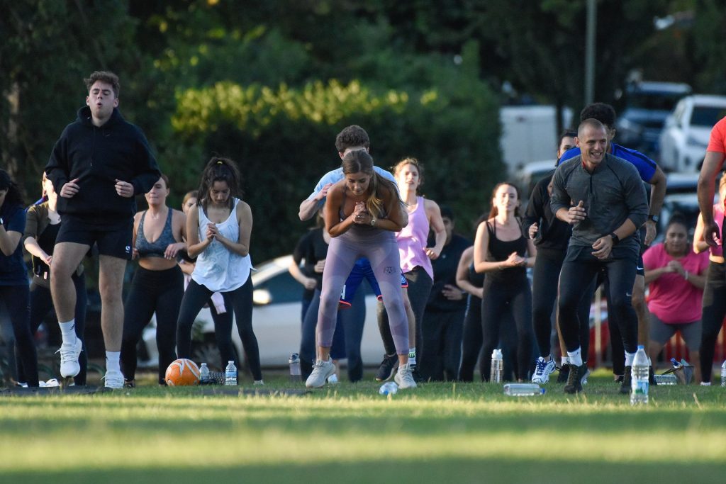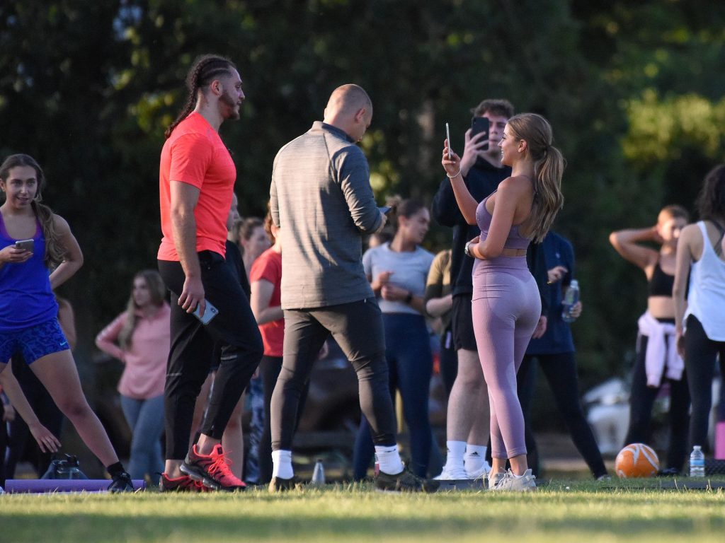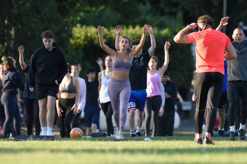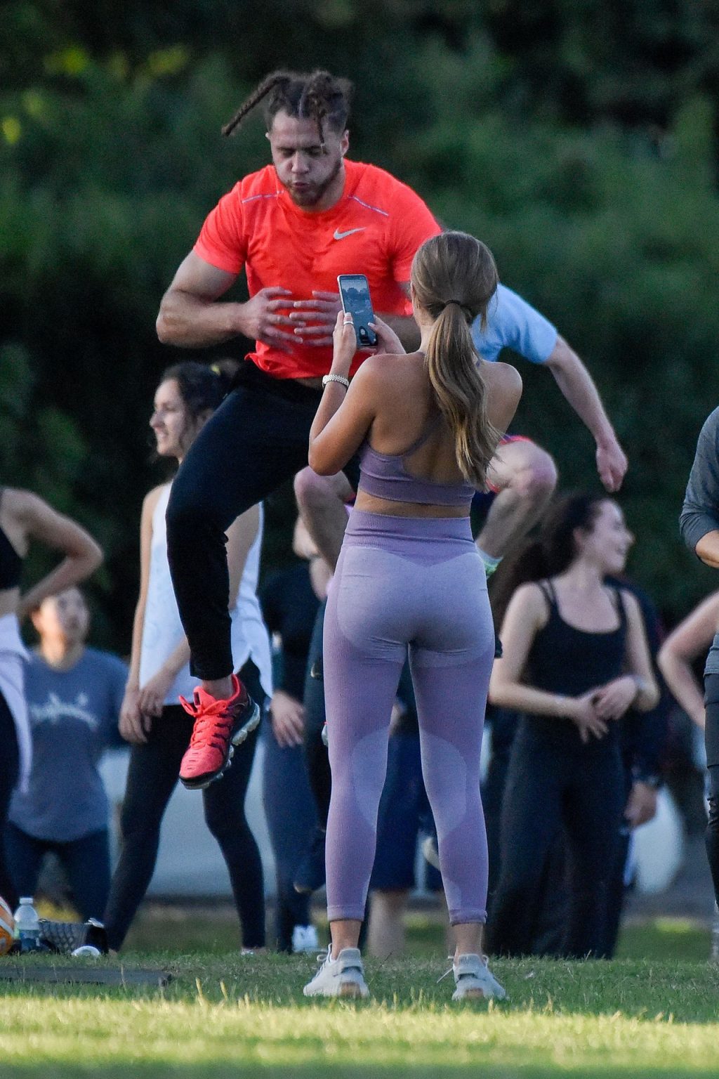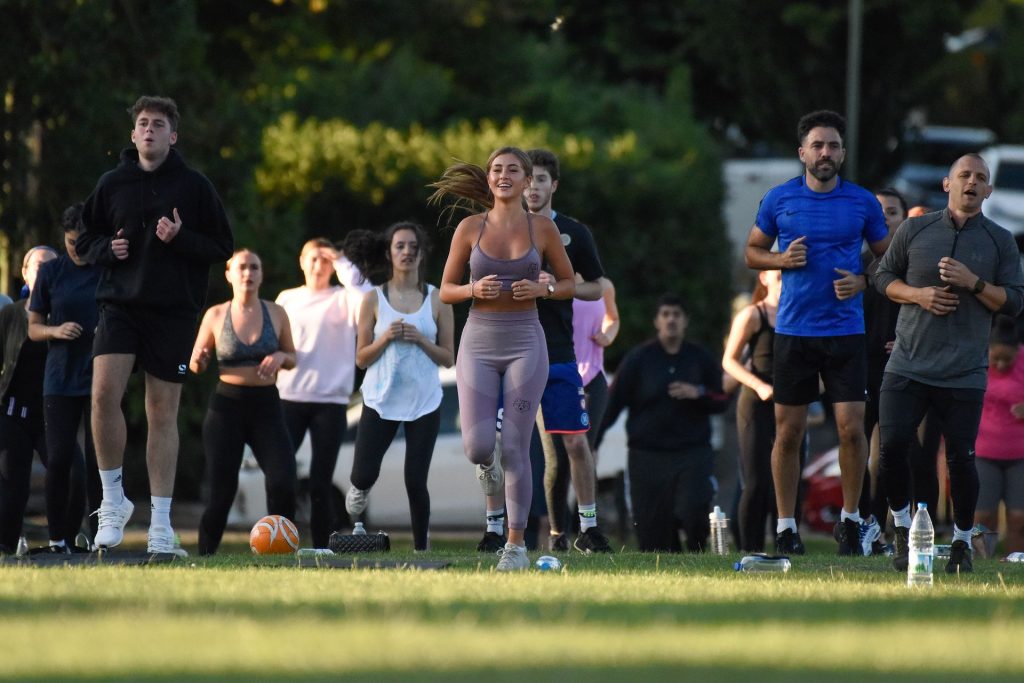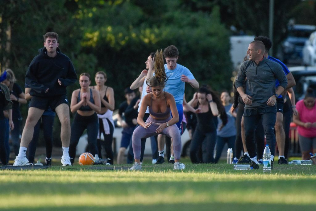 Georgia Steel de Love Island aparece sudando en una de las clases de fitness al aire libre más grandes del Reino Unido dirigidas por el entrenador famoso Yusef Bouattoura y PRO.PT en Mill Hill Park esta noche con más de 100 personas participando en este evento semanal gratuito que se realiza a las 7:30 pm cada semana.