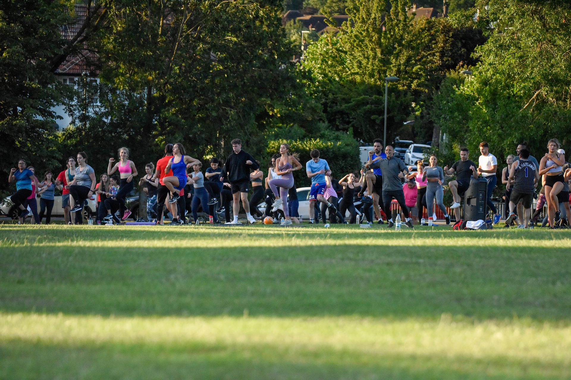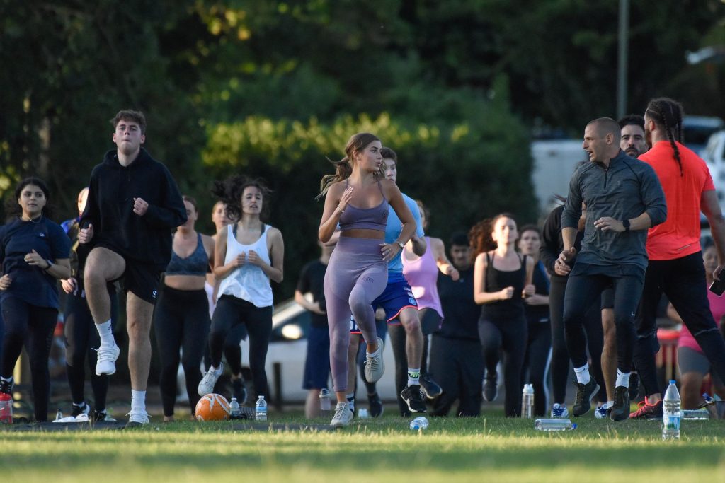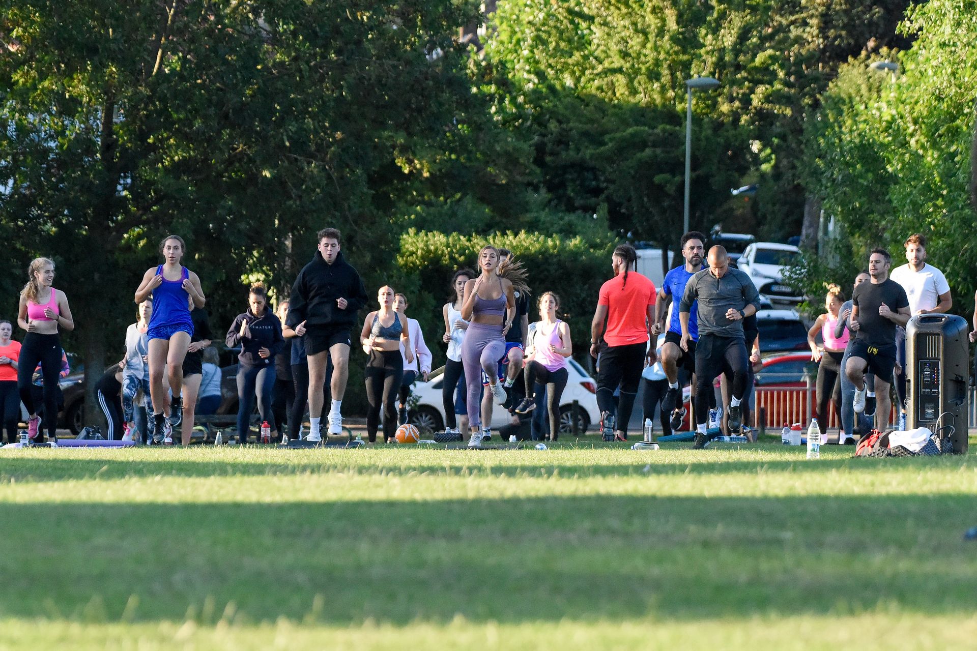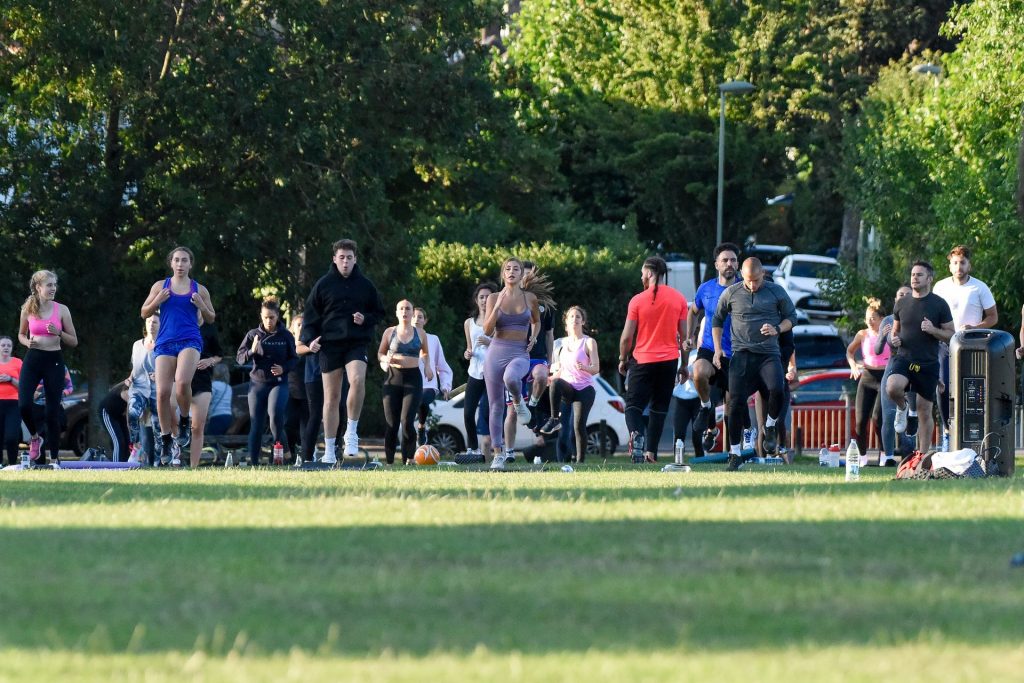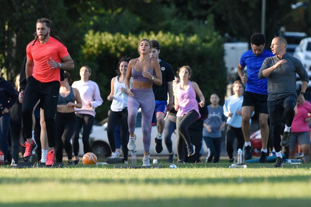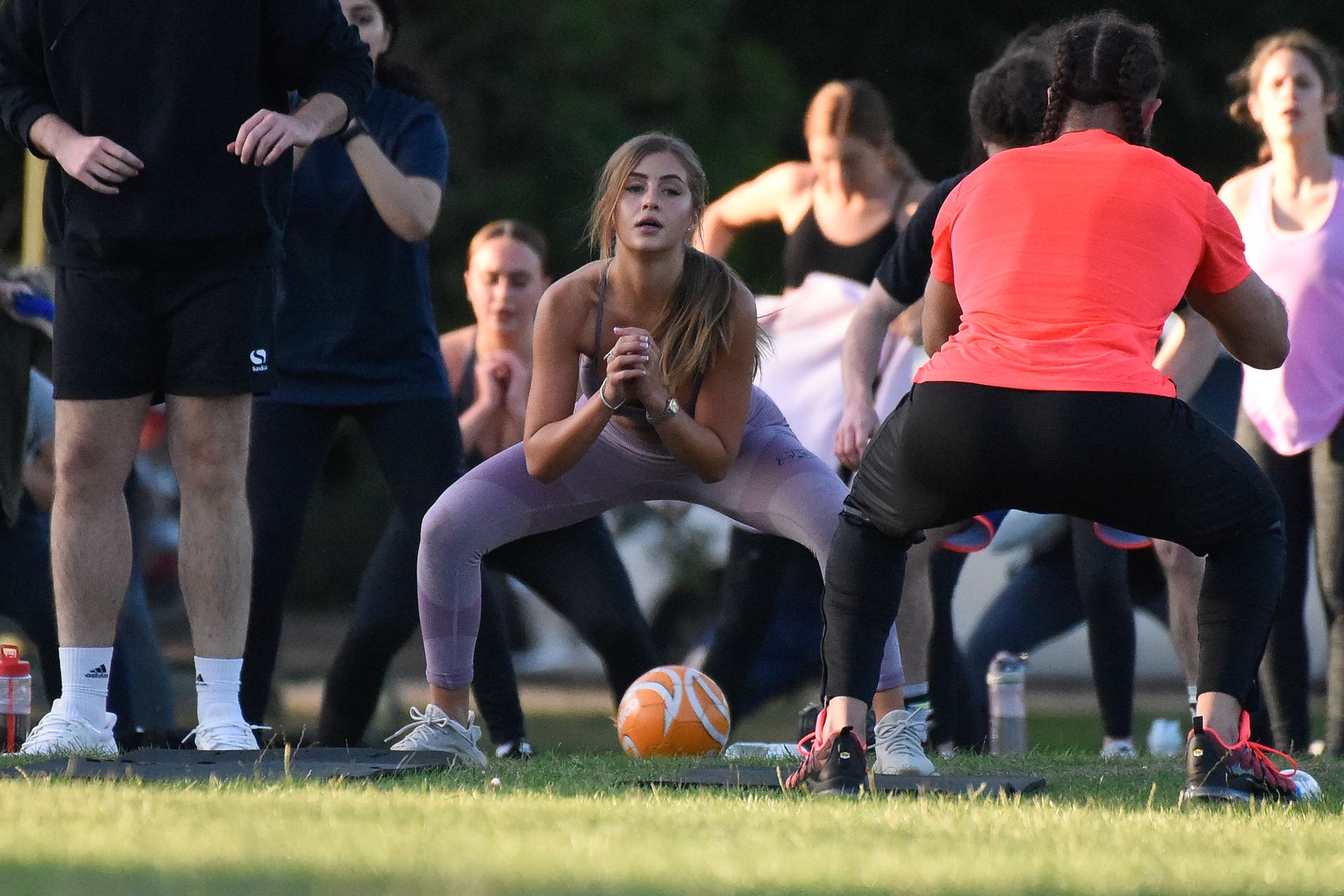 Georgia Steel de Love Island aparece sudando en una de las clases de fitness al aire libre más grandes del Reino Unido dirigidas por el entrenador famoso Yusef Bouattoura y PRO.PT en Mill Hill Park esta noche con más de 100 personas participando en este evento semanal gratuito que se realiza a las 7:30 pm cada semana.