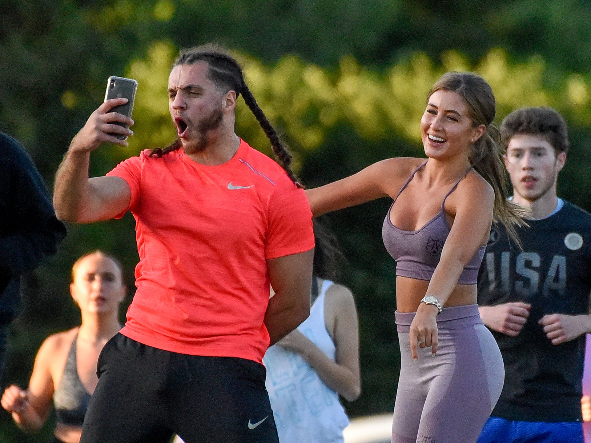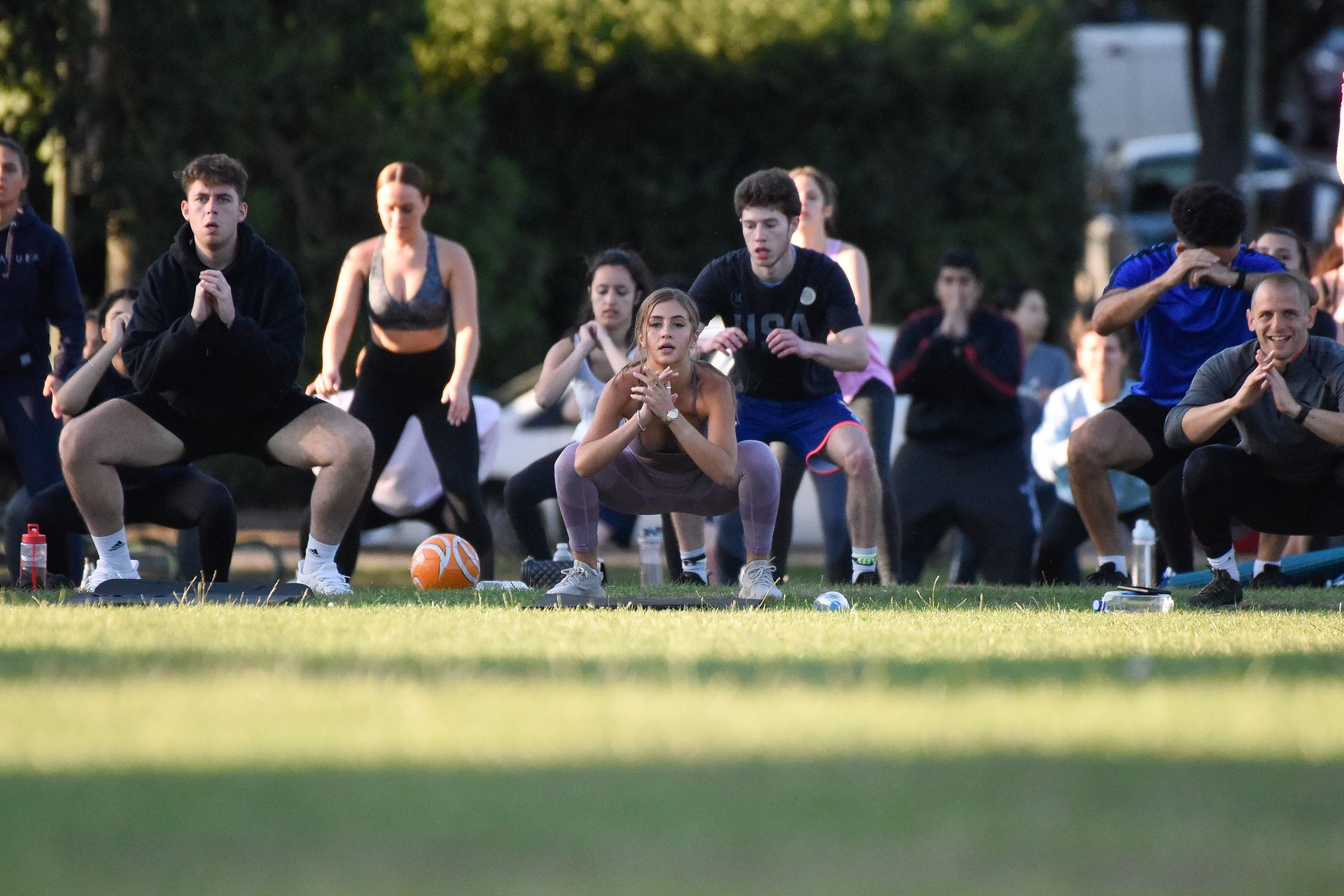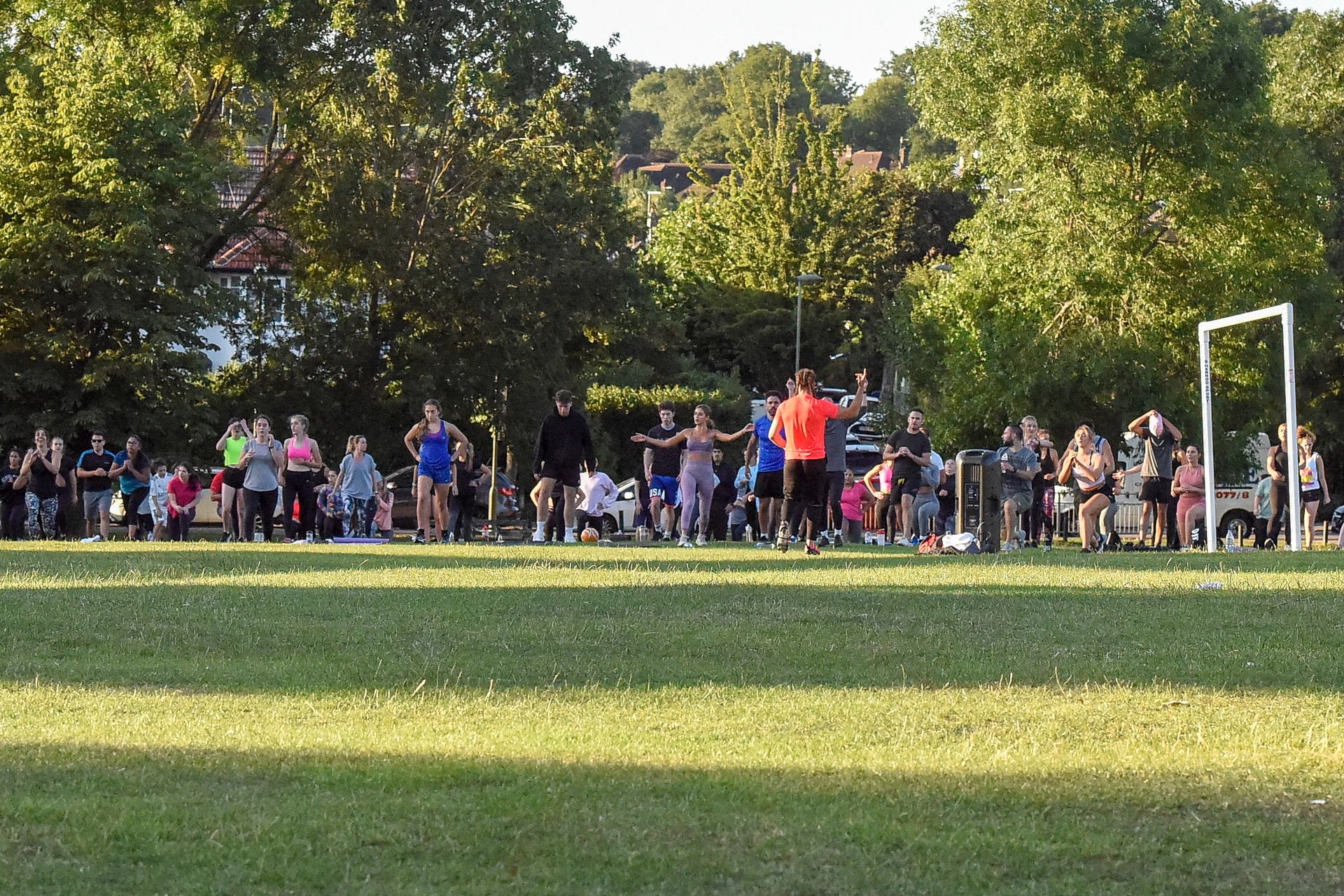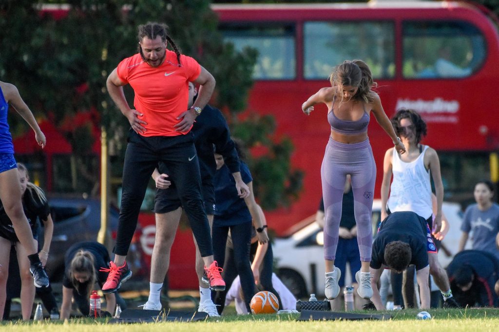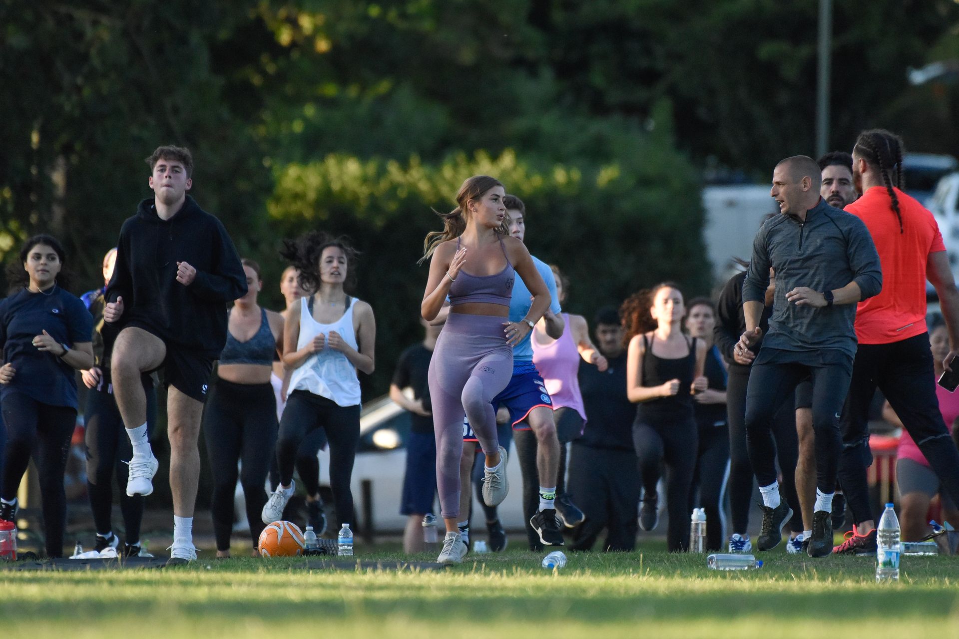 Georgia Steel de Love Island aparece sudando en una de las clases de fitness al aire libre más grandes del Reino Unido dirigidas por el entrenador famoso Yusef Bouattoura y PRO.PT en Mill Hill Park esta noche con más de 100 personas participando en este evento semanal gratuito que se realiza a las 7:30 pm cada semana.
