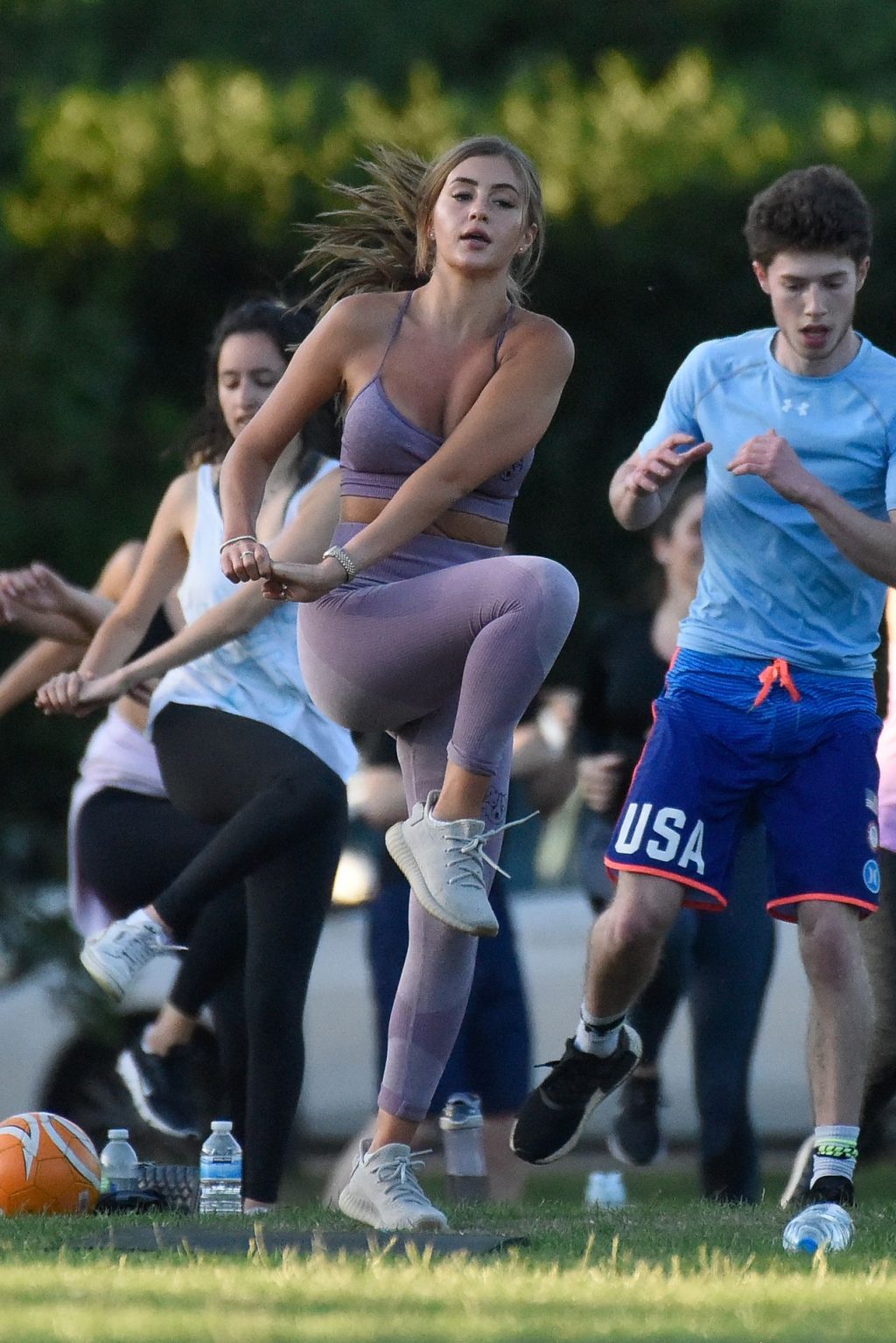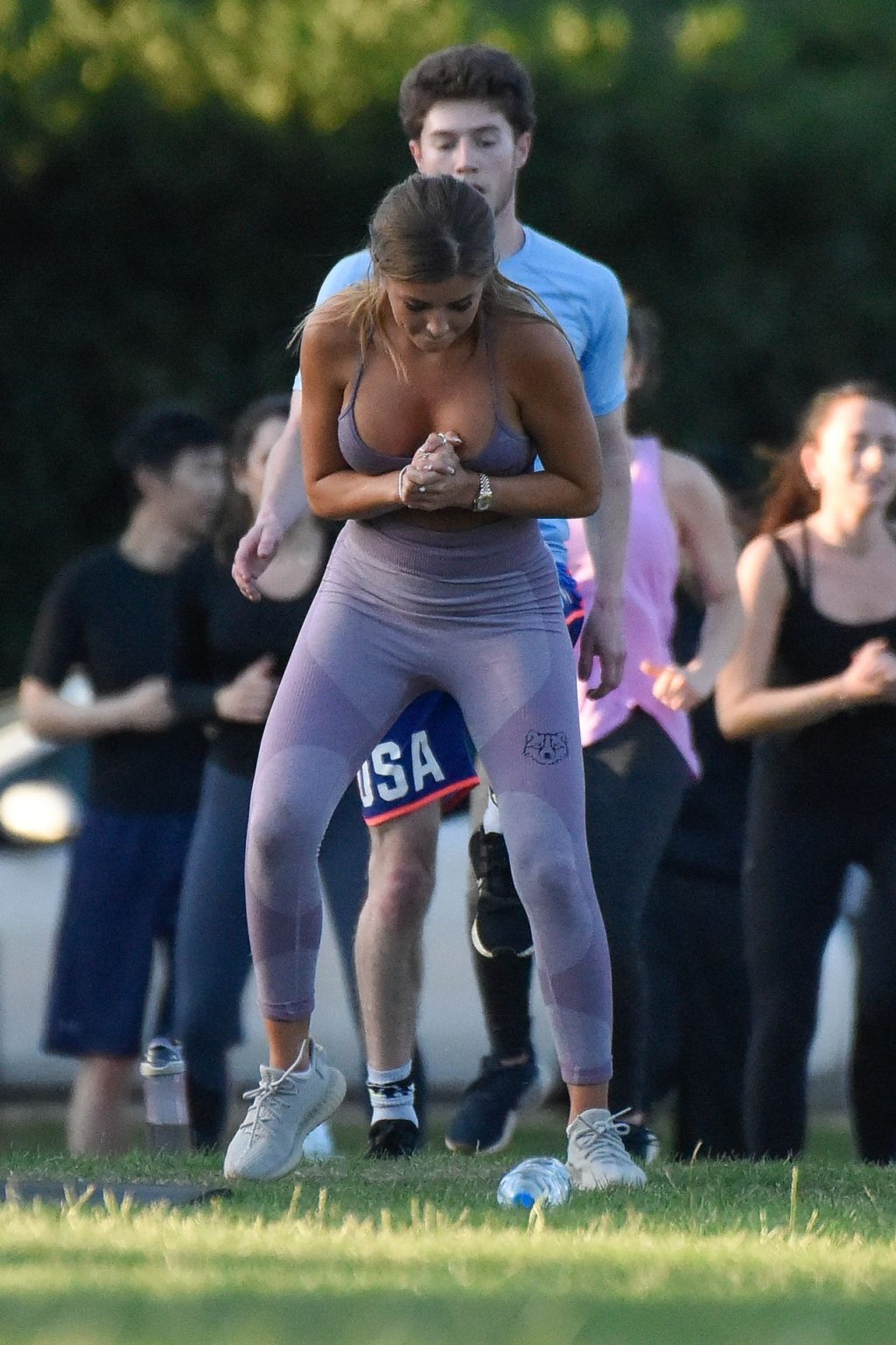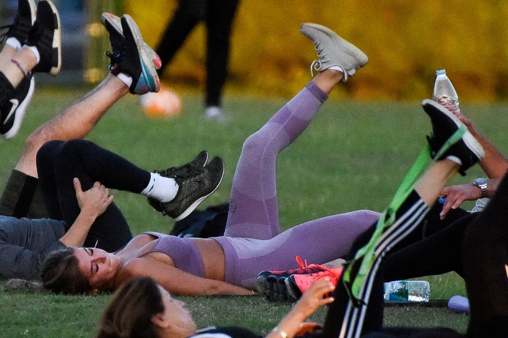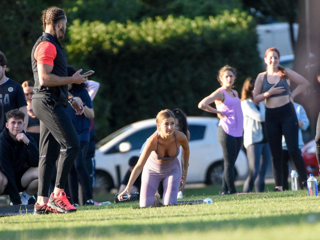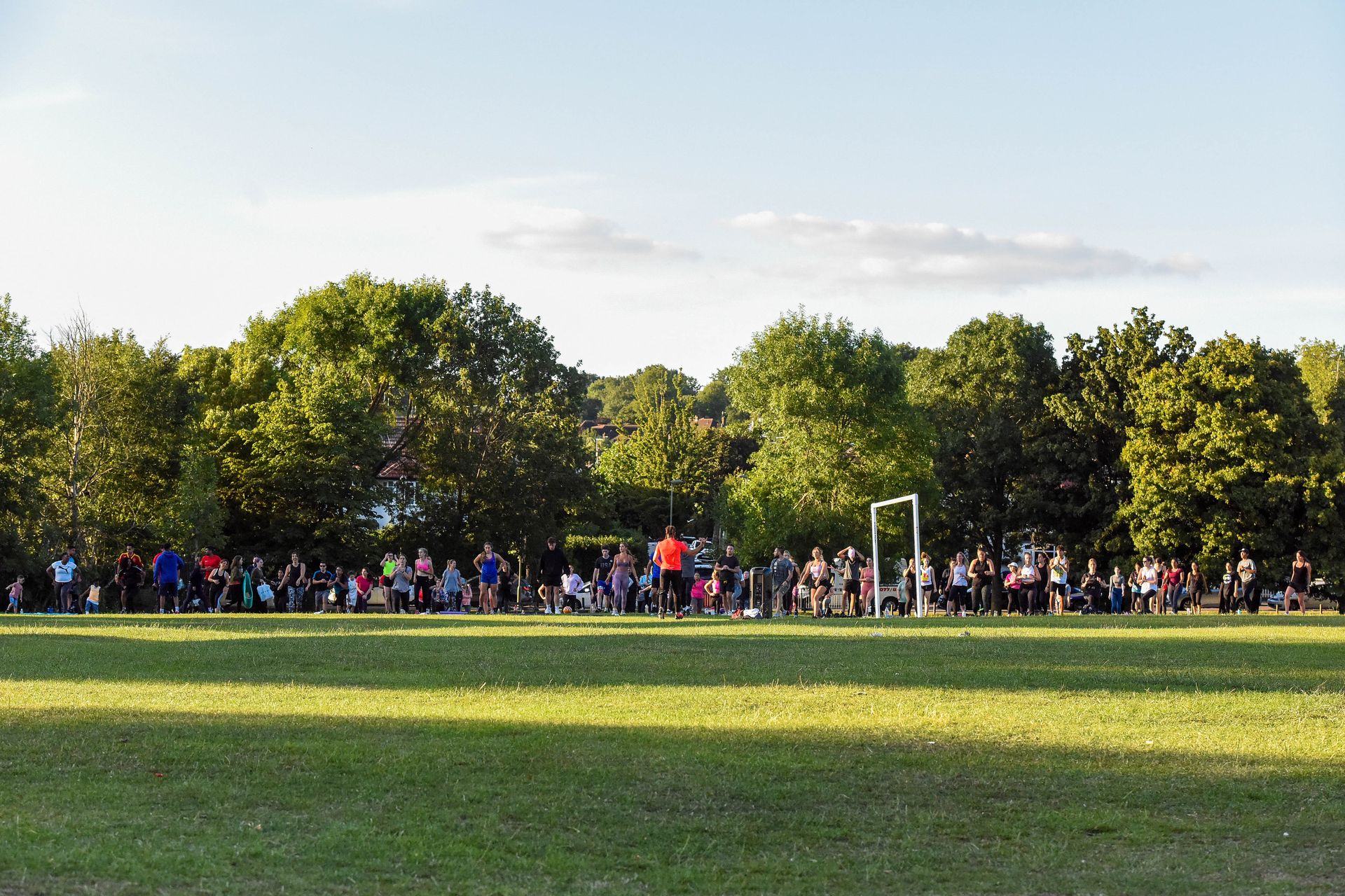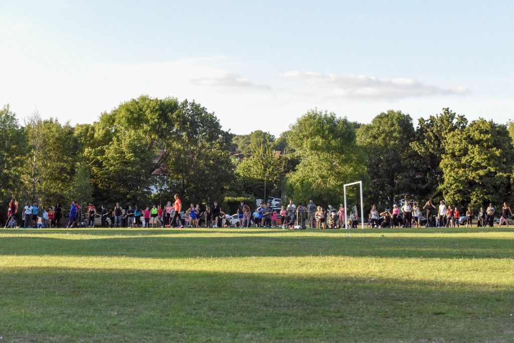 Georgia Steel de Love Island aparece sudando en una de las clases de fitness al aire libre más grandes del Reino Unido dirigidas por el entrenador famoso Yusef Bouattoura y PRO.PT en Mill Hill Park esta noche con más de 100 personas participando en este evento semanal gratuito que se realiza a las 7:30 pm cada semana.