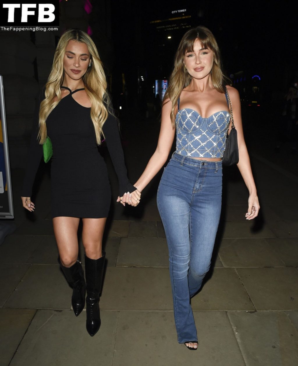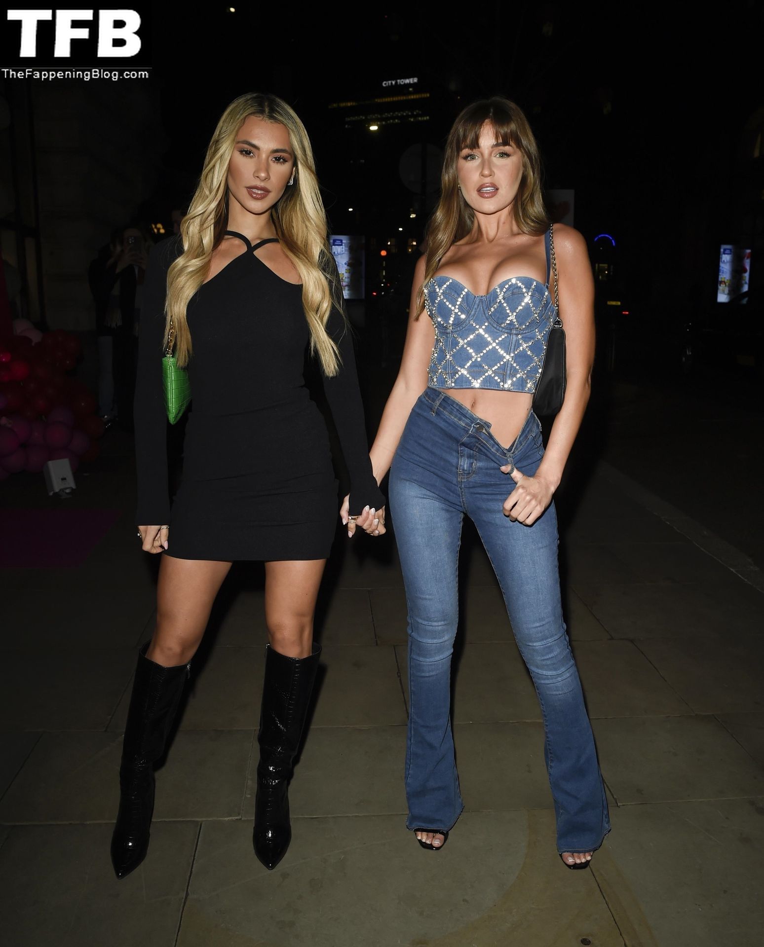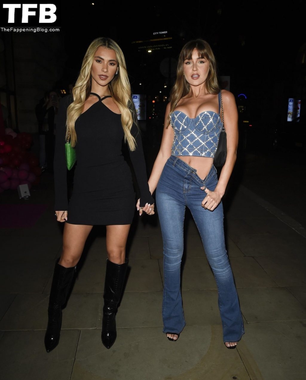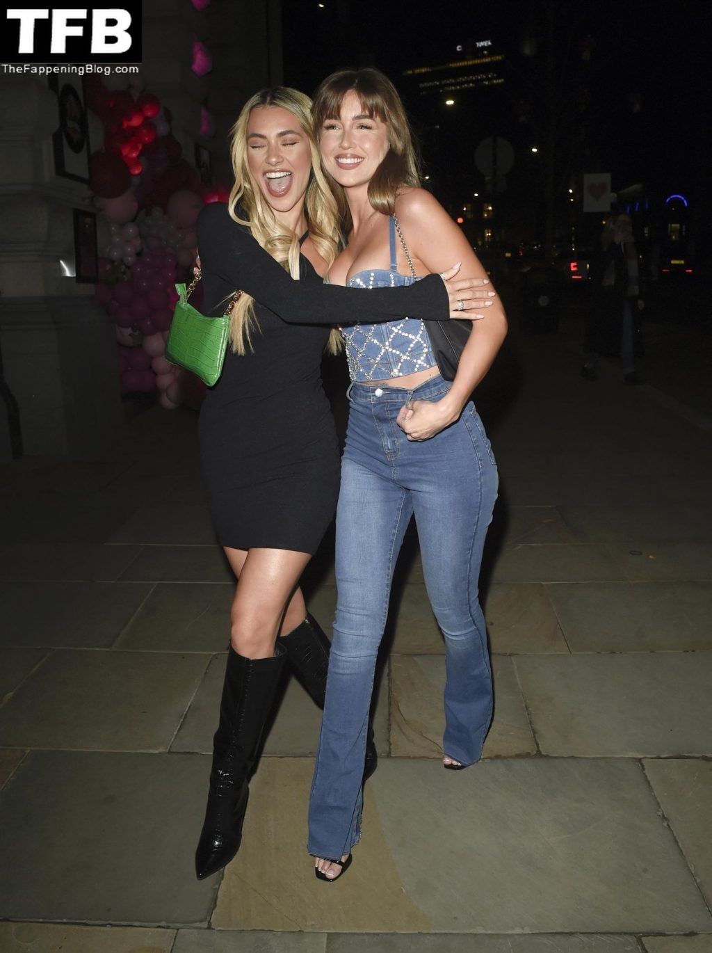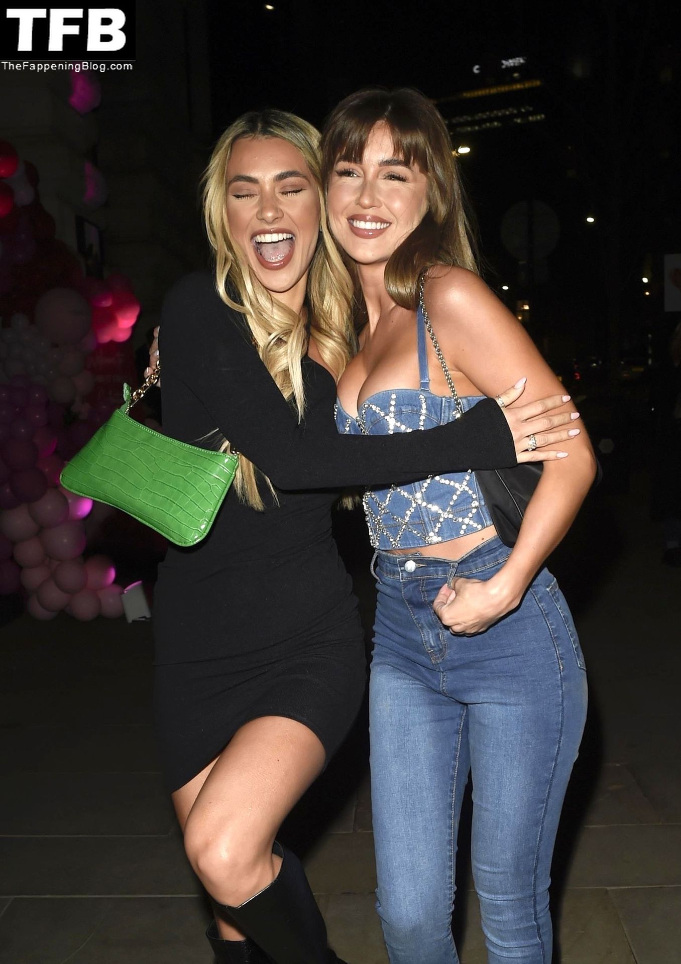 Love Island’s Georgia Steel y Joanna Chimonides son vistas llegando al Galentine’s “I Saw It First” en L Antica De Michele en Manchester, 02/03/2022.