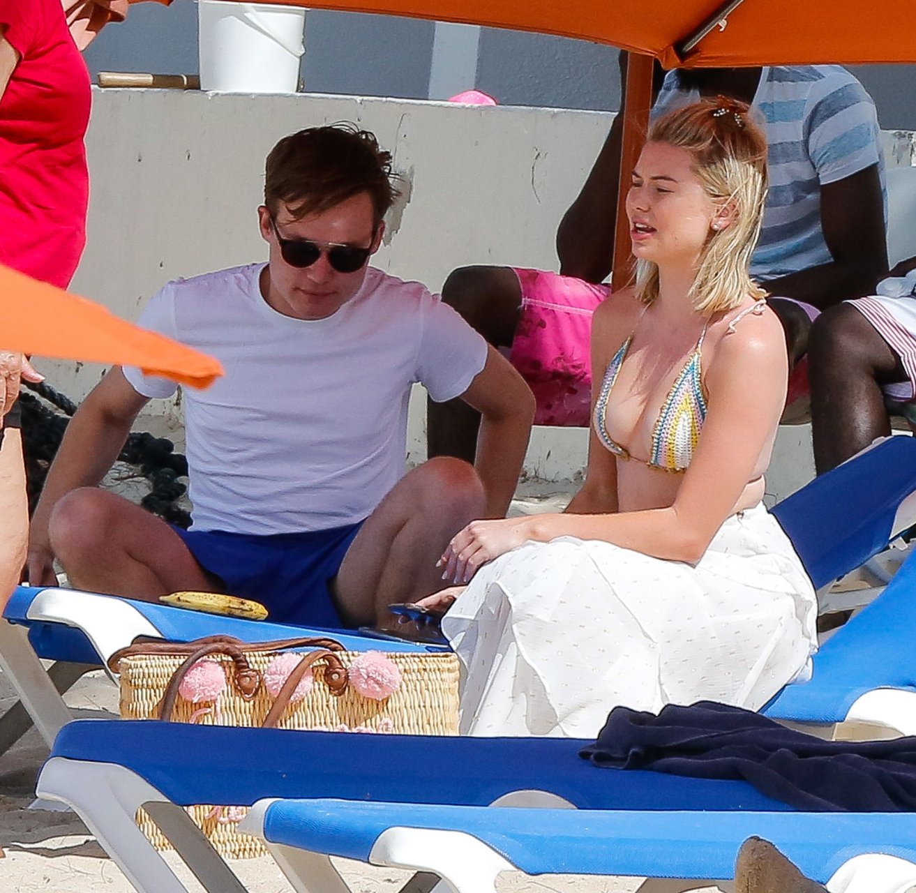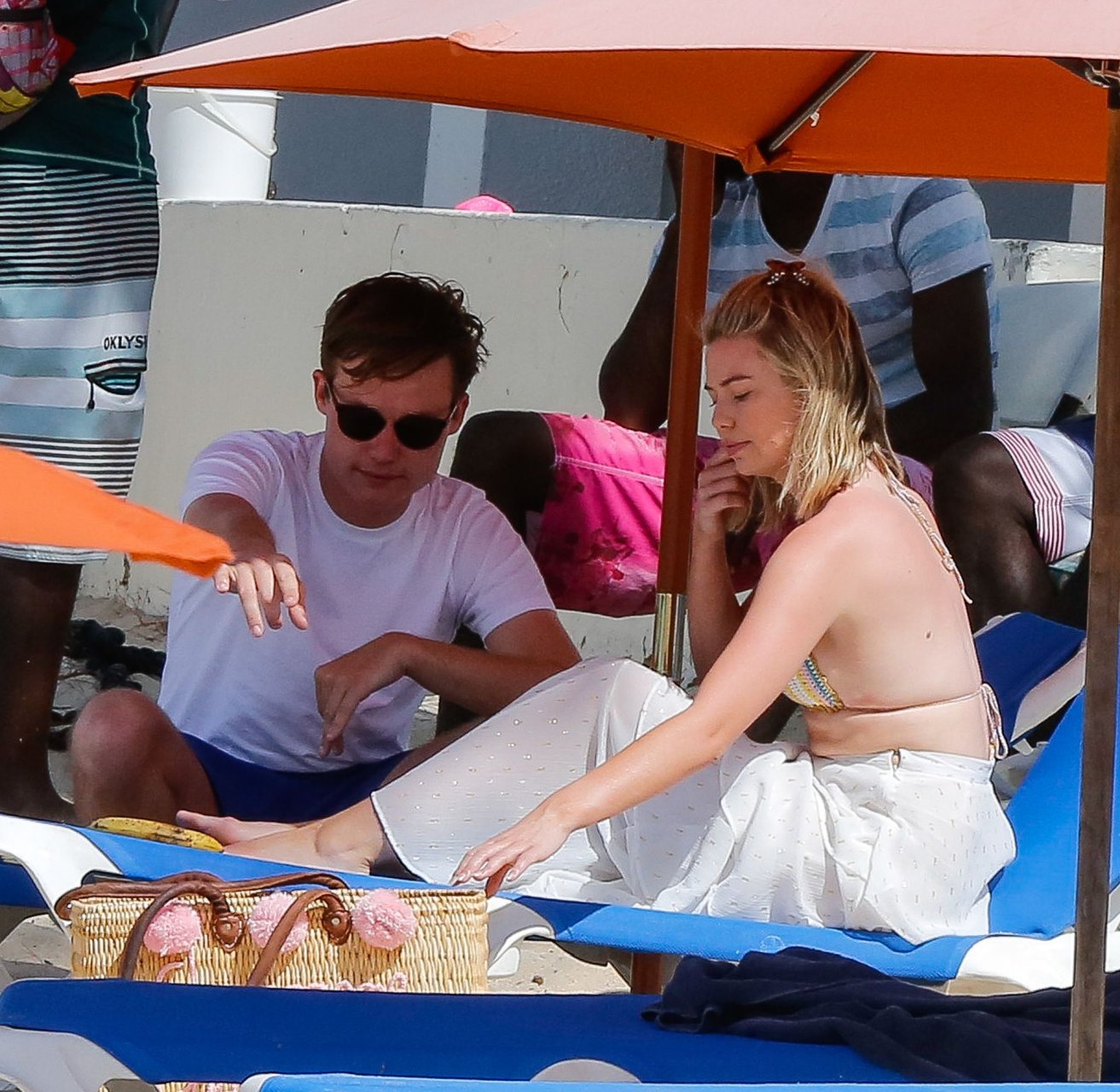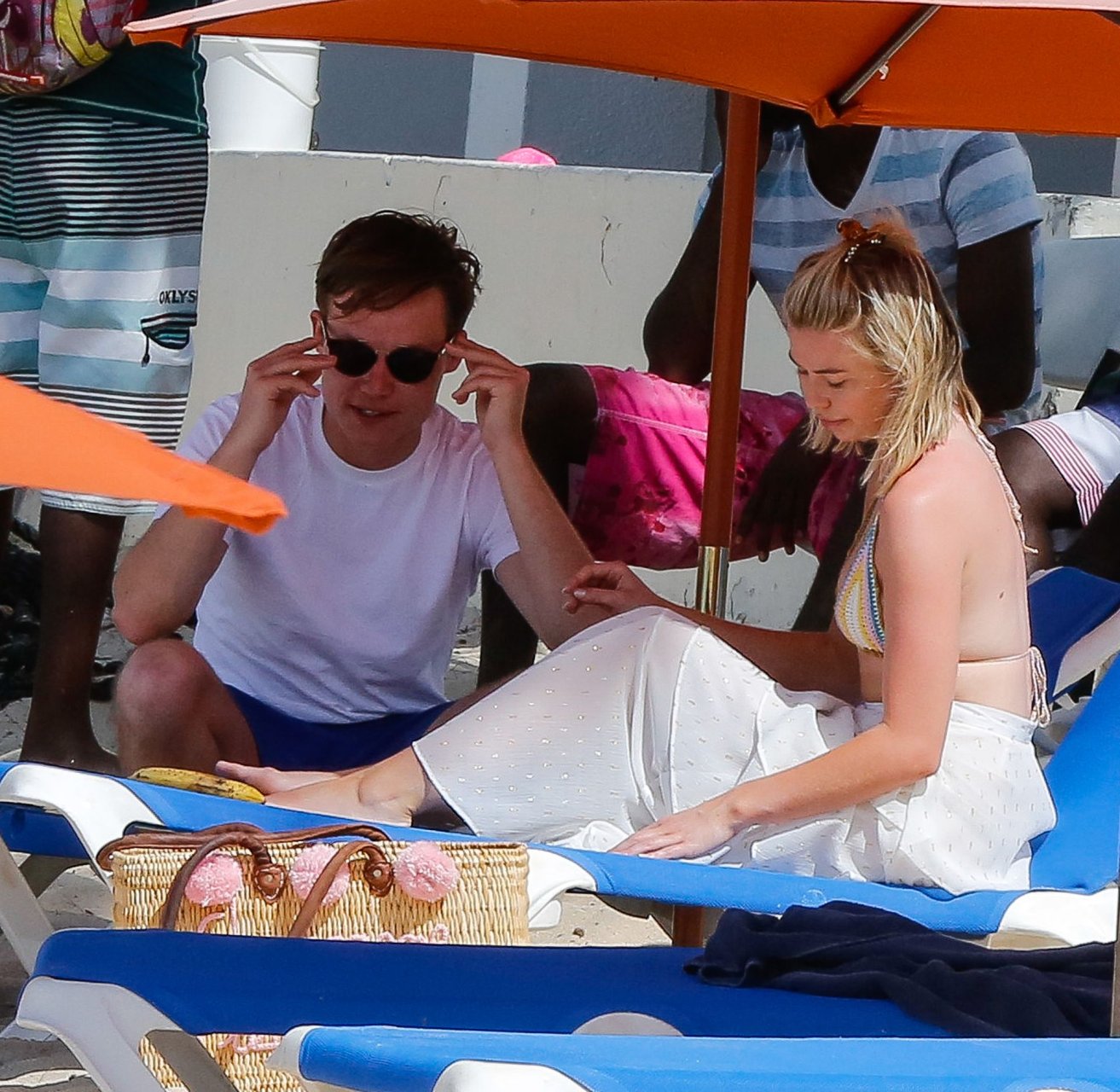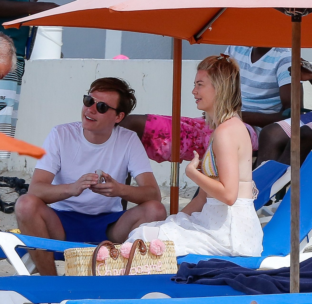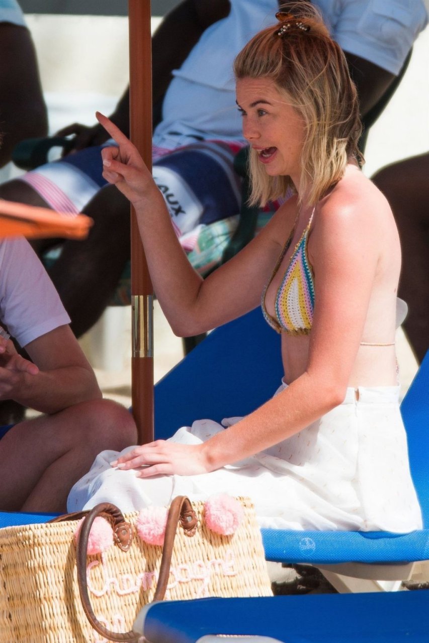 Sexy rubia Georgia “Toff” Toffolo, Reina de la Jungla, es vista en la playa con un top de bikini y una falda fluida mientras está de vacaciones en Barbados, 01/11/2019.