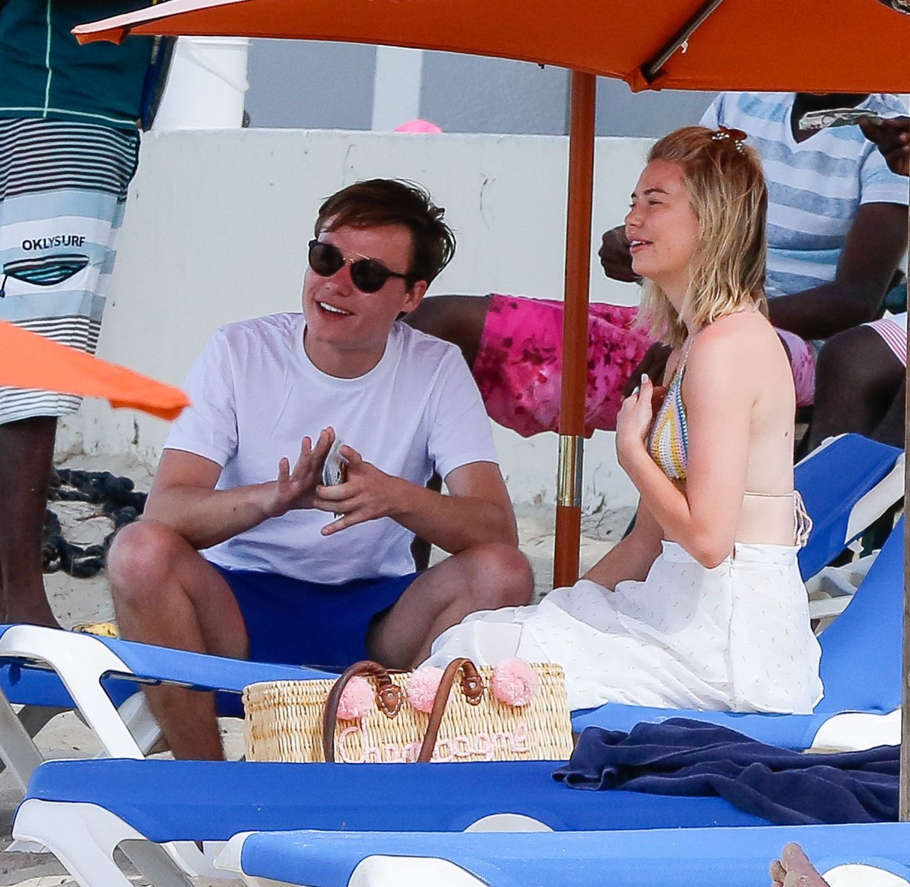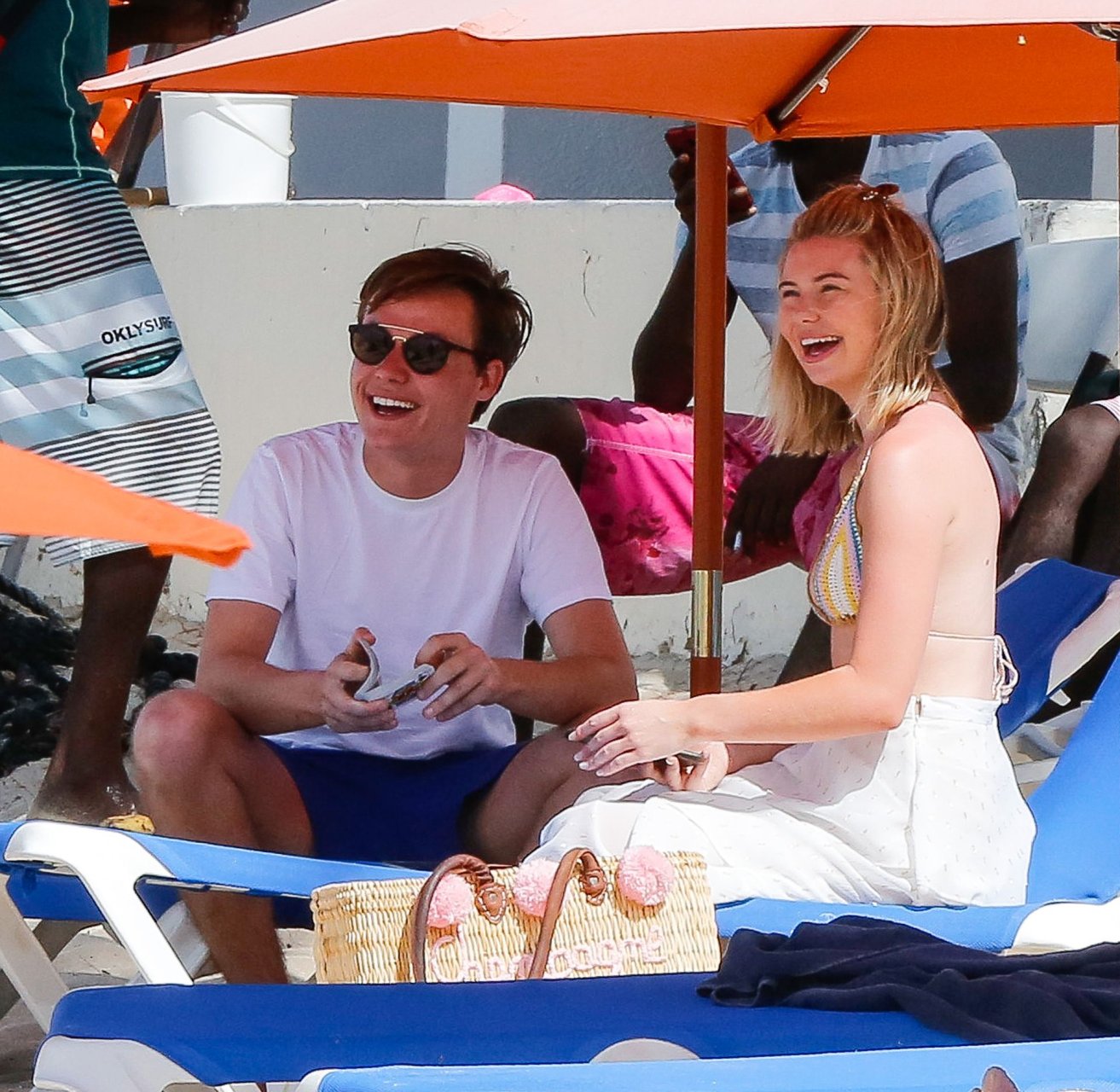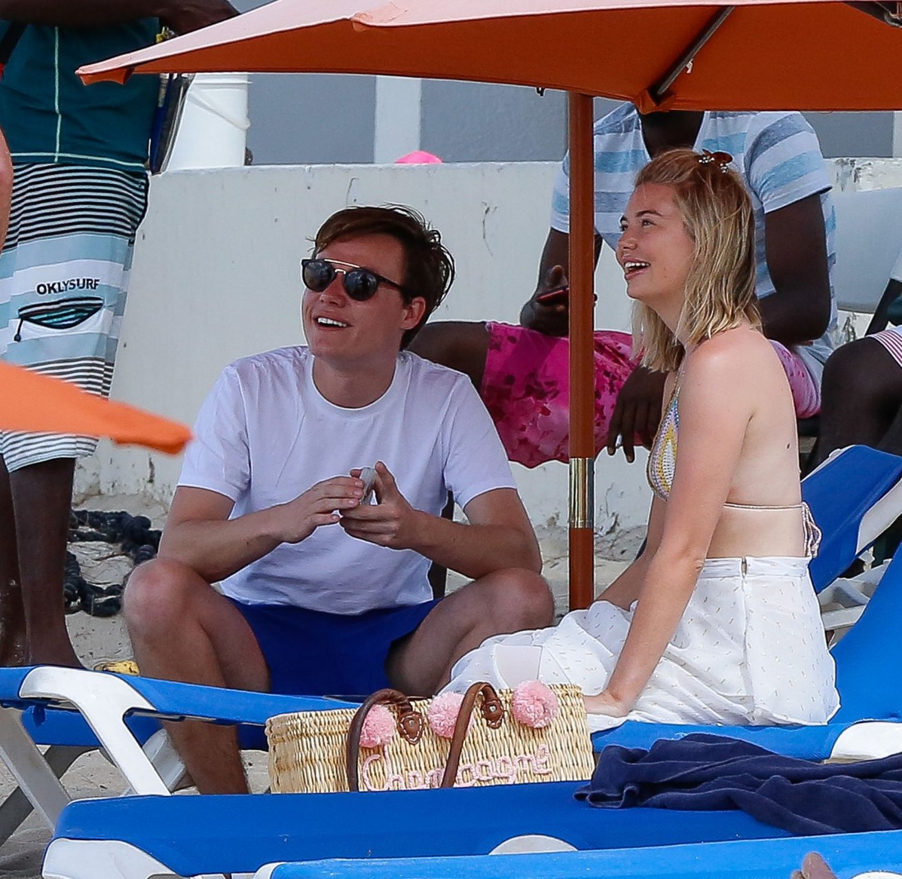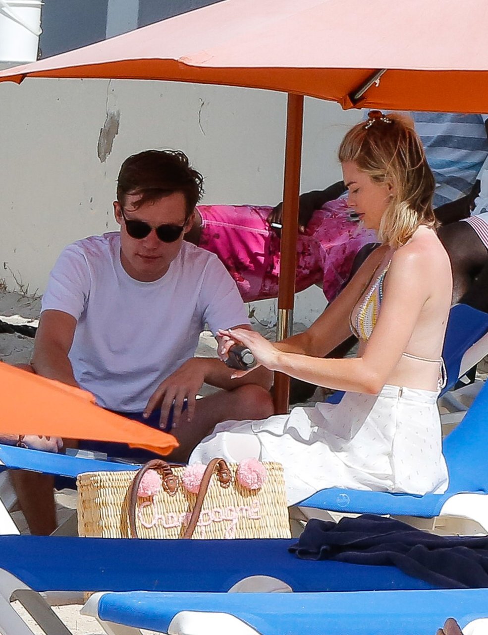 Sexy rubia Georgia “Toff” Toffolo, Reina de la Jungla, es vista en la playa con un top de bikini y una falda fluida mientras está de vacaciones en Barbados, 01/11/2019.