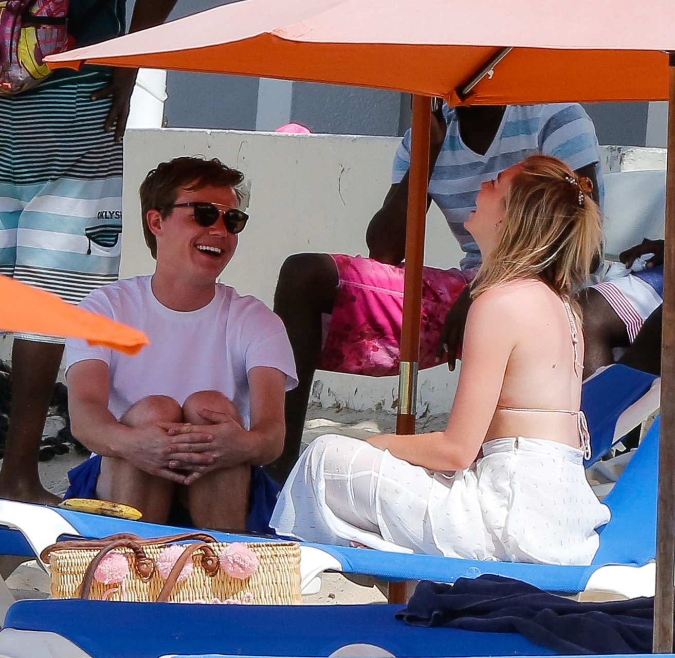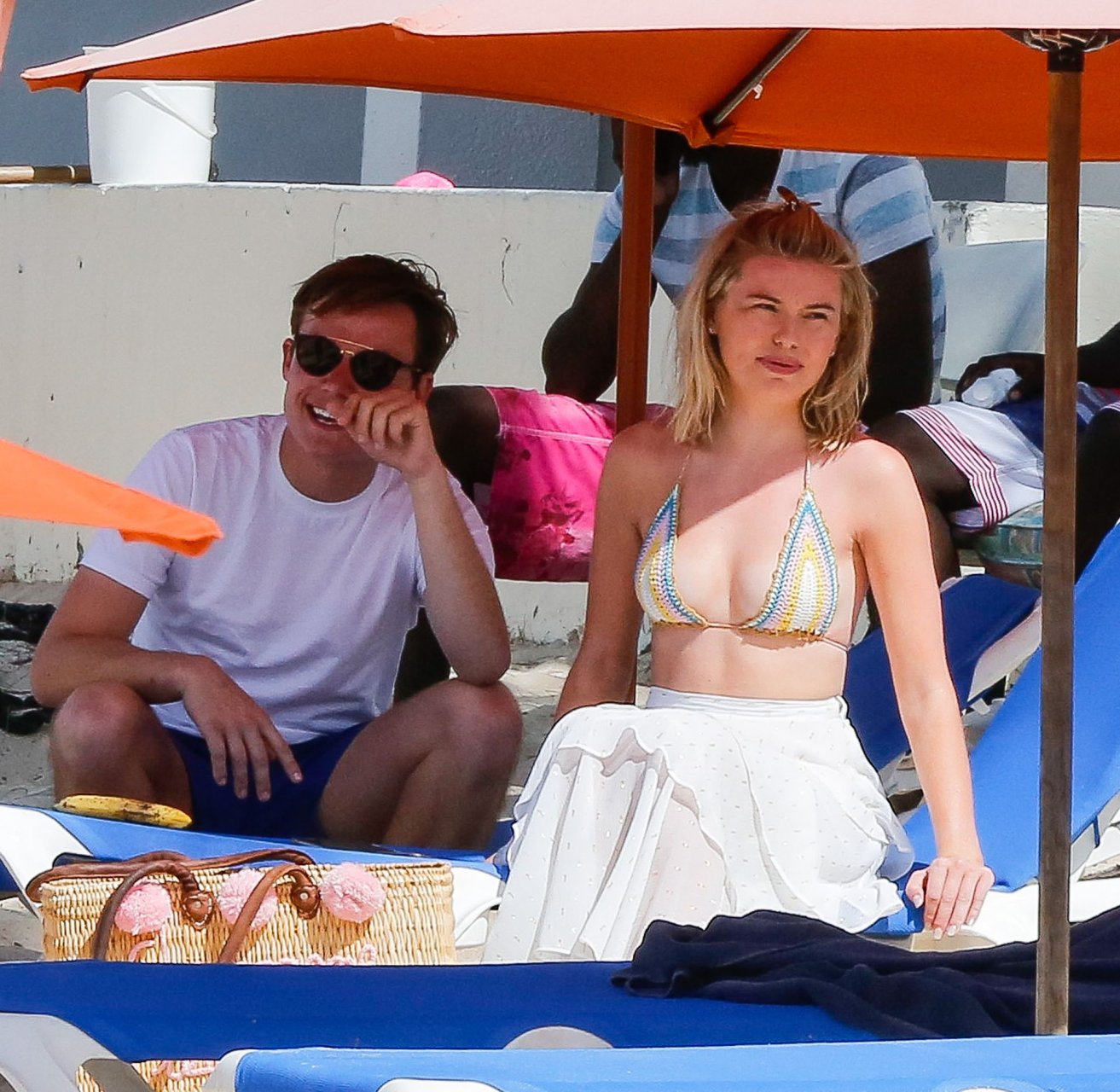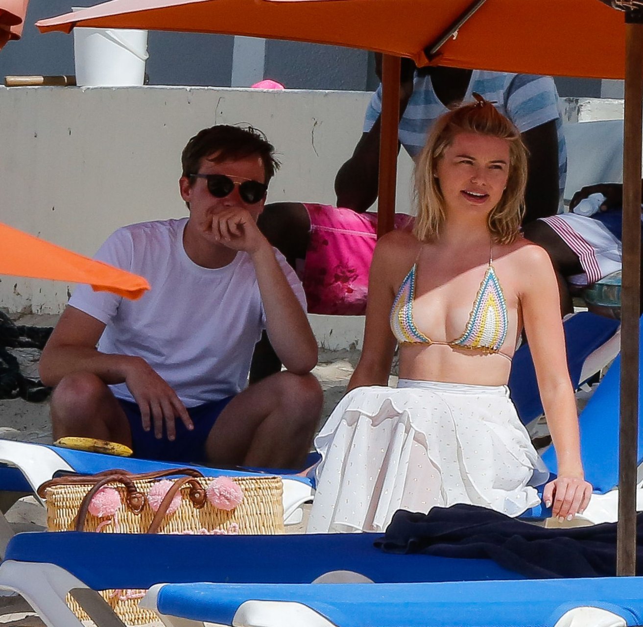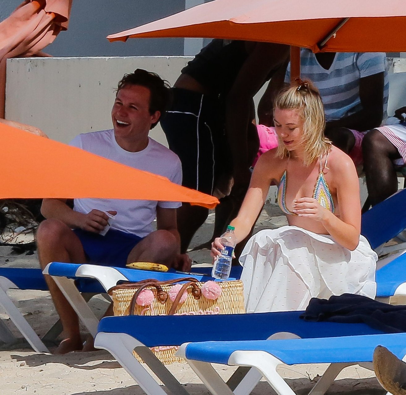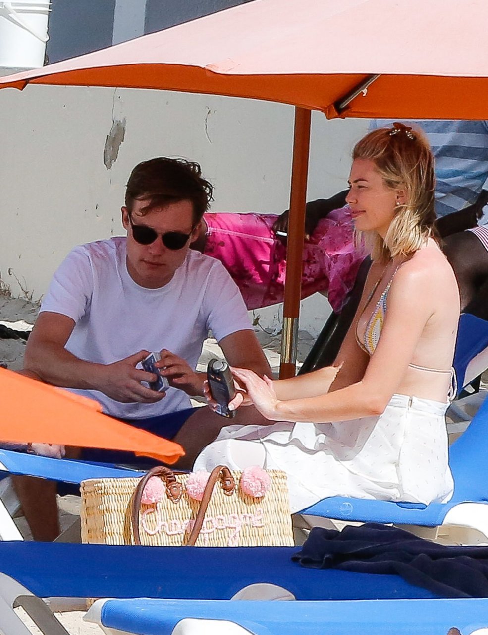 Sexy rubia Georgia “Toff” Toffolo, Reina de la Jungla, es vista en la playa con un top de bikini y una falda fluida mientras está de vacaciones en Barbados, 01/11/2019.
