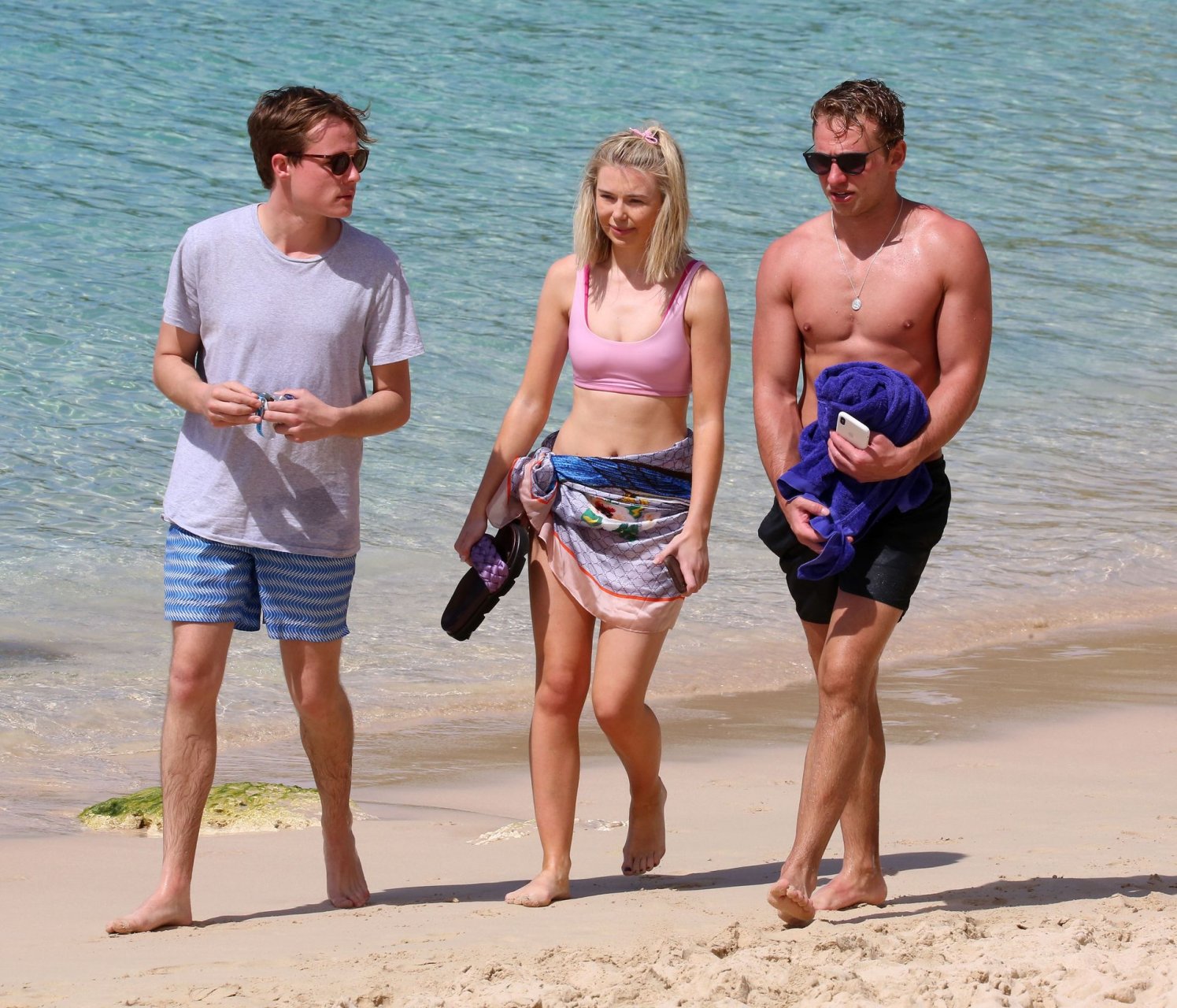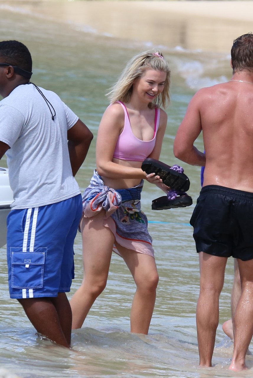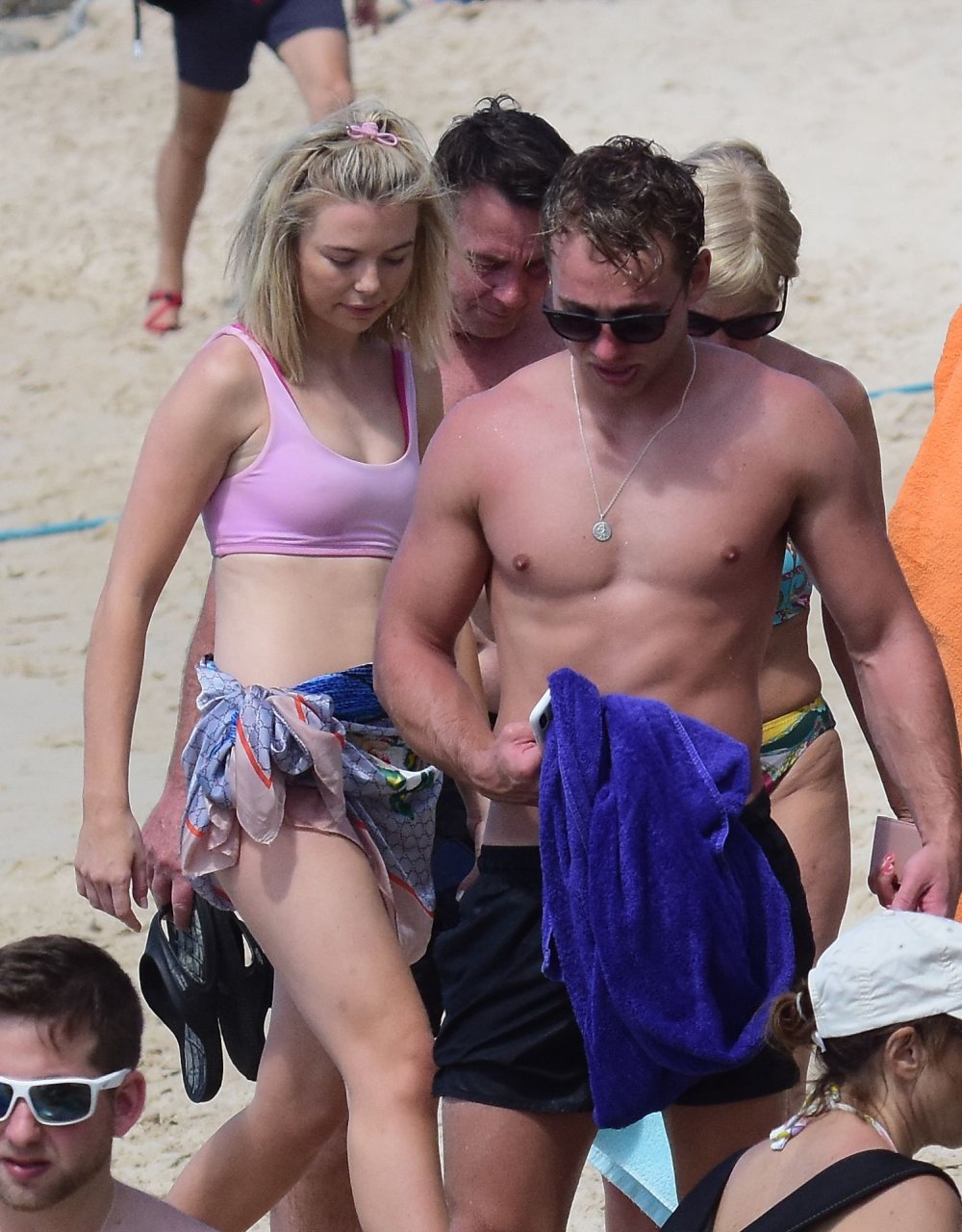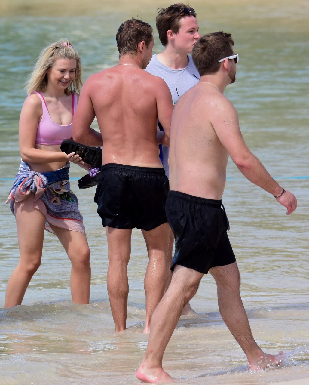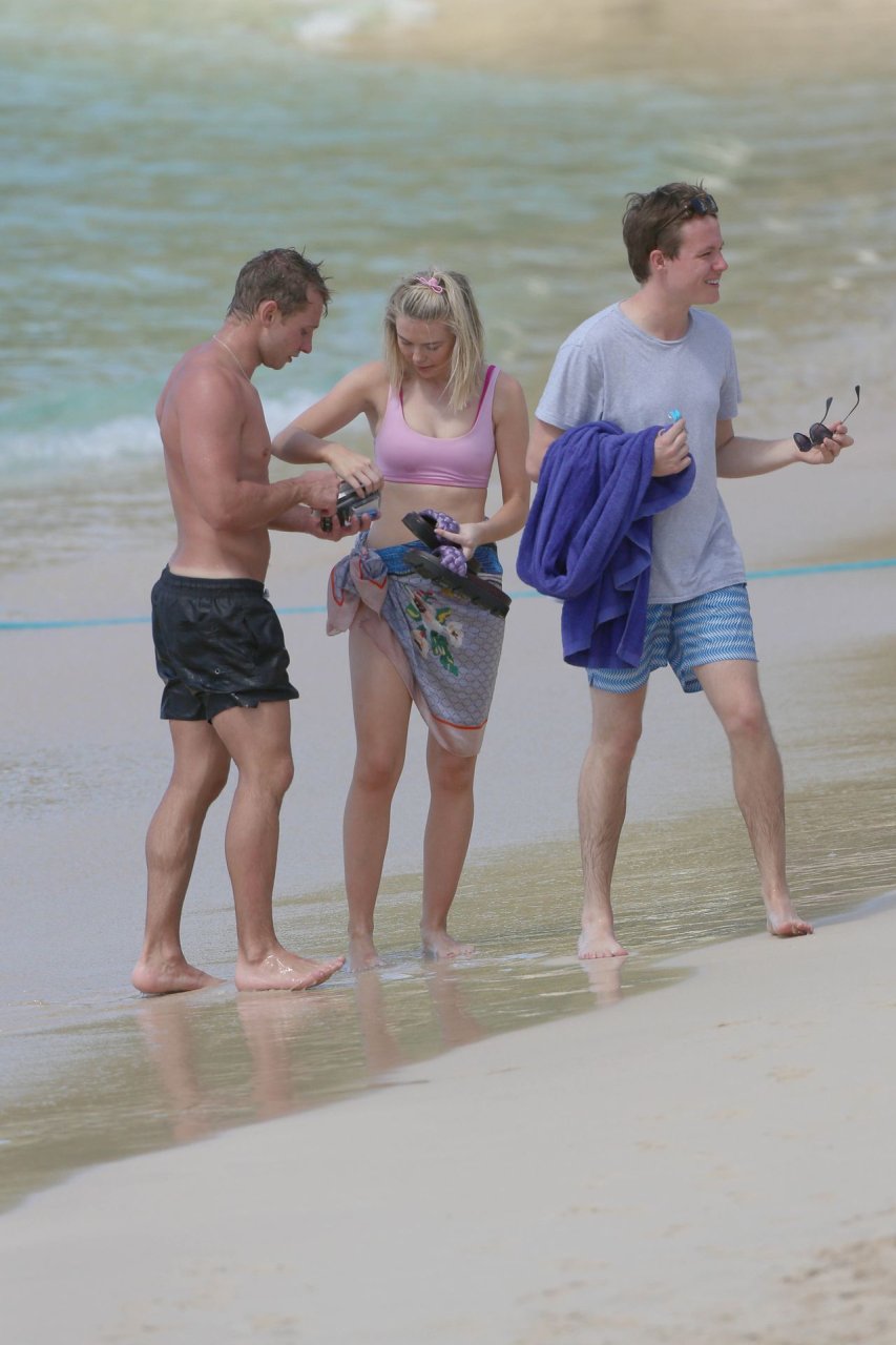 Georgia Toffolo (24) se la ve disfrutando del sol con un bikini rosa y posando felizmente con un fan para fotos en la playa de Barbados, 01/08/2019.