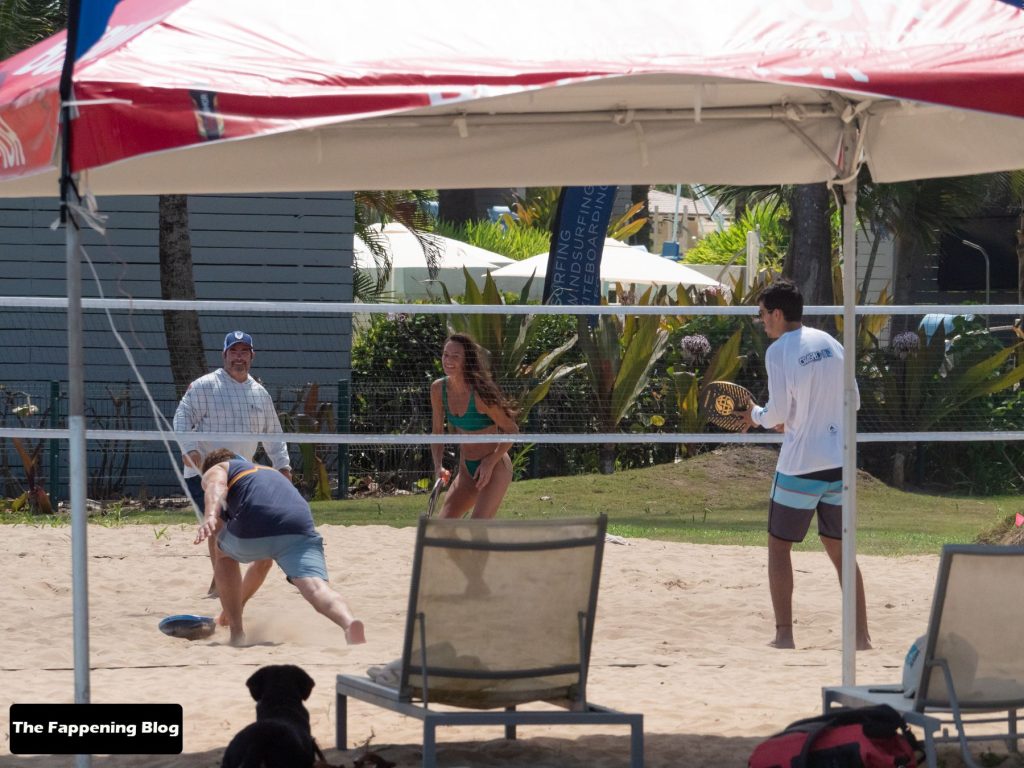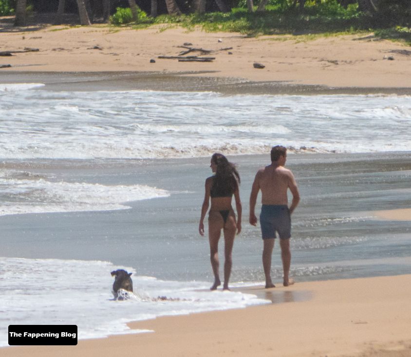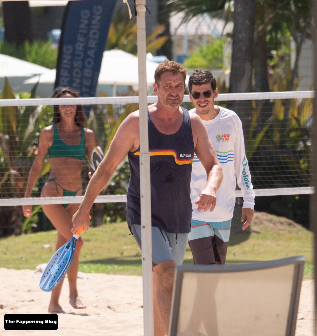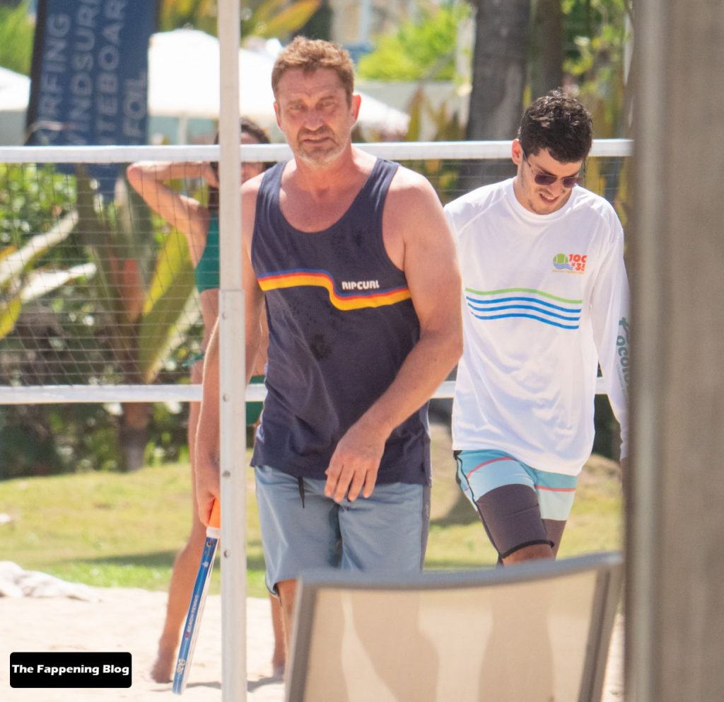 El actor de 51 años y su pareja en bikini dieron un paseo romántico por la orilla del mar, antes de que Butler jugara algunos juegos con amigos.