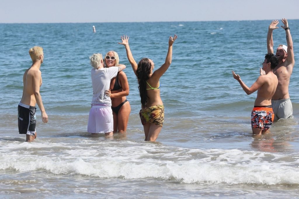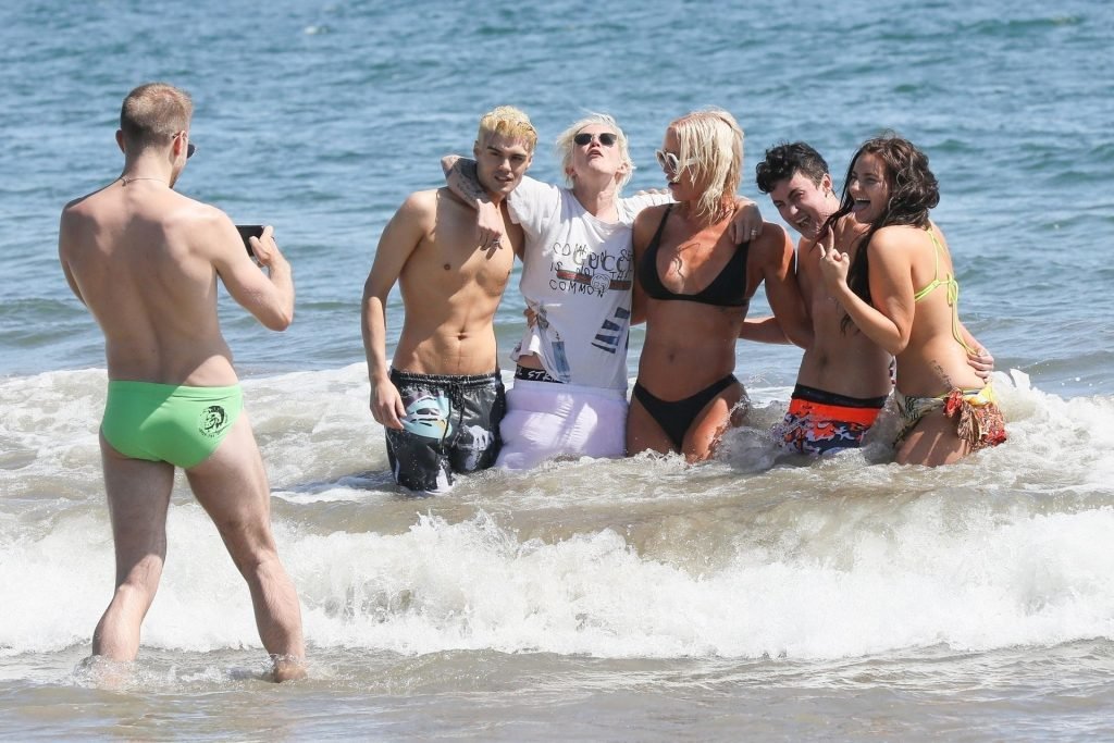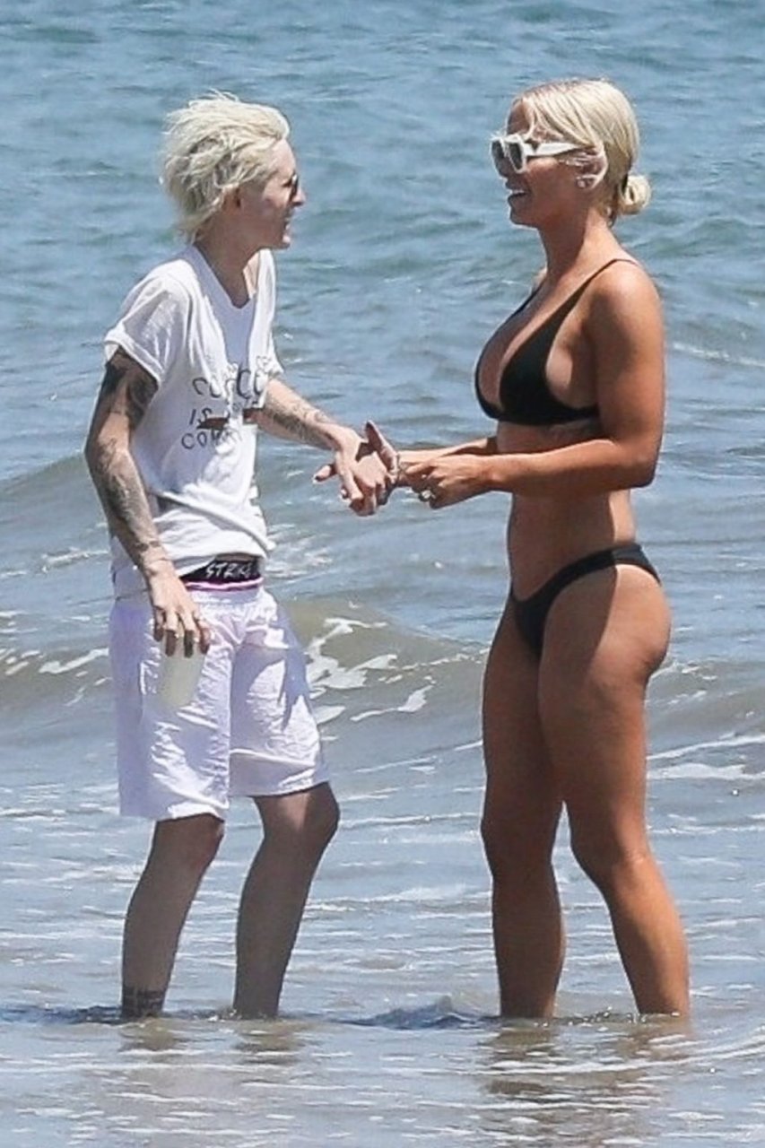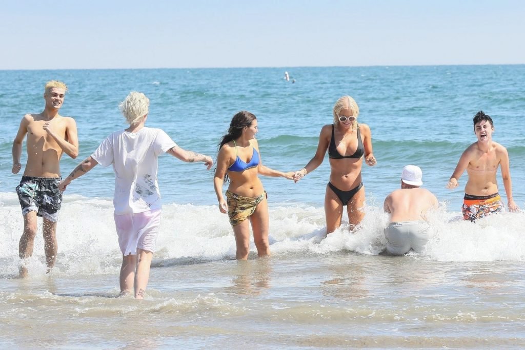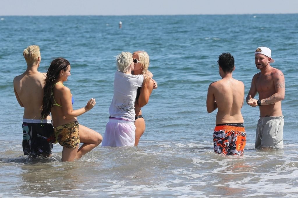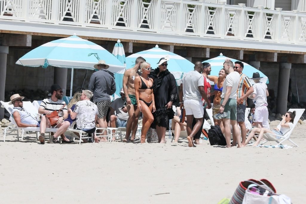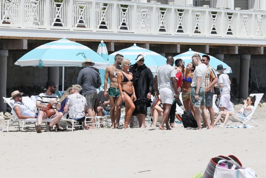 Recién casados Gigi Gorgeous y Nats Getty (también conocida como Natalia Williams) disfrutan de un día celebrando en la playa con amigos después de su hermosa boda frente al mar en el Rosewood Miramar Beach en Montecito, 14/07/2019.
