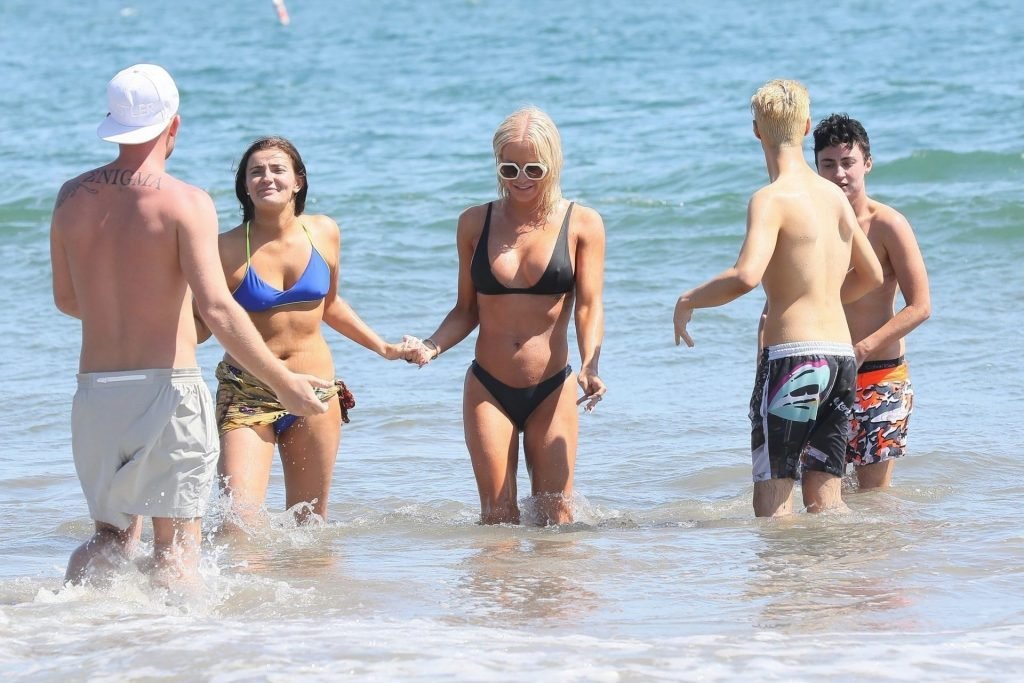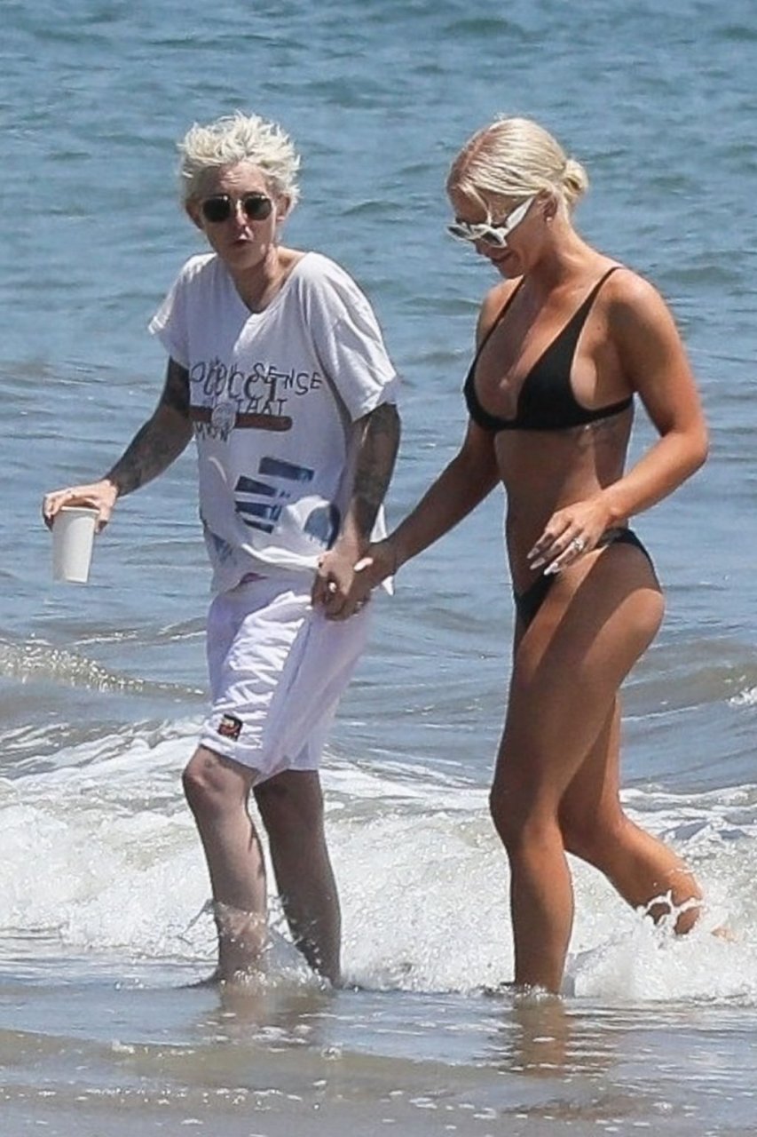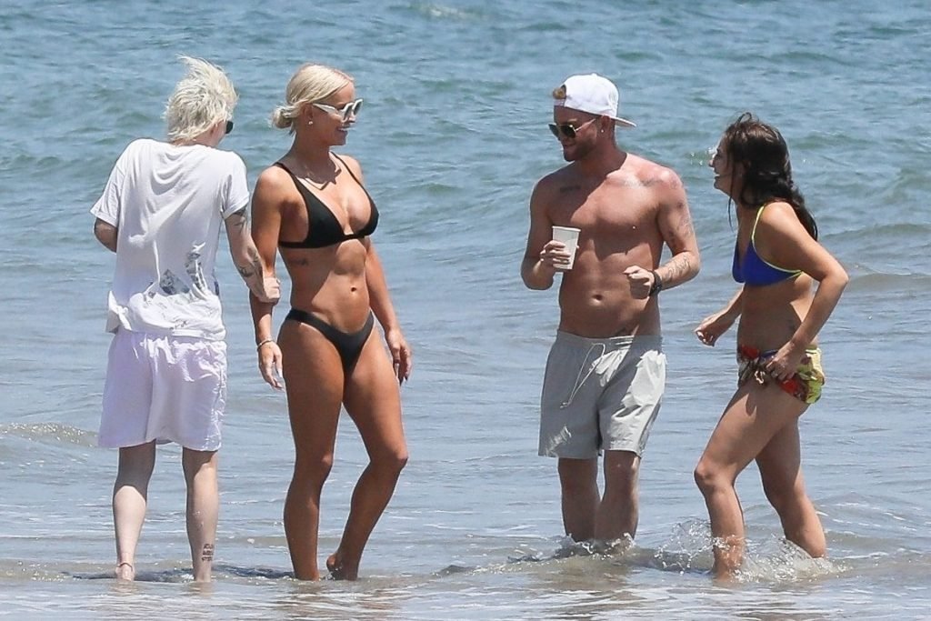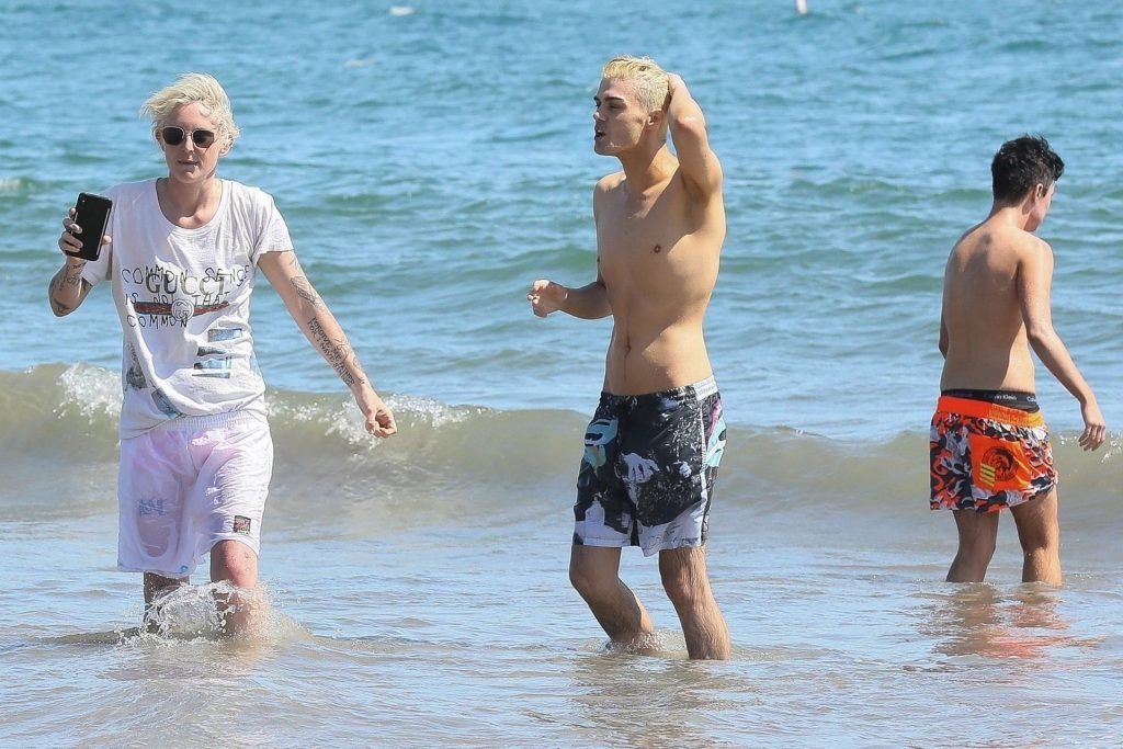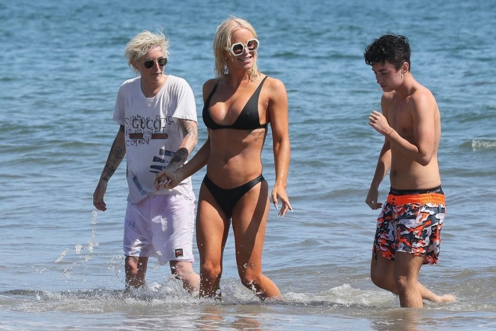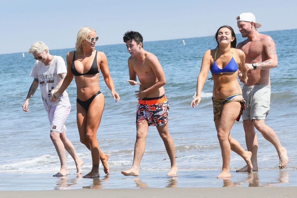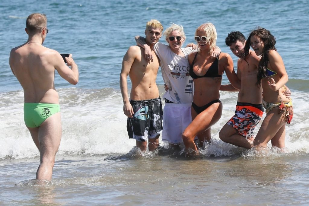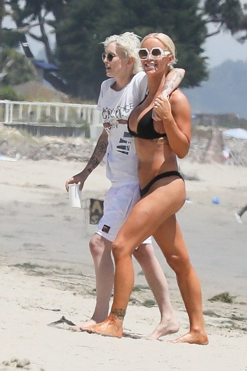Recién casados Gigi Gorgeous y Nats Getty (también conocida como Natalia Williams) disfrutan de un día celebrando en la playa con amigos después de su hermosa boda frente al mar en el Rosewood Miramar Beach en Montecito, 14/07/2019.