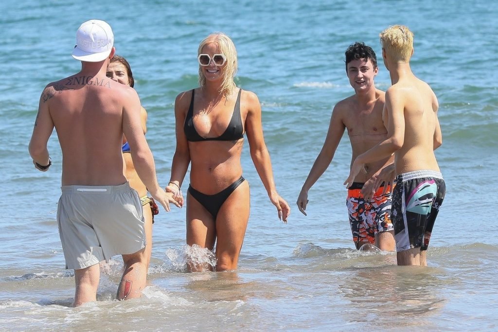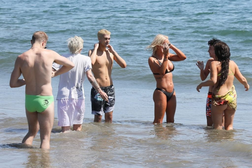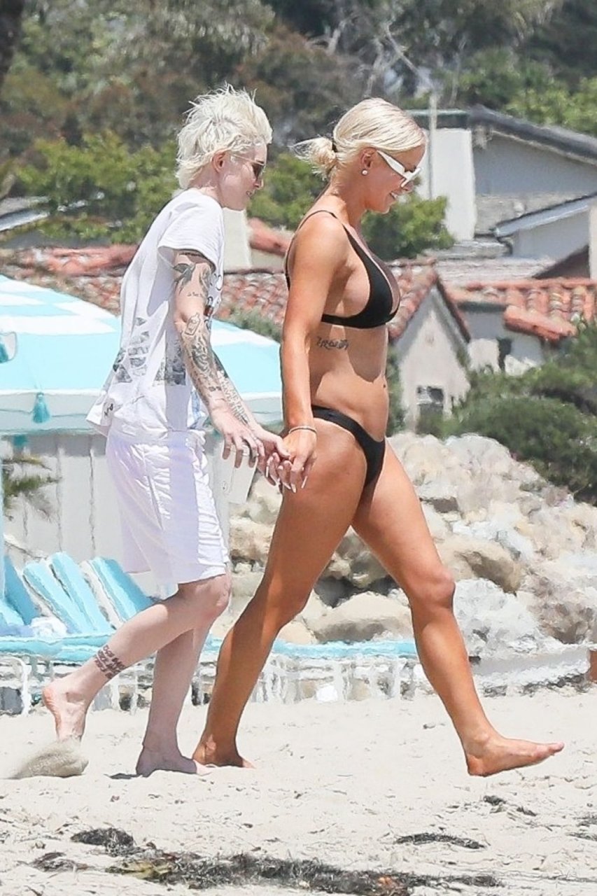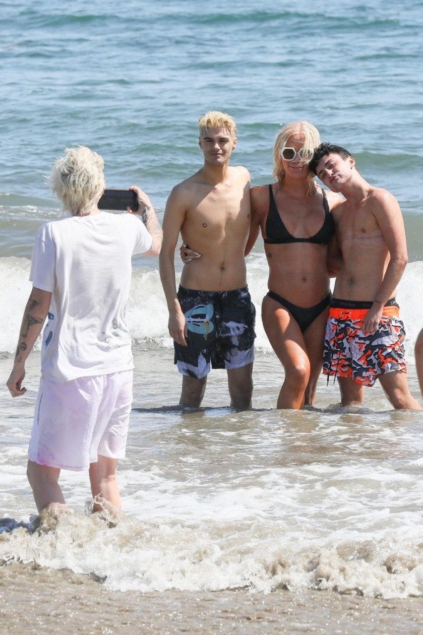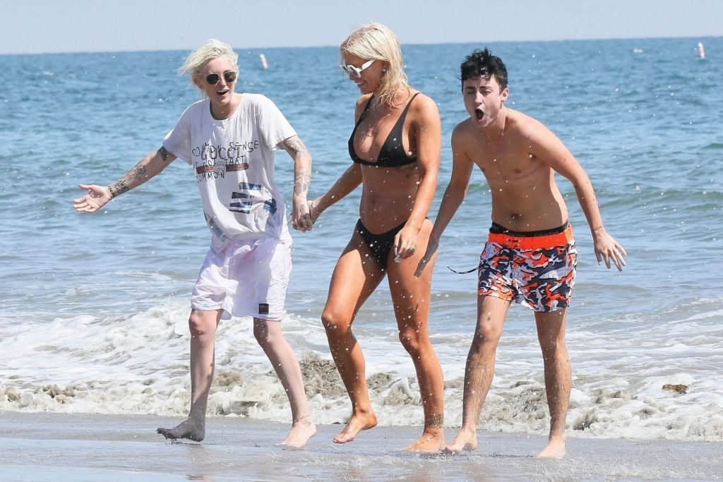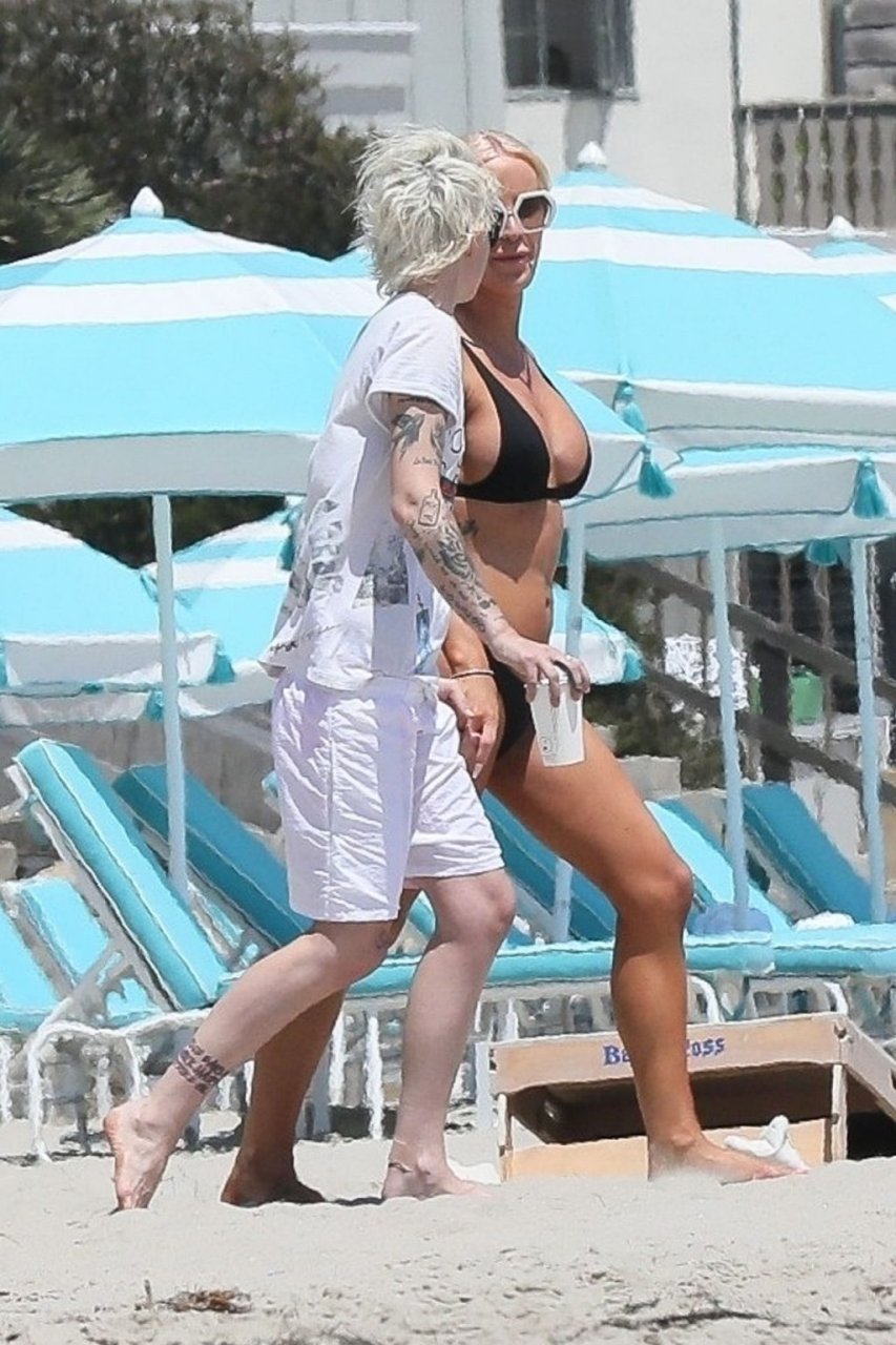 Recién casados Gigi Gorgeous y Nats Getty (también conocida como Natalia Williams) disfrutan de un día celebrando en la playa con amigos después de su hermosa boda frente al mar en el Rosewood Miramar Beach en Montecito, 14/07/2019.