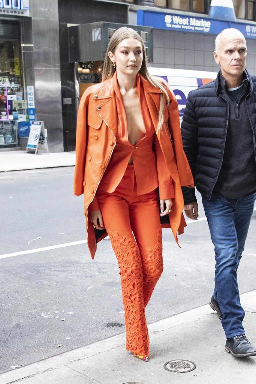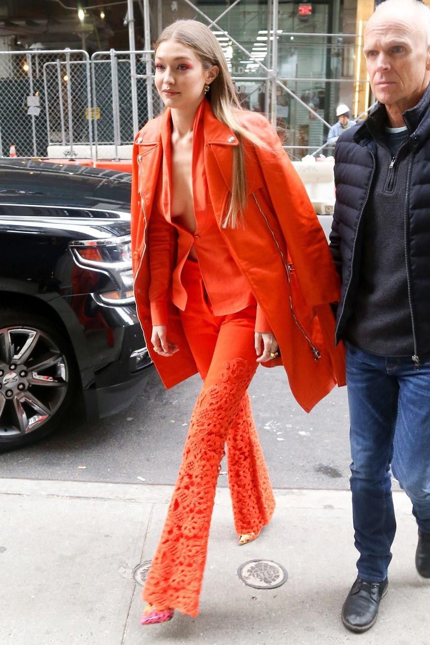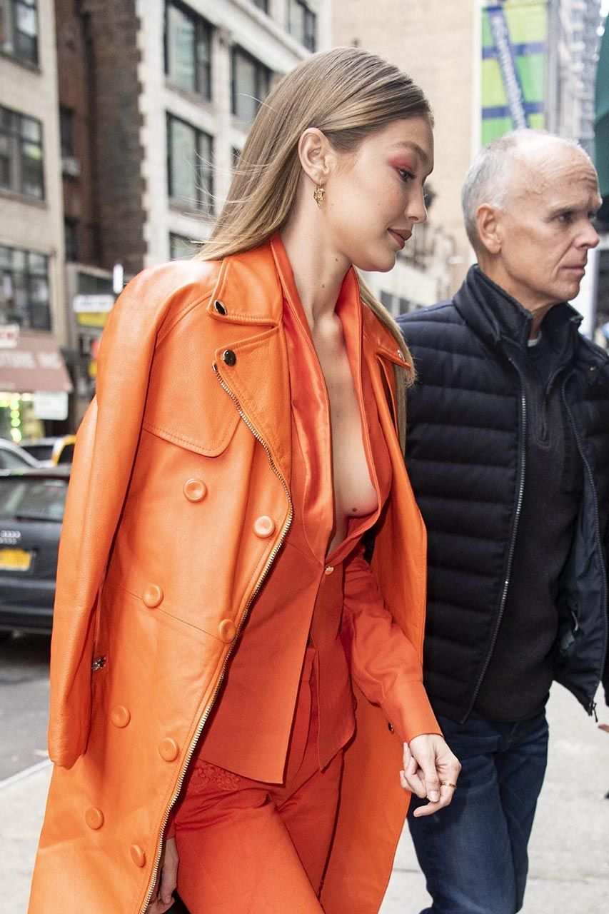 Stunning is as always; Gigi Hadid braless appearance dragged the attention of paparazzi and reporters from America! She attended the ‘Vogue for Gigi’ event in New York City; she wore an orange suit and the same color coat, even her eyeshadow was orange! Gigi is so beautiful, as her sister Bella Hadid!