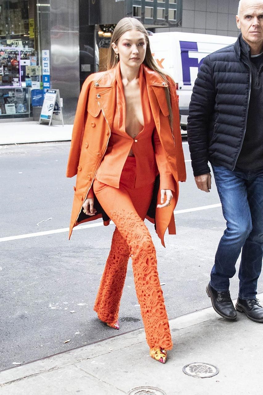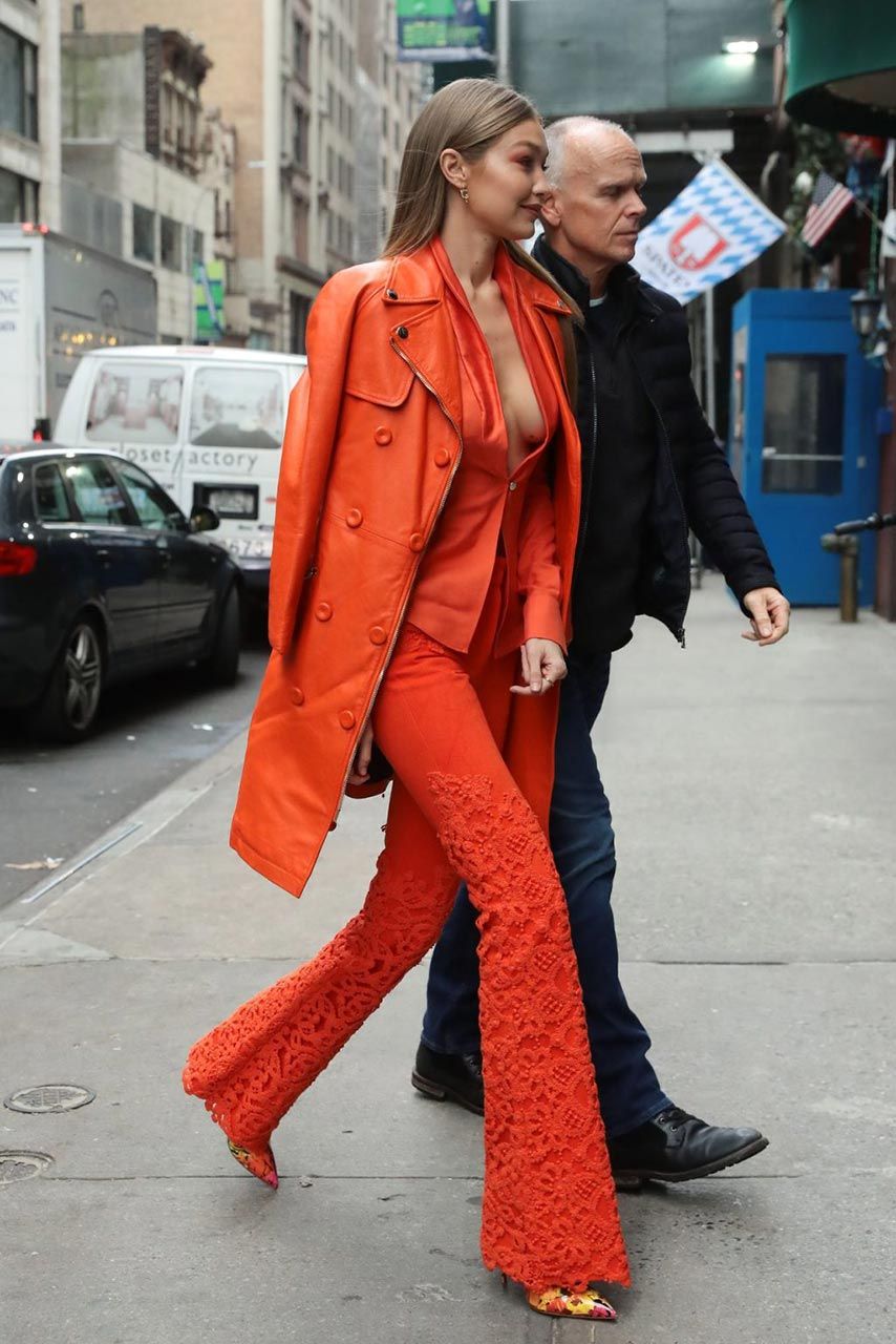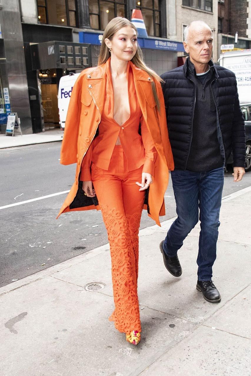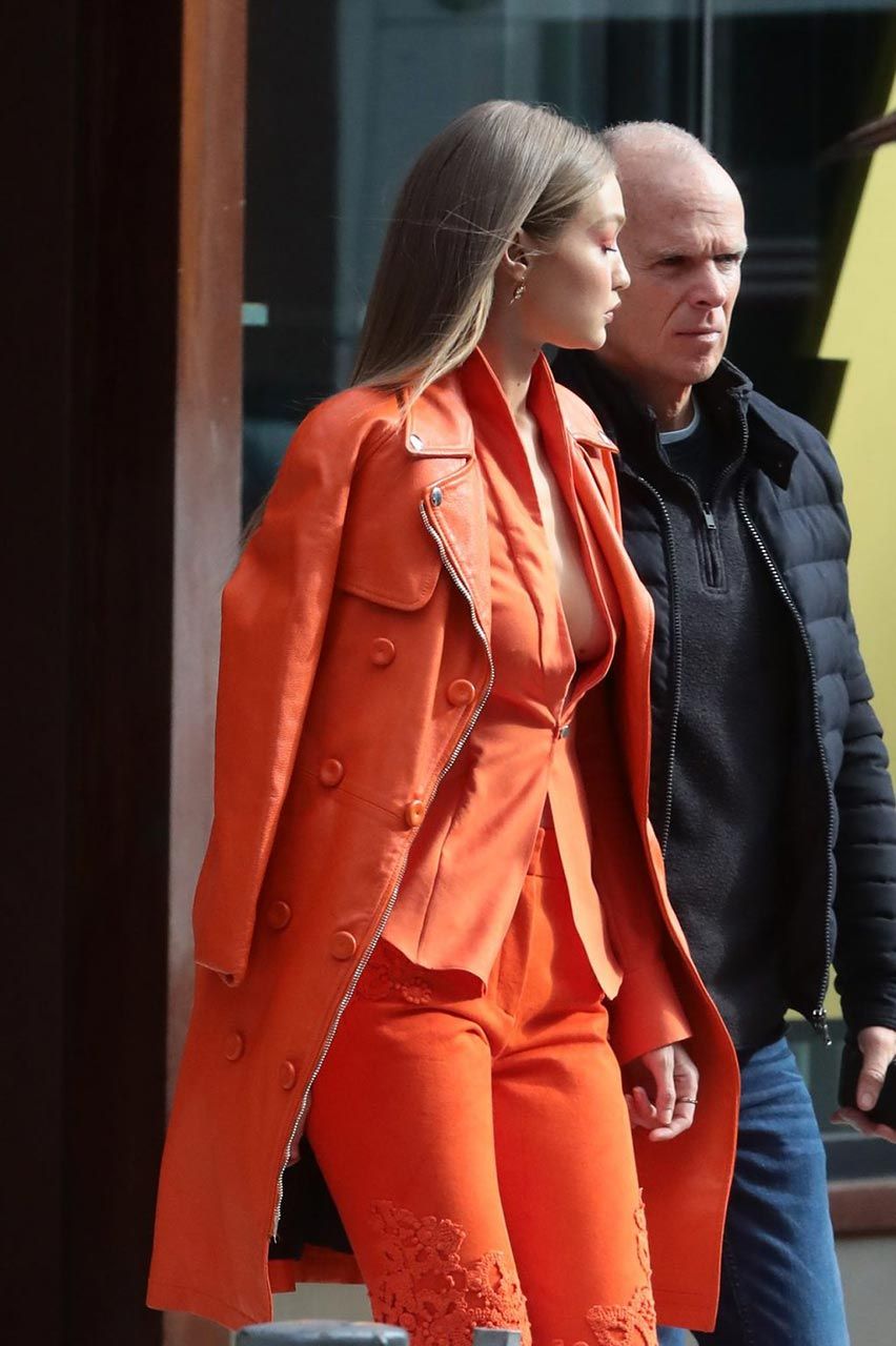 Stunning is as always; Gigi Hadid braless appearance dragged the attention of paparazzi and reporters from America! She attended the ‘Vogue for Gigi’ event in New York City; she wore an orange suit and the same color coat, even her eyeshadow was orange! Gigi is so beautiful, as her sister Bella Hadid!