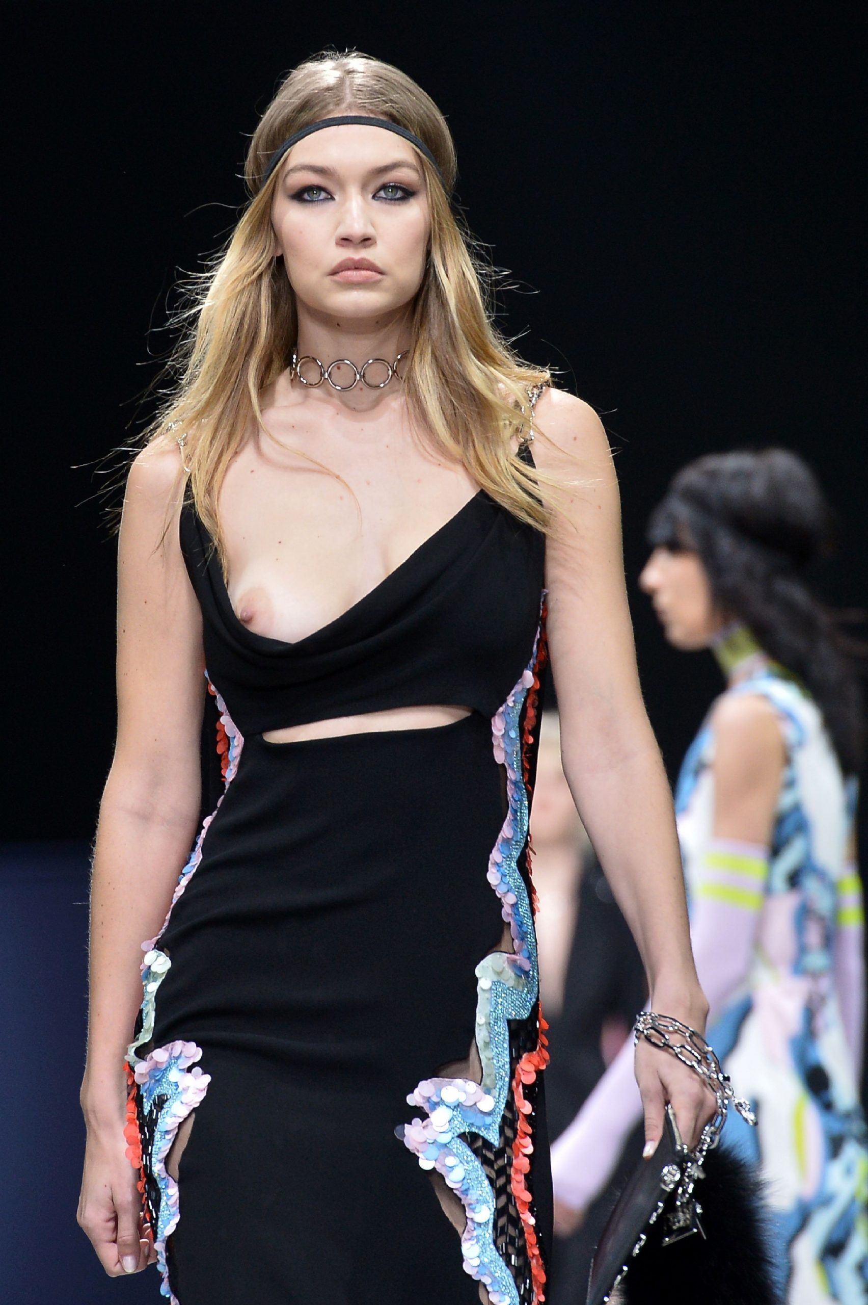 Gigi Hadid Nip Slip on Versace Show in Milan