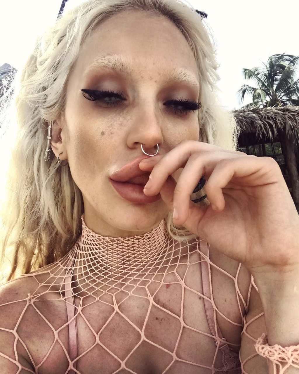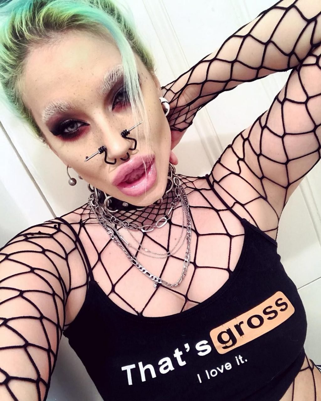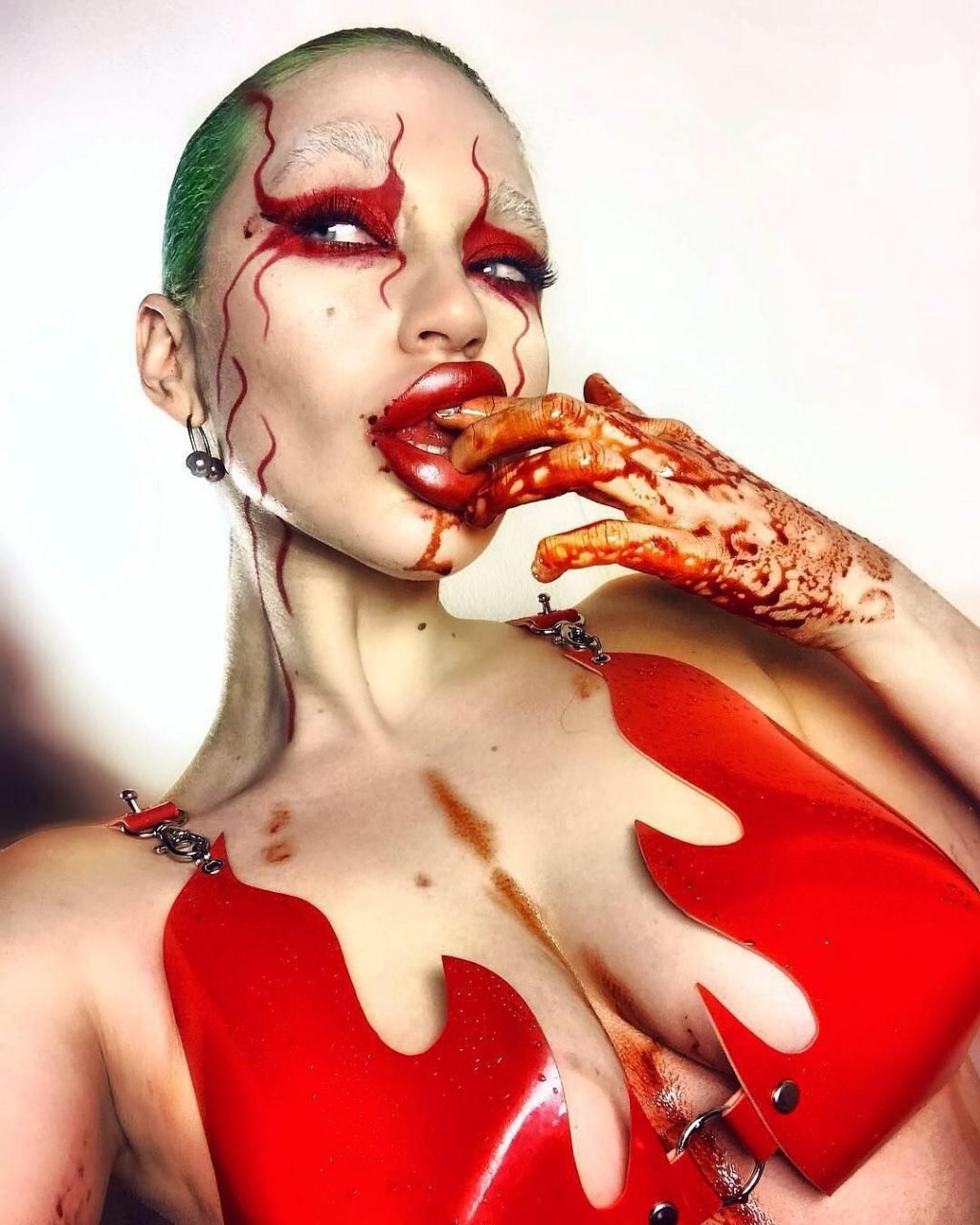 Gina es conocida por sus sesiones fotográficas impactantes y provocativas. Esta mujer mezcla especialmente la belleza y la deshonra: atuendos extraños, maquillaje misterioso, tatuajes ominosos. Gina tiene un tatuaje en la lengua. La apariencia de Gina Harrison es simplemente asombrosa. Tiene pechos grandes, trasero sexy y una cintura increíblemente delgada, y no oculta a sus fans el uso de cirugía plástica.