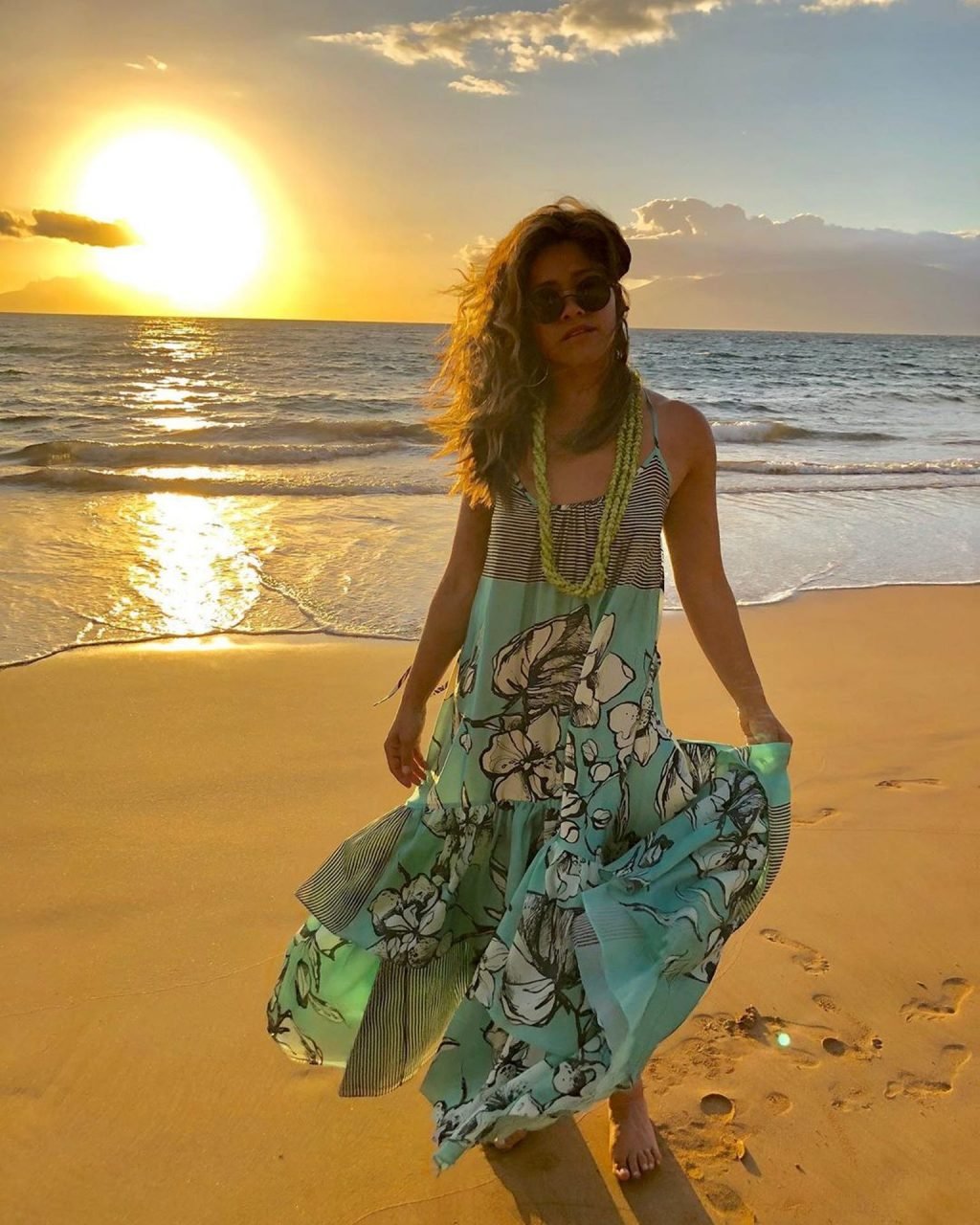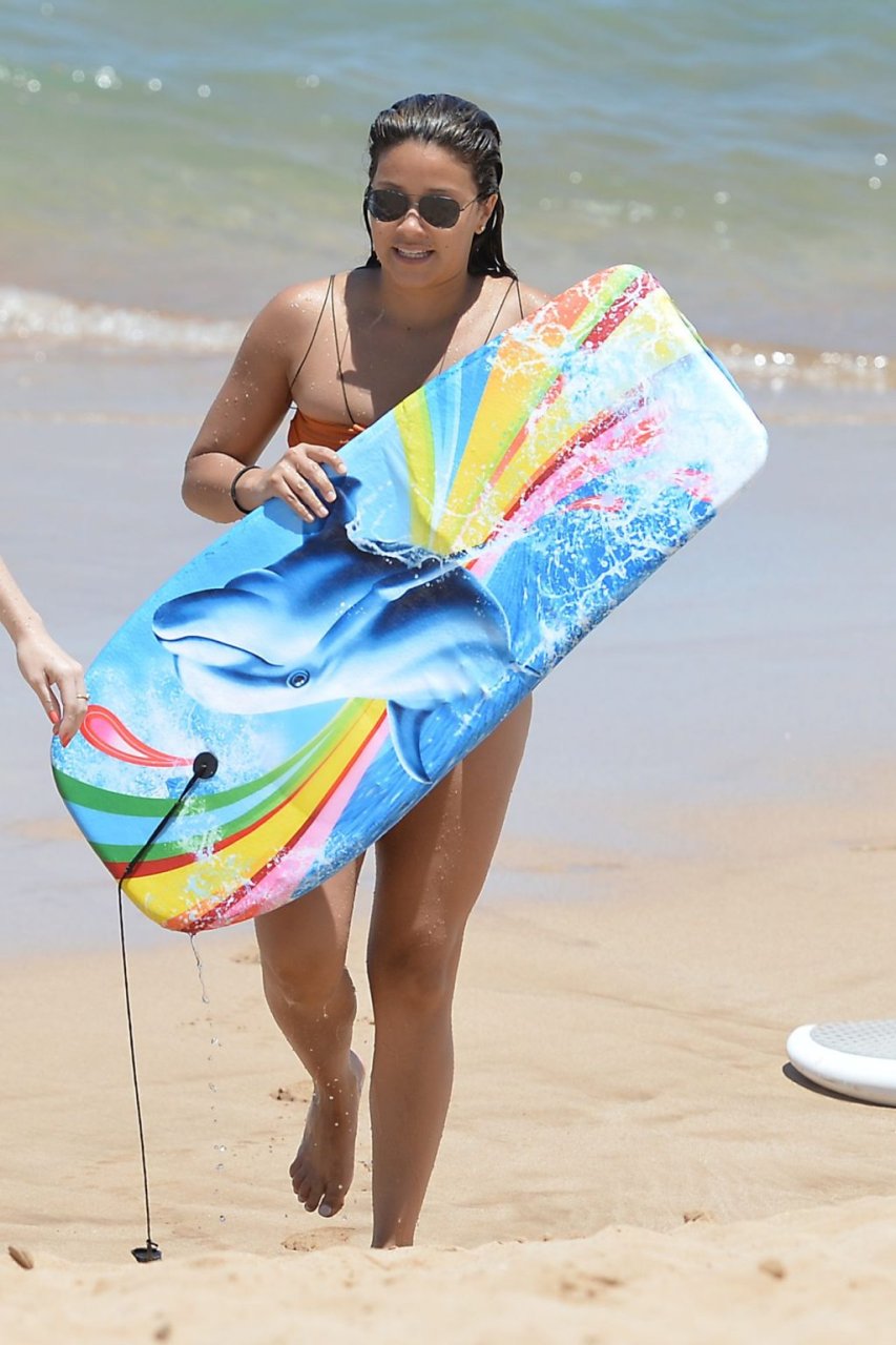 Una Gina Rodriguez tímida ante la cámara se da un baño hoy en Hawái. La estrella de “Jane The Virgin” lució una cubierta para tabla de boogie inspirada en delfines en la playa de Maui, donde está programada para recibir el Premio Navigator más tarde esta noche en el Festival de Cine de Maui en Maui, Hawái.