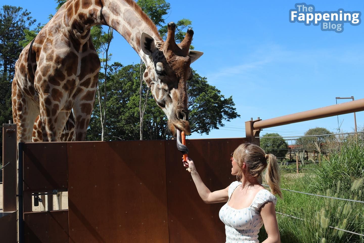 Sydney Sweeney observó la larga lengua de la jirafa y la examinó de cerca – Instagram, 21/03/2023.