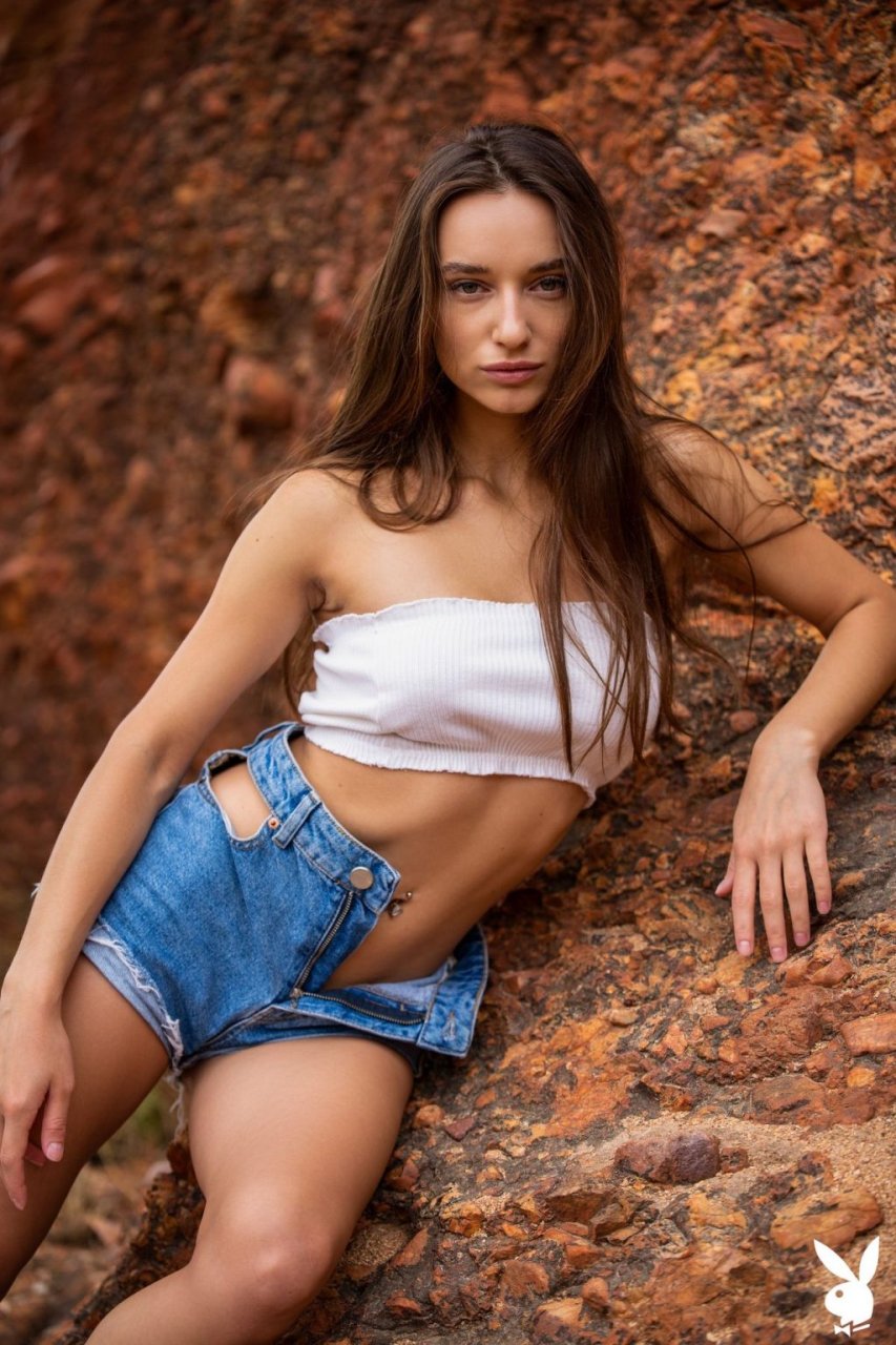 Joven modelo Gloria Sol posa en el cañón en una nueva sesión de fotos para Playboy Plus (2019). La hermosa modelo delgada apareció frente a la cámara del fotógrafo Henrik Pfeifer completamente desnuda.